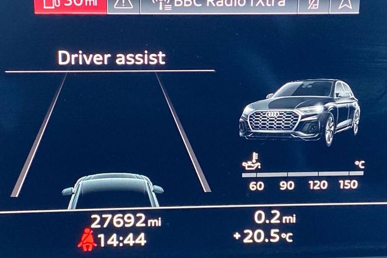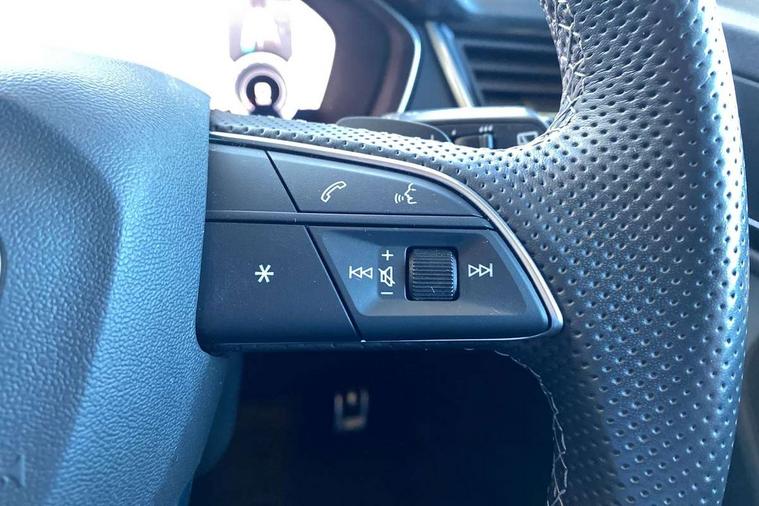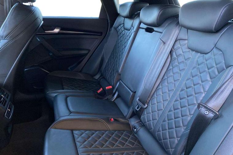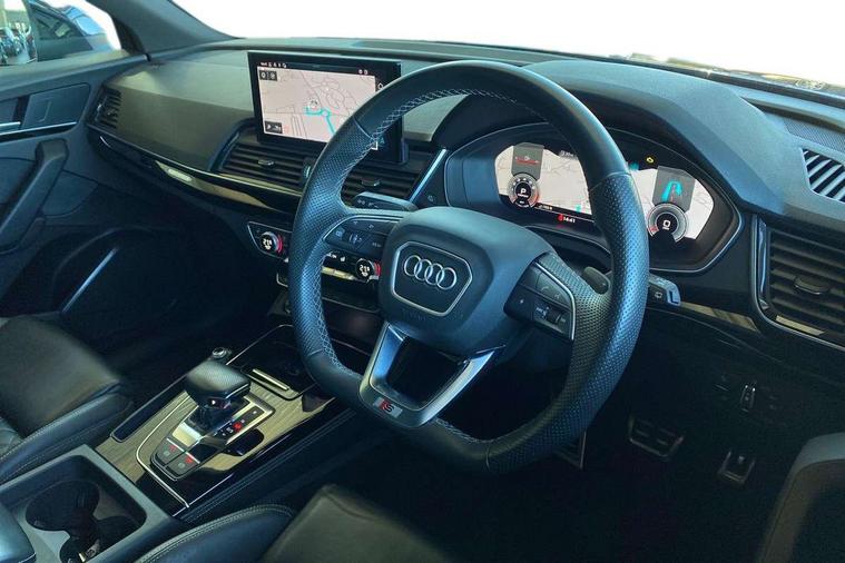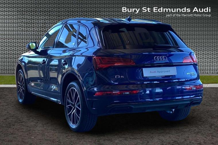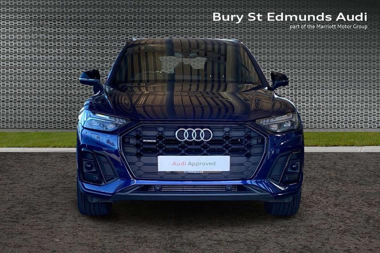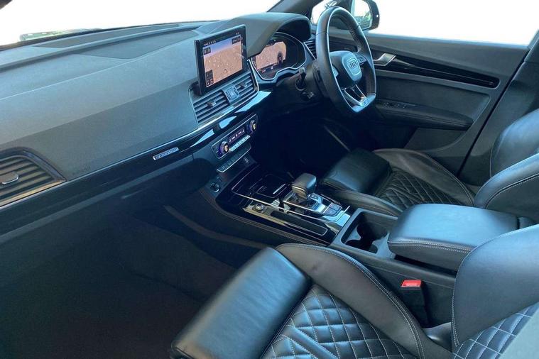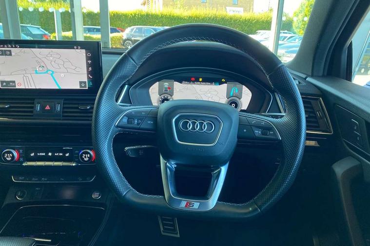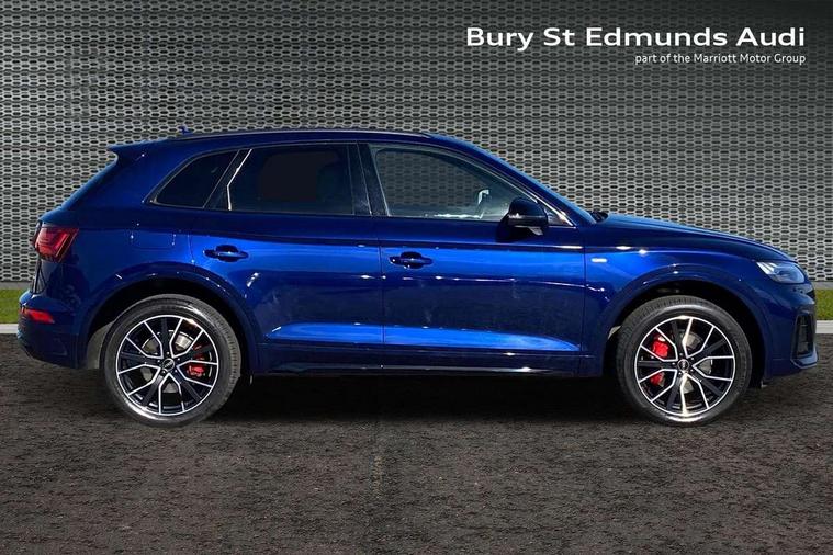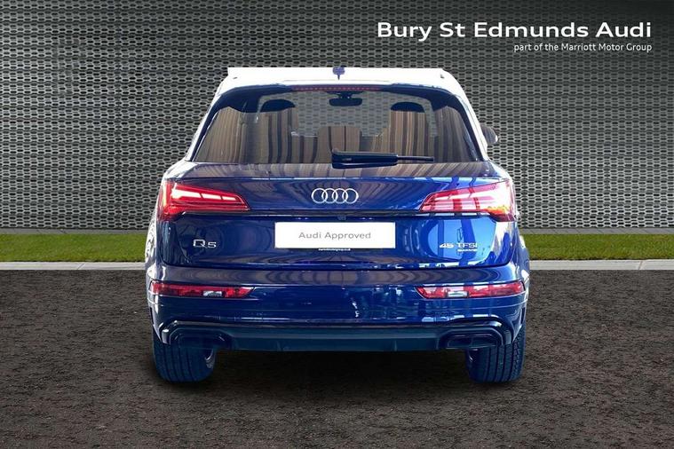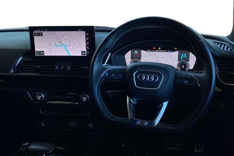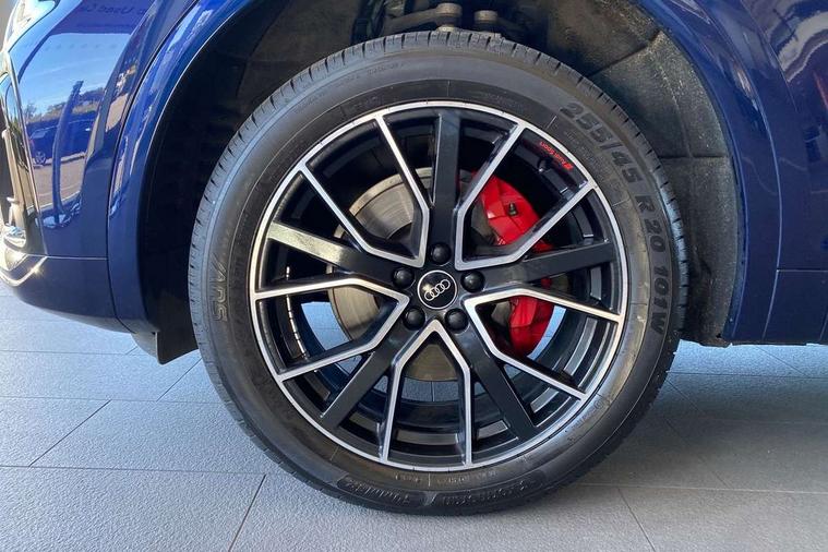 Audi connect safety and service (e-call), Audi connect with Amazon Alexa Integration, Audi drive select, Audi virtual cockpit plus with 12.3" screen and three different layout designs, Audi wireless smartphone interface, Automatic start-stop system with coasting functionality and efficiency programme, Bluetooth interface, Electro - mechanical power assisted steering, MMI navigation plus with 10.1" touch screen, Power tailgate, Reversing camera, Service interval indicator, Voice control system with Audi hotword activation "Hey Audi", Quattro on demand, S line sports suspension, DAB Digital radio, Acoustic windscreen, Audi matrix LED headlights with dynamic front and rear indicators, Audi rings at front and rear in black, Audi rings decal on rear doors, Auto dimming door mirrors, Auto dimming rear view mirror, Automatic headlights and windscreen wipers, Black door mirrors, Black roof rails, Body colour bumpers, Body colour underbody protection, Chrome plated exhaust trims, Daytime running lights, Door sills in Selenite silver, Electric adjustable/heated/folding door mirrors, Front air inlet surrounds in titanium black, Front and rear electric windows, Headlight washers, High gloss black B pillar trims and triangular rear door trim, High level LED brake light, Rear chrome trim strip below lights, Rear privacy glass and rear side windows, Rear side wing doors, Rear wiper, Roof bars, S Line rear spoiler, 2 x USB charging port with aux input socket, 3 rear headrests, 4 way electric lumbar support for driver and front passenger, 40:20:40 split folding 3 rear bench seat in 2nd row with rear centre armrest, Black cloth headlining, Comfort front centre armrest, Contrast stitching on seats, steering wheel and gear lever gaiter, Deluxe 3 zone electronic climate control, Electrically adjustable front seats, Fine Nappa leather upholstery with diamond pattern contrast stitching + front sport seats with S embossed logo, Front/rear floor mats, Gear lever in black leather, Heated front seats, Height adjustable front head restraints, Height/reach adjustable steering column, Illuminated door sill trims with S logo, ISOFIX child seat mounting and top tether, Rear seat bench plus, Removable luggage compartment floor, Single front passenger seat, Stainless steel pedals, Sunvisors with vanity mirrors, Black styling package - Q5 Edition 1, Extended interior upholstery pack - Q5, Extended LED Interior multi coloured Lighting Pack - Q5, 3 point seatbelts on all seats, 6 airbags - Driver, front passenger, curtain and side airbags, Electrically operated child locks on rear doors, Electromechanical parking brake, Electronic stabilisation control including ABS, ASR and EDL, Front and rear brake calipers painted in red, Front passenger airbag deactivation, Hill descent control, Hill hold assist, Multi collision brake assist, Pop-up bonnet for pedestrian protection, Pre sense city, Seat belt force limiter, Seatbelt monitoring, Tyre pressure warning, Warning triangle and first aid kit, Anti theft alarm, Anti-theft wheel bolts, Keyless Go access/ignition system, Remote central locking, Piano black finish inlay,