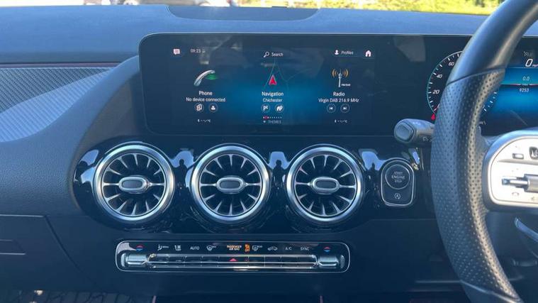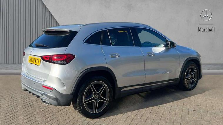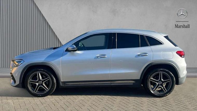 10.25 inch touchscreen central media display, 10.25" Digital instrument cluster display screen, Active lane keeping assist, Attention assist, Augmented reality navigation, Cruise control + speed limiter, Direct steering, DYNAMIC SELECT with a choice of driving modes (ECO, Comfort, Sport, Sport+ and Individual), Easy-pack tailgate, ECO start/stop function, Fluid level warning indicator for fuel, oil, coolant and washer fluid, Hard-disk navigation, Hey Mercedes Voice activation, Lamp failure indicator, Mercedes me connect including emergency call system, accident recovery, breakdown and maintenance management, Multi function trip computer, Outside temperature gauge, Owners manual and service booklet in English, Pre-installation for Vehicle Monitoring, Pre-installation for Vehicle set up, Pre-installation of private car share, Radio aerial integrated into front and rear windshields, Service indicator (ASSYST), Smartphone integration with Apple CarPlay and Android auto, Speed limit assist, Status display for rear seat belts in instrument cluster, Wireless charging, Lowered comfort suspension, Rear axle multi-link, 2 USB ports (type C) in rear stowage compartment and one in front of center console, Bluetooth connectivity including audio streaming, DAB Digital radio, MBUX multimedia system with DAB digital radio and touchpad including satellite navigation, Media interface, Mercedes-Benz advanced sound system - 225W, Adaptive brake lights, Aerial for GPS, Aluminium roof rails, AMG front and rear apron, AMG specific/dual flow exhaust pipes in chrome (non-functional), Automatic headlamp activation, Beltline strips and weather strip in chrome, Black grained claddings with chrome parts, Body colour bumpers, Body colour door mirrors, Body coloured door handles with chrome insert for keyless entry, Car wash function, Dark privacy glass from B-pillar backwards, Electric front windows, Electric rear windows, Electrically adjustable and heated door mirrors with integrated LED indicators, Heated glass rear windscreen + timer control, Heated windscreen wash system, Interior mirror with black reading lamps and frameless, LED high performance headlamps with integrated LED daytime running lights, LED tail lights in two piece design, LED third brake light, Matt titanium grey front and rear apron trim, Pre-installation for trailer coupling, Rain sensor windscreen wipers, Rear fog lights, Roof spoiler, Single lamella raditor grille with chrome dotted diamond grille and inlay, 12V power socket in centre console, 3 spoke multifunction sports steering wheel in nappa leather with flattened bottom and perforated grip area, 40:20:40 split folding rear seat backrests, Adjustable head restraints, Air conditioning - Two zone thermotronic luxury automatic climate control with display, Ambient lighting in front headrests, AMG floor mats with AMG lettering and stiched edging, Artico man-made leather/Microfibre Dinamica upholstery with red contrast stitching, Auto Mercedes-Benz child seat recognition sensor, Black roof lining, Brushed door pulls in silver chrome, Courtesy light in boot, Front centre armrest with stowage, Galvanished gear shift paddles on steering wheel, Heated front seats, Illuminated door sills, Illuminated glovebox, Interior lighting - 64 colour Ambient lighting, Leather trimmed gearknob, Luggage net on driver/front passenger seat backrest, Manually height and reach adjustable steering column, Multi-gesture touchpad control on center console, Net in front passenger footwell, Sports pedals in brushed stainless steel with black rubber studs, Sports seats, Stowage compartment in centre console, Stowage compartment with retractable cover, Sunvisors with illuminated vanity mirrors, Twin front cup holders, Two outer rear seat isofix and top tether child seat fixing points, AMG body styling pack - GLA, Comfort seat pack - GLA Class, Interior lighting with light and sight pack - GLA, Load compartment pack - GLA, Mirror pack - GLA Class, Parking pack - GLA, 3 rear 3 point seatbelts, ABS with Brake Assist, Active bonnet pedestrain safety measure which detects an impact and raises bonnet by 65mm, Active brake assist includes forward collision warning system with autonomous braking, Adaptive brake assist with hold function and hill start assist, Bonnet with power domes, Brake pad wear warning indicator, Childproof locks manually operated for rear doors and electrically operated for rear power windows, Crash responsive emergency lighting, Driver and passenger head and side airbags, Drivers knee airbag, Dual stage driver/passenger airbags, Electronic parking brake, ESP curve dynamic assist, ESP with ASR, Front and rear seatbelt reminder, Front brake callipers with Mercedes Benz logo lettering on front, Front brake discs internally ventilated and perforated, Front passenger seat occupancy sensor, Tyre pressure monitoring system, Warning triangle and first aid kit, Window airbags, Alarm system with immobiliser and interior protection -Thatcham category 1, Keyless Go Lock/Unlock function, Keyless Go starting function, Remote central locking and crash sensor with emergency opening function, Vehicle key with decorative surround in chrome, Carbon structure trim, Chrome air vent surrounds, 19" AMG 5 twin spoke light alloy wheels aerodynamically optimised painted in tantalite grey with a high sheen finish, Summer tyres, Tirefit tyre sealant kit,
