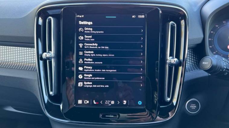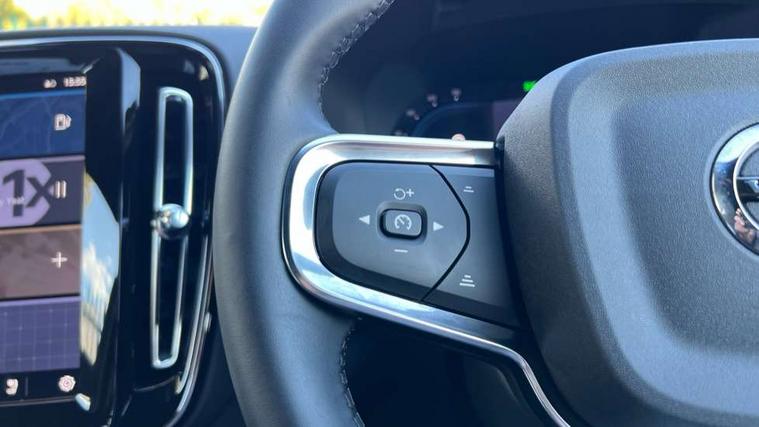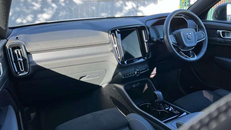 12.3" Progressive Driver Display, 9" centre console portrait touch screen, Adjustable steering wheel force, Android auto (Wired), Apple carplay (wired), Bluetooth handsfree system, Driver alert control, Driver assistance (pilot assist and adaptive cruise control), Driver awareness - Blind spot information system with steer assist, cross traffic alert with autobrake and rear collision warning and mitigation, E-call, Front park assist, Google automotive services - Enabled entertainment apps, navigation with google maps, voice recognition with google assistant, Hands free power tailgate, Intelligent speed assistance, Lane keeping aid, Oncoming Lane Mitigation, Rear park assist, Speed sensitive steering, Volvo cars services with app - Driving journal, emergency and breakdown call, engine remote start, remote door locking/unlocking and vehicle dashboard, Wireless/Inductive Mobile Phone Charging, Automatic transmission with start/stop and manual change functions, Dynamic chassis, DAB Digital radio, Steering wheel mounted remote controls, Adaptive brake lights with high level LED brake lights, Auto dimming feature for exterior door mirrors, Auto dimming interior mirror, Automatic headlamp levelling, Automatic LED Headlights + Active high beam incorporating daytime running lights, Front aluminium tread plates, Front and rear electric windows, High gloss black front and rear skid plate, High gloss black front bumper deco, High gloss black mesh front grille with high gloss black surround, High gloss black window trim, Home safe and approach lighting, Integrated roof rails in high gloss black, LED front fog lights, Puddle lights, Rain sensor with automatic windscreen wiper activation, Rear side wing doors, Rear wiper, Roof antenna, Roof spoiler, Visible VIN plate, 12V socket in front tunnel console and luggage compartment, 2-Zone electronic climate control with CleanZone air quality system and pollen filter, 3 seat bench in 2nd row, 3 Spoke tailored steering wheel with chrome trim, 60/40 versatile split folding rear seat, Centre console cupholders and storage, Charcoal headlining, Connect textile/microtech upholstery, Flexible load floor and grocery bag holder, Floor mats, Front cabin courtesy lights, Front door pocket, front cupholder, ambient front door, rear reading, rear courtesy, instrument panel and tailgate lighting, Front footwell illumination, Front headrests, Front reading lights, Front seat cushion extensions, Front side step illumination (under door), Glovebox bag hook, Heated front seats, Height adjustable passenger seat, Height/reach adjustable steering column, High gloss centre tunnel deco, Illuminated glovebox, Illuminated luggage compartment, Illuminated vanity mirrors + ticket holder, Integrated waste bin, Isofix attachments on outer rear seats, Load cover, Load protection net, Multi directional lumbar support for driver and passenger seat, Power driver seat with memory + exterior mirrors memory, Rear armrest with cupholders, Rear headrests, Single front passenger seat, Underfloor cargo storage, Climate pack without heated front seats - XC40, 3x3 point rear seatbelts, City safety with steering support with Pedestrian + cyclist + front collision warning with full auto brake and rear auto brake, Driver and passenger airbags, Drivers knee airbag, Electronic parking brake with auto hold, First aid kit, Front and outer rear seatbelt reminder and pretensioners, Front seats SIPS airbags, Hill descent control, Hill start assist, Inflatable curtain, Passenger airbag cut-off device, Power child locks on rear doors, Road sign information display, Run off Road Protection, SIPS (Side Impact Protection System), Slippery road and hazard light alert, Stability and Traction Control with Spin control, Engine Drag Control and Corner Traction Control, Tyre pressure monitoring system, Vehicle deceleration control with Anti-lock Brake System, Electronic Brake Distribution and Emergency Brake Assist, Warning triangle, WHIPS whiplash protection system - front, 2 x Key integrated remote control central locking including with deadlocking system and auto open/close windows, Anti-theft alarm including immobiliser/volume sensor + level sensor, Keyless drive includes keyless entry and keyless start, Locking wheel nuts,