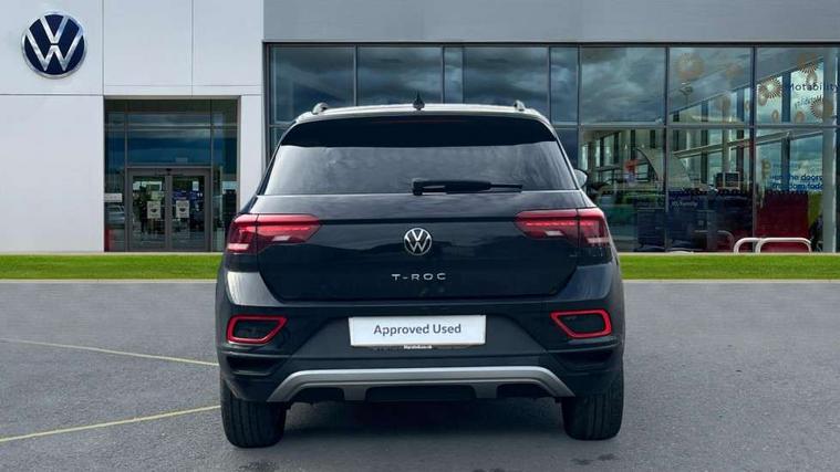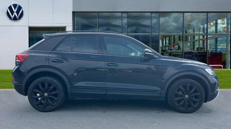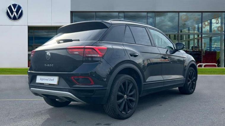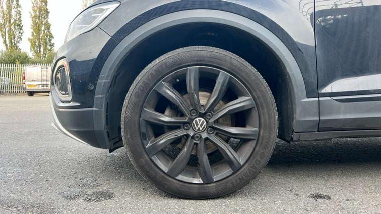 10.25" Digital cockpit pro, Bluetooth mobile phone interface, Driver alert system with fatigue detection, Driver tips and journey analysis, Dynamic road sign display, Emergency call service, Lane keeping system Lane Assist, Modified key software - reduce switch off time for key status change to Long no motion, Online services, Park assist including front and rear parking sensors, Power assisted speed sensitive steering, Service interval indicator, Tailgate/trunk lid release from outside, Think blue trainer driver tips and journey analysis, Warning sound and light for front seatbelts unfastened, Wireless app connect, Battery regeneration during braking, Front shock absorption, Rear shock absorption chassis with increased ride height, Start/stop function with battery regeneration, Diversity antenna for FM reception, Front and rear 6 speakers, Music playback - MP3, WMA and AAC files, Premium USB cable in choice of either Apple or Android smartphone compatibility, SD card slot, Simultaneous pairing of 2 compatible mobile devices, Title and cover art display, We Connect and We Connect Plus functionality, 3rd brake light, Auto dimming interior rear view mirror, Automatic hazard lights activation under emergency braking, Automatic headlight control with LED separate daytime running lights with coming/leaving home function, Body colour sports bumpers with silver metallic underbody fascia, Dynamic headlight range control with self adjusting whilst driving, Extended roof spoiler, Exterior mirrors aspherical on driver side, convex on front passenger side, External USB type C socket and charging sockets, Front windscreen wiper with intermittent wipe and 4 position delay, Heated rear window, LED Plus headlamps, LED rear combination lamps, LED rear number plate lights, LED tail lamp rear comination lamps, Light mode for poor weather, rain, fog or snow, Power windows with comfort operation and circuit breaker, Rain sensor, Rear exhaust tailpipe, Rear fog light on one side and reversing lights on both sides, Rear side wing doors, Rear wash/wipe with intermittent wipe setting, Remote electrically foldable door mirrors, puddle lights and reverse activated passenger's door mirror, 12V power socket in centre console, 3 rear head restraints, 3 seat bench in 2nd row, 4 load lashing points in luggage compartment, Air care climatronic air conditoning system with active combination filter and 2-zone temperature control, Chrome plated radiator grille inserts, air vent surrounds and light switch surrounds, Door and side trim panel with leatherette insert, Drawer under drivers seat, Front + rear carpet mats, Front centre armrest, Front comfort sports seats, Front cupholders x 2, Front footwell illumination, Instrument lighting, white adjustable panel illumination, Interior ambient lighting and surround lighting, Interior light delay, Isofix child seat preparation, Leather gearshift handle, LED interior light with switch off delay/dimmer and 2 front/rear LED reading lights, Load-through provision with cup holder when folded down ('Unsplit rear seat bench, split folding backrest, with centre armrest), Luggage compartment lighting, Non-folding front passenger seat backrest, Single front passenger seat, Storage compartment in left and right luggage area, Storage compartment in rear doors, Storage compartments in driver and front passenger doors, Sunvisors with illuminated vanity mirrors, Variable boot floor, height adjustable and removable, Driver assistance pack without proactive passenger protection - T-Roc, 3 point height adj front seatbelts + pretensioners, 3 point seatbelts in outer rear with ECE label, ABS, Child locks on rear doors, Driver and front passenger airbag with front passenger airbag deactivation, Driver and front passenger safety-optimised head restraints, Drivers seatbelt reminder, Electronic parking brake, Electronic Stability Control (ESC) inc EDL (Electronic Differential Lock) and ASR (Traction Control), Front and rear passengers curtain airbag system including front side airbags, Front assist with city emergency braking and pedestrian monitoring, Front disc brakes, Front seat side impact airbags, Predictive pedestrian protection, Rear disc brakes, Single tone horn, Tyre pressure loss indicator, Volkswagen roadside assistance, Alarm with interior protection, Anti-theft alarm system with interior monitoring, backup horn, and towing protection, Remote central locking with SAFELOCK, radio remote control with 2 remote control folding keys, Trims for alloy wheels,