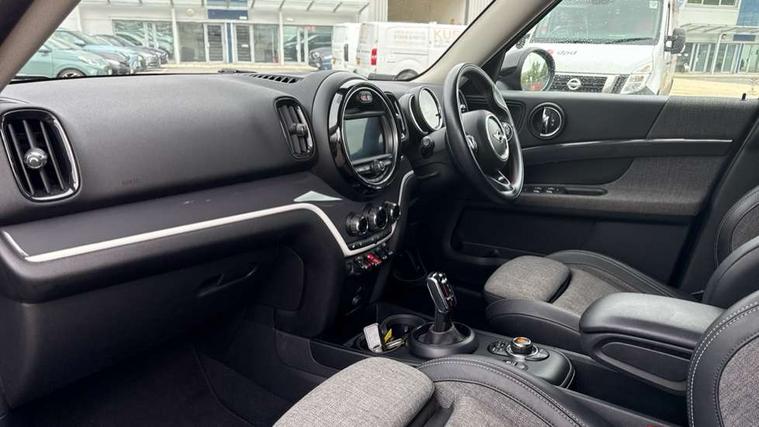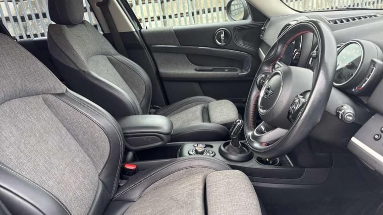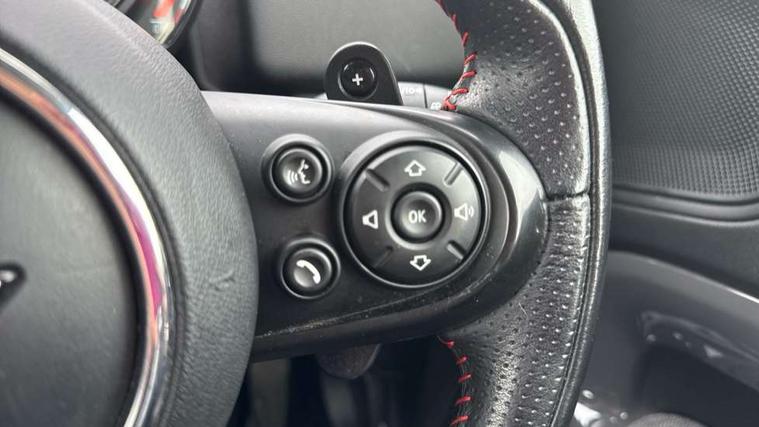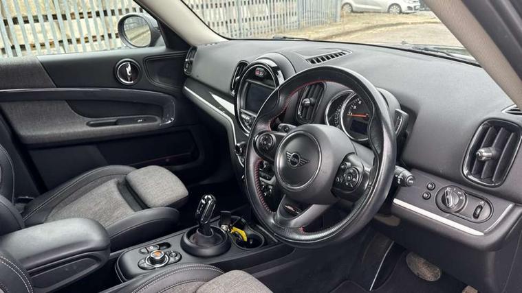Apple CarPlay preparation, Brake pad wear indicator warning light, Central display with LED ring and 6.5" colour touch screen, Connected driver, DTC - Dynamic traction control, Exterior temperature gauge, Intelligent emergency call, MINI remote services, MINI TeleServices, Navigation system, On board computer, Personal Profile, Real time traffic information, Service interval indicator, Servotronic speed sensitive power steering, Electronic differential lock, Performance Control, Auxiliary input socket, DAB digital radio module, MP3 compatible radio/single CD player, Radio visual boost, Anti dazzle rear view mirror, Body colour scoop integrated into engine- compartment lid, Chrome door handles, Chrome headlight surround, Chrome plated radiator grille, Chrome side scuttle, Chrome window surround, Electric front windows + one touch + anti-pinch, Electrically adjustable door mirrors, Follow me home headlights, Green tinted glass, Heated door mirrors/heated windscreen washers, Heated rear window with automatic switch off, Metal look door sill finishers, Rain sensor including auto headlights activation, Rear wiper, Roof spoiler, Twin chrome exhaust tailpipes, White indicator lights, 12V power point front, 2 cupholders in front centre console, 4 lashing points to secure luggage, 40:20:40 split folding rear seats, Centre console storage box, Chrome interior door handles, Driver/passenger sunvisors, Front and rear headrests, Front interior light, Front passenger grab handle, Front seat backrest storage nets, Gearshift paddles, Heater with recirculation function, Height/reach adjust steering wheel, Isofix rear child seat preparation, Luggage compartment lighting, Multifunction steering wheel, Rear grab handles, Sensatec gearshift and handbrake, Sport front seats, Storage compartments in doors, Toolkit in luggage compartment, Interior lights pack - Countryman, MINI Excitement Pack - Countryman, 3 point automatic seatbelts, 3 point seatbelts on all rear seats, ABS, CBC - (Cornering brake control), Crash Sensor - activates hazard/interior lighting + unlocks doors, Driver and passenger airbags, Driver and passenger side airbags, DSC - Dynamic Stability Control, Electronic brake force distribution, Electronic parking brake, Front curtain airbags, Front passenger airbag deactivation, Fuel cut off safety device, Hill start assist, Pyrotechnically pre-tensioned front seatbelts, Tyre pressure warning, Automatic door locking, Keyless Start, Locking wheel bolts, RF remote control central locking, Second remote key, Thatcham category 1 alarm + immobiliser,