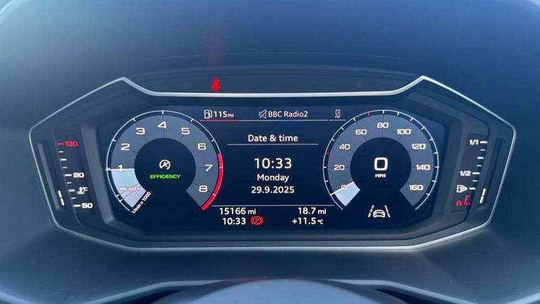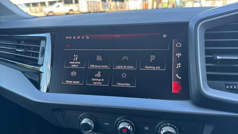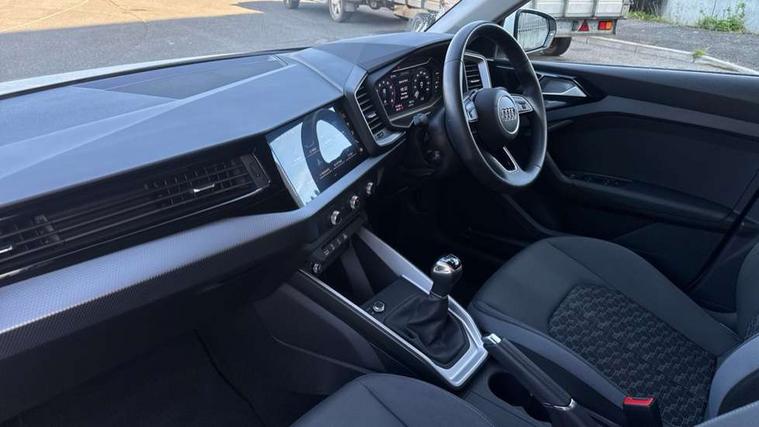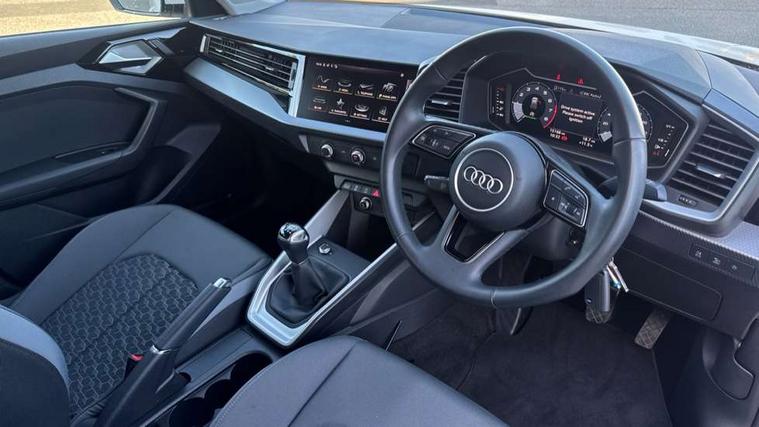 10.25" Digital instrument cluster display classis style instrument dials + speed, odometer, time, outside temperature, telephone menu + fuel level warning, Audi drive select - power steering assistance + engine, Audi smartphone interface with connect compatible smartphone via USB directly MMI display + Nav, music, third party apps controlled via MMI controller, Automatic start/stop system, Bluetooth interface, Cruise control, Driver's information system, Electromechanical power steering, Emergency e-call, Lane departure warning system, Rear parking sensor, Service interval indicator, Speed limiter, Voice control system, Washer fluid level indicator, Dynamic suspension, 2 x USB type C connection points, 6 passive loudspeakers, DAB Digital radio, MMI radio plus with 10.1" colour MMI display screen and MMI touch, Auto dimming rear view mirror, Body coloured bumpers, Body coloured door mirrors, Electric front and rear windows, Electrically adjustable, heated, folding door mirrors with integrated LED side indicator, Front side air inlets in grained matt black and C frame in anthracite black, Heat insulating glass windscreen and side windows, Heated rear windscreen, High level LED brake light, LED headlights with LED rear lights + dynamic rear indicators + headlight adjustment and high beam, turning light + LED daytime running lights, Radiator grille and rear diffuser in matt anthracite black, Radiator protective grille frame in matt aluminium silver, Rain and light sensors, Rear fog lights, Rear side wing doors, Rear wiper, Side front spoiler lips in grained matt black, 12V socket in centre console with two cup holders, 3 rear seats with headrests, 3 seat bench in 2nd row, 3 spoke leather multifunction plus steering wheel, 40:60 Split folding rear seat or folded fully, Black front and rear floor mats, Door sill trims with aluminium inlay, Driver and passenger seat with manual height adjust with forward and backwards adjustment, Front head restraints, Front passenger seat, Grey cloth headlining, Height and reach adjustable steering wheel, ISOFIX child seat mounting for front passenger and outer rear seats including top tether attachment point of outer rear seats, Leather gear knob with aluminium trim, Leather handbrake grip, Luggage compartment light with front and rear reading lights, Manual air conditioning, Manually adjustable lumbar support in front seats, Novum cloth upholstery with front sport seats, Luggage compartment pack - A1, 3x3 point rear seatbelts, Audi pre-sense front with pedestrain and cyclist recognition, Brake assist function, Driver and front passenger airbag with front side and head airbags, Electronic Stability Control including ABS, EBD, ASR and EDL, Front passenger airbag deactivation switch, Hill hold assist, Manual rear child locks, Seatbelt height adjustment for front seats, Seatbelt monitoring, Tyre pressure warning light, Warning triangle and first aid kit, Anti theft alarm, Anti theft wheel bolts and loose wheel warning, Immobiliser, Remote central locking with 2 foldaway keys, Aluminium trim for control switches, air vents and digital instrument cluster, Black dashboard, Silver grey accent areas including air vents, door handle recesses and centre console in diamond paint finish, Slate grey inlays polygon structure in fine paint finish,