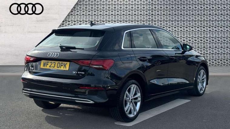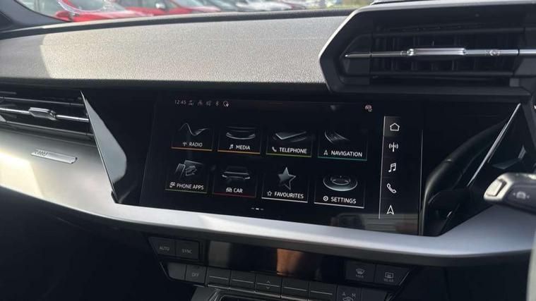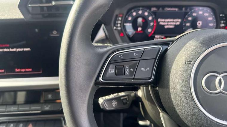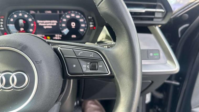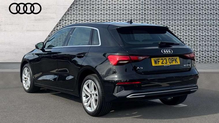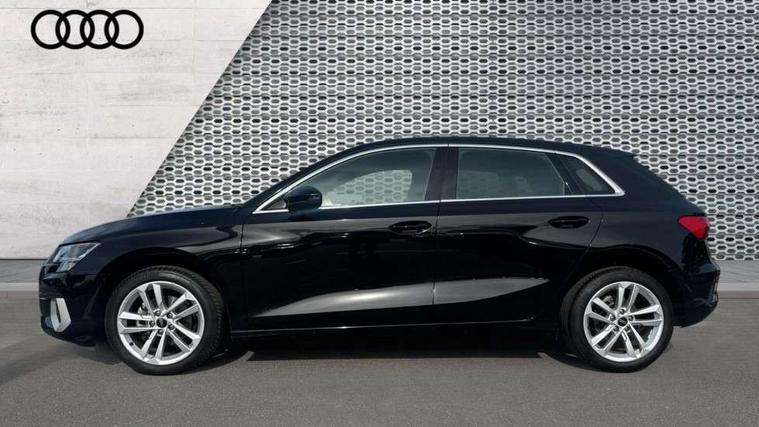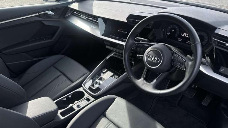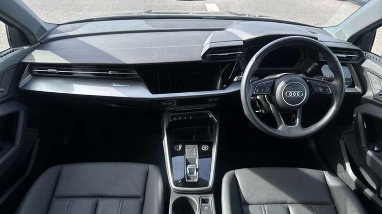 Audi drive select (Auto, Comfort, Dynamic and Individual), Audi smartphone interface, Audi Virtual Cockpit - 10.25" digital and colour instrument cluster, Automatic start/stop system with recuperation, Bluetooth interface, Camera based traffic sign recognition, Collision avoidance assistant, Cruise control, e-Call (emergency call), Electromechanical power speed sensitive steering, Lane departure warning system, MMI Navigation Plus with high resolution 10.1" colour touch screen display, Rear parking sensors, Service indicator, Trip computer, Voice control system with natural language interaction, Standard suspension, 2xUSB-C connection with data and charging functions, 6 passive loudspeakers, DAB Digital radio, 3rd brake light, Acoustic glass windscreen, Aluminium window trim, Auto dimming frameless rear view mirror, Body colour exterior mirrors, Body colour roof spoiler, Electrically adjustable/heated/folding/auto dimming door mirrors with integrated LED indications + kerb view function for passenger side, Front electric windows, LED daytime running lights, LED headlights and halogen rear lights, Light and rain sensors, Rear electric windows, Rear side wing doors, Rear window, rear door windows and rear side windows in clear glass, Rear wiper, 12V socket and storage compartment in front centre console, 3 seat bench in 2nd row, 3 spoke leather multifunction steering wheel with paddle shift, 4 way electrically adjustable lumbar support for driver and front passenger, 60/40 split folding rear seat bench, Dual zone electronic climate control, Front and rear headrests, Front centre armrest, Front door sill trims with aluminium inlay, Front/rear floor mats, Height and reach adjustable steering wheel, Interior lighting - Front and rear roof module including reading lights, glove compartment light and right hand side, Interior lighting - glove compartment light and right hand side, Luggage compartment floor covering, Manual boot compartment lid, Manually adjustable front seats, Routine cloth upholstery with front sports seats, Seat side bolsters, Single front passenger seat, Steel grey cloth headlining, Aluminium interior elements pack - A3 Sportback, LED interior lighting pack - A3 Sportback, Sport styling pack - A3 Sportback, 3x3 point rear seat belts, Driver and front passenger airbag with passenger airbag deactivation, Electronic Stabilisation Control (ESC) including ABS, ASR and EDL, First aid kit with warning triangle and 2 safety vests, Front side airbags with head airbags and interaction airbag, Pre-sense front with pedestrian and cyclist detection, Seatbelt monitoring, Tyre pressure loss indicator, Anti theft alarm, Anti-theft wheel bolts, Electronically operated child lock, Immobiliser, Remote control central locking, Inlays with silk effect paint in platinum grey,