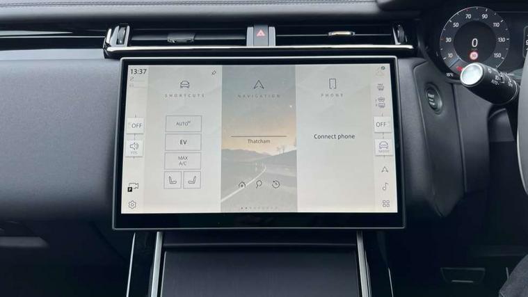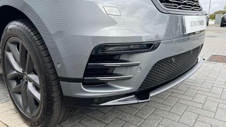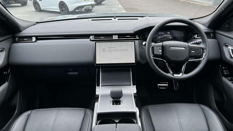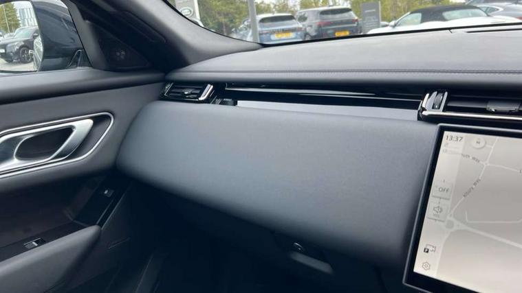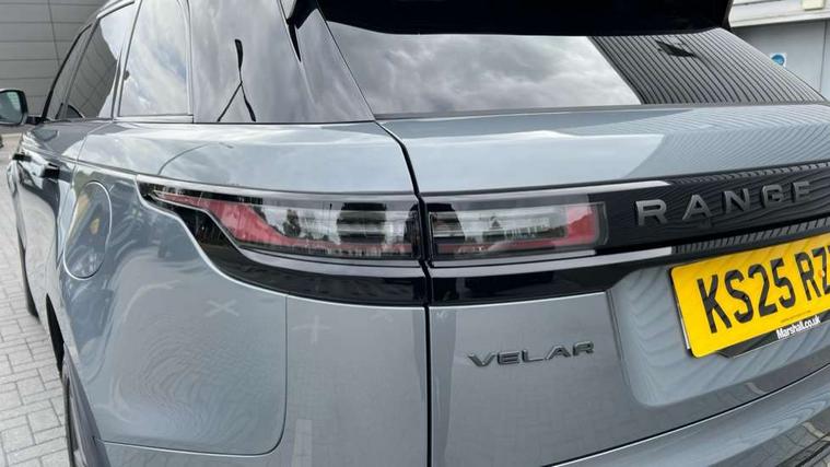 3D surround camera includes forward traffic detection and vehicle guidance, Android Auto, Apple CarPlay, Blind spot assist, Bluetooth connectivity, Brake pad wear indicator warning light, Driver condition monitor, eCall emergency call system, Front and rear parking aid, InControl remote, Land Rover InControl apps, Lane keep assist, Pivi pro with connected navigation, Rear traffic monitor, Service indicator, Speed proportional electronic power assisted steering (EPAS), Traffic sign recognition with adaptive speed limiter, Trip computer, Voice control system, Wade Sensing, Wireless device charging, 7kw on board charger, 8 speed automatic transmission, AC/DC charging, Adaptive dynamics, All terrain progress control, Coil suspension system, Home charging cable, Open differential with torque vectoring by braking, Public charging cable, Single speed transfer box, DAB radio, Steering wheel mounted controls, 3rd brake light, Acoustic laminated windscreen, Auto dimming interior rear view mirror, Auto high beam assist, Automatic headlamp levelling, Automatic headlights, Body coloured bumpers, Boot protection plate, Electric windows with one touch open/close and anti trap, Flush deployable exterior door handles, Follow me home headlights, Heated rear window with timer, Heated washer jets, Heated windscreen, LED headlights with signature DRL, Metal front tread plates, Metal load space scuff plates, Power fold, auto-dimming, heated door mirrors with memory and approach lights, Rain sensor windscreen wipers, Rear animated directional indicators, Rear fog lights, Rear side wing doors, Rear wash/wipe, Tailgate/boot lid spoiler, Trailer stability assist, Velar badge, 14 way electrically adjustable front seats with driver's memory function, 3 seat bench in 2nd row, Ambient lighting, Bright metal pedals, Carpet mats, Driver/passenger sunvisors with illuminated vanity mirrors, Ebony morzine headlining, Electrically adjustable steering column, Heated steering wheel, Isofix system on outer rear seats, Loadspace cover, Overhead lighting console, Overhead stowage for sunglasses, Passive front headrests, Rear air vents, Rear centre headrest, Single front passenger seat, Twin front cupholders, Twin sliding front centre armrest, Online pack with data plan - Velar, Power socket pack 2 - Velar, 380mm front brakes and 325mm rear brakes, 3x3 point rear seatbelts, Anti-lock braking system (ABS), Cornering brake control, Curtain airbags, Customer configurable autolock, Door side intrusion beams, Driver airbag, DSC - Dynamic Stability Control, Electronic brake force distribution, Electronic parking brake, Electronic traction control, Emergency braking, Front and rear seatbelt reminder, Hill descent control, Hill launch assist, Low traction launch, Passenger airbag, Power operated child locks, Rear airbags, Roll stability control, Side airbags, Tyre pressure monitoring system (TPMS), Global lock and unlock switch on driver door, Immobiliser, Intrusion sensor, Keyless entry, Lock only switch on front passenger door, Locking wheel nuts, Perimetric alarm, Remote central locking, All season tyres,