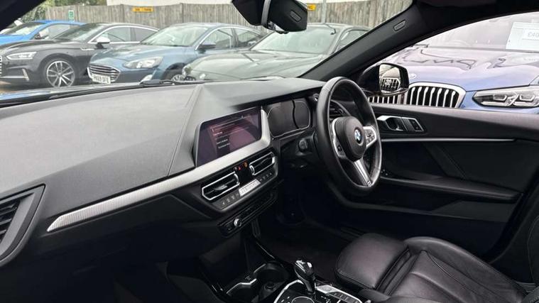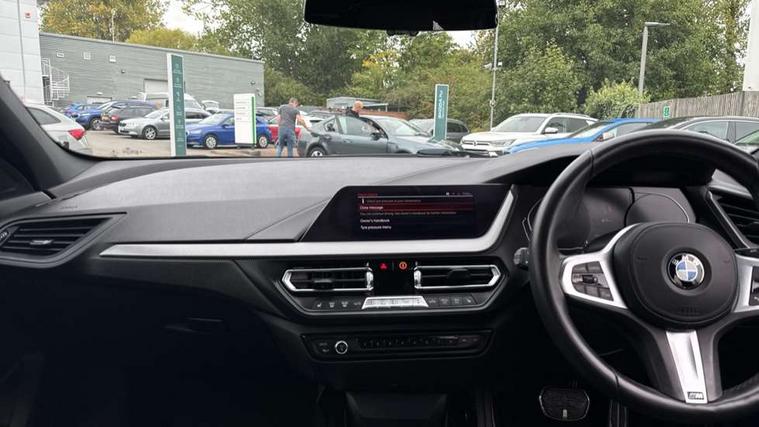 Active guard plus, Attentiveness assist, BMW Online services, BMW Teleservices, Check Control warning system for monitoring of lights and door/luggage compartment open warning, Connected eDrive Services, Eco pro mode, Electric power steering with Servotronic steering optimised at all speed ranges, Integrated owners handbook, Oil sensor for level and grade, On board computer, Optimum shift indicator, Personal Profile, Pull away assistant, Speed limiter, Aluminium lightweight construction, Anti roll bar front and rear, Balancer shaft, Double VANOS, Drive Performance Control, Electronic differential lock, High precision injection, M sports suspension + self levelling, Petrol Particulate Filter, VALVETRONIC engine management, Bluetooth audio streaming, DAB Digital radio, Auto dimming rear view mirror, Automatic headlight beam throw control, Body colour door handles, Body colour mirror caps, Chrome 'M' logo side designation, Chrome exhaust tailpipe in single, round (Exhaust tailpipe, stainless steel - single, round), Chrome kidney grille frame with Satin Aluminium struts, Direction indicator side lights in exterior mirrors, Electric folding and anti dazzle exterior mirrors, Fading support, Follow me home headlights, Front and rear electric windows with open and close fingertip control, anti trap facility and comfort closing, Front door sill finishers in black plastic with BMW designation, Green tinted heat protection glazing, Heated, electrically adjustable exterior mirror aspheric on driver side, convex on passenger side, High gloss shadow line exterior trim, High gloss shadowline window frame, Recess cover mirror frames and B/C pillar embelisher trim, High level third brake light, LED daytime running lights, LED eyebrow turn indicators, LED front fog lights, Lightweight engineering, Matt black air guide grilles, Model designation on right side of tailgate, Nearside reverse light in rear light cluster, Preparation for high beam assistant, Rain sensor including auto headlights activation, Rear fog lights, Rear window wiper, Shark fin antenna, Visible VIN plate, Welcome lighting, Windscreen wipers with integrated washing jets, 12V power socket in centre console, 2 cupholders in front centre console, 3 rear seat head restraints, 3 spoke M sports design leather steering wheel finished in nappa leather with specific M badge, Anthracite headlining, Anthracite Velour floor mats, Child seat ISOFIX attachment for two outer rear seats and front passenger seat with anchorage points, Conditioned based service, Dakota leather upholstery with perforation and contrast stitching, Driver and front passenger seat heating, Driver side folding compartment in instrument panel, Folding rear clothes hook, Folding rear seats, Four grab handles integrated in roof lining, Front and rear door pockets, Front and rear side armrest integrated into door trim, Front Armrest foldable with integrated storage compartment, Front sports seats with electric side bolster adjustment, Glove compartment, Height adjustable front head restraints, Manual adjust steering wheel, Multi-function controls for steering wheel, Rear seat backrest with manual 60:40 split folding with 3 top tether clips integrated on rear of seat panels, Storage compartment in centre console, Sun visors with vanity mirrors and insert tab, Two zone automatic air conditioning, Connected pack professional - 1 Series, Extended Lighting pack - 1 Series, Extended storage pack - 1 Series, Interior lights pack - 1 Series, Luggage compartment pack - 1 Series, M Sport exterior styling aerodynamics pack - 1 Series, 2 tone horn, 3 point seatbelts on all seats, front pyrotechnic belt tensioners, stopper and belt force limiters, rear coded belt buckles, Airbags - Front driver and passenger, front and rear head, front side, curtain head protection, Anti lock braking system (ABS) with brake assist, BMW emergency call, Brake drying, Braking readiness, Crash sensor activating central locking release, hazard warning lights, fuel cut off, interior lighting + activation of safety battery terminal clamp, Driver and front passenger seat belt security check, Dynamic stability control + (DSC+), Dynamic Traction Control - DTC, Electrically operated hand brake, Front and rear disc brakes, Front passenger manual airbag deactivation, Rear child proof door locks, Seatbelt warning, Side impact protection, Tyre pressure monitoring system, Warning triangle and first aid kit, Automatic drive away locking facility, Central locking switch for all doors, fuel filler cap and luggage compartment, Deadlocking function system to all doors, Locking wheel bolts, Remote control with integrated key with High-gloss Black inlay and M designation and 1 button for open/ close lock, window, open luggage compartment, Start/stop button with comfort go keyless engine start and auto start stop deactivation button, Thatcham Cat.1 alarm and immobiliser, Contrast stitching on instrument panel, Reduced rolling resistance tyres,