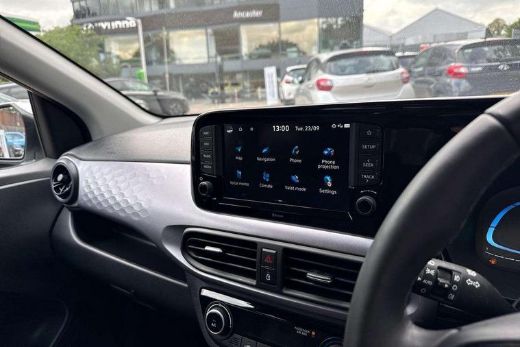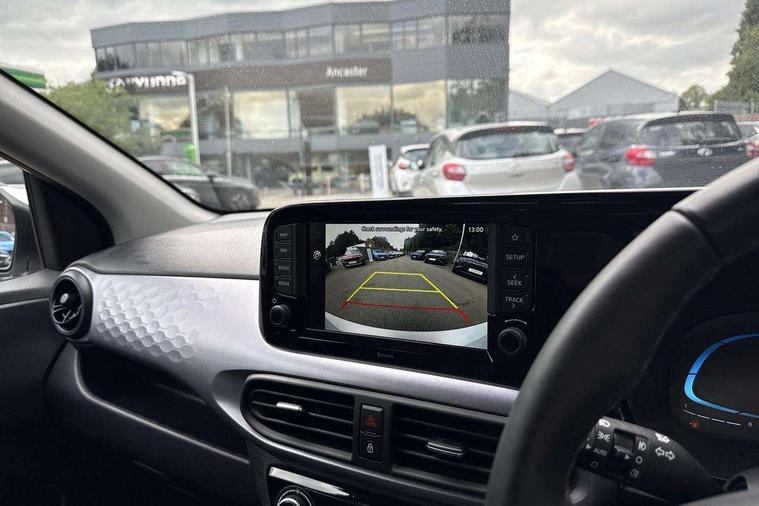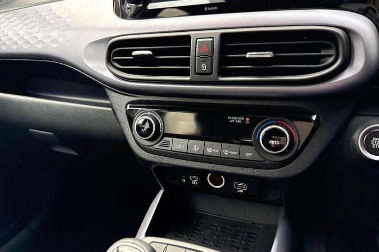 Apple car play/Android Auto, Bluelink mobile remote connectivity, Bluetooth connectivity with voice recognition, Cruise control, Driver attention alert system, eCall emergency call system, Forward Collision-Avoidance Assist (FCA) - Pedestrian/Cyclist, Front USB-C charging and USB-A data, Full-width 4.2" LCD instrument cluster, Intelligent speed limit assist, Lane departure warning system with lane keep assist - LKAS, Lane follow assist, PAS, Rear parking sensors, Rear view camera with guidelines, Roadside assistance, Start/Stop function, Tailgate, Trip computer, Wireless charging pad, 2 front/2 rear speakers, Rear USB-C device charger, Steering wheel audio, phone and cruise controls, 1 speed non intermittent rear windscreen wiper, Black finish on B pillars, Body colour door handles, Body coloured bumpers, Body coloured door mirrors, Electric folding door mirrors, Electric front windows, Electric rear windows, Electrically adjustable and heated door mirrors, Flat metal emblem, Front fog lights, Front grille in glossy black, Front intermittent wipers, Halogen bi-function headlights, Headlights inner with Black Blade design, Heated rear window, High beam assist, Indicator light on door mirrors, LED DRLs diamond mesh design, Privacy glass - Rear windows and tailgate, Rear roof spoiler with integrated LED brake light, Rear side wing doors, 12v power outlet - front, 3 seat bench in 2nd row, 60/40 split folding flat to floor rear seats, Air conditioning, Auto light control, Bottle holders in front/rear doors + front centre console, Cabin and luggage compartment interior lighting, Cloth upholstery, Driver + passenger vanity mirrors, Driver's seat height adjustment, Driver/passenger sunvisors with ticket holders, Floor mats, Front door pockets, Front Head Restraints - Vertical and Horizontal Adjustment, Front LED blue mood lighting, Glove compartment, Heated front seats, Heated steering wheel, Height adjustable steering column, Isofix child seat preparation, Leather multifunction steering wheel, Rear door pockets, Single front passenger seat, Vertical adjustment rear head restraints, 3x3 point rear seatbelts, Airbags - front, front side and curtain airbags, Anti-lock brake system (ABS), Autonomous emergency braking (AEB) with forward collision warning system, Brake assist function, Childproof rear door locks, Electronic stability control, Front and rear seatbelt reminder, Front seatbelt pretensioners, Hill start assist control (HAC), Passenger airbag deactivate switch, Traction control, Tyre pressure monitoring system, Immobiliser, Perimeter alarm, Rear occupant alert, Remote central locking, Second remote key, Smart key with motion sensor, Speed sensitive auto door locking, 16" alloy wheels, Tyre repair kit,