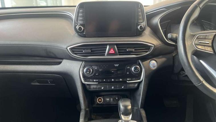 8" touch screen sat nav with TMC, Adaptive cruise control with Stop and Go, Apple car play/Android Auto, Blind spot assist, Bluetooth connectivity with voice control, Drive mode selector, Driver alert system, Emergency stop signalling system, Front parking sensor, Fully electric and hands free tailgate + keyless entry and start, Lane departure warning system, Lane keep assist, Park assist with rear view camera, PAS, Rear cross traffic alert, Rear parking sensor, Smartphone connectivity, Smartphone wireless charging plate, Trip computer, Self levelling suspension, Vehicle Stability Control (VSC), Auxiliary input socket, DAB Digital radio, Premium audio system with 10 speakers, Rear USB port, Steering wheel mounted controls, USB connection, Auto dimming rear view mirror with compass, Automatic defog system, Automatic headlights with dusk sensor, Automatic windscreen wiper control, Body coloured bumpers, Body coloured door mirrors, Chrome door handles, Electric folding door mirrors, Electric front/rear windows/one touch/anti trap, Follow me home headlights, Heated rear windscreen, Heated/electric door mirrors with integrated indicators, High beam assist, LED brake lights, LED daytime running lights, LED front fog lights, LED Headlights, LED rear fog light, LED rear lights, Positioning Lights - LED, Privacy glass, Puddle lights, Rain sensor, Rear spoiler, Rear wash/wipe with intermittent wipe setting, Roof rails, Solar glass with windscreen shade band, Static Cornering lights, Trailer stability assist, Variable front intermittent wipers, Windscreen wiper de-icer, 12V power point in luggage area, 12V power points in front + rear centre consoles, 50/50 split/folding 3rd row of seats, 60/40 split folding slide/recline seats 2nd row, Bottle holders, Driver's seat electric height adjustment with lumbar support, Driver/passenger sunvisors + illuminated vanity mirrors (drivers with ticket holder), Dual zone climate control, Electric lumbar adjustment on passenger's seat, Faux leather door trim, Front and rear door pockets, Front armrest/storage, Front cupholders, Front map reading lights, Front passenger seat electric height adjust, Front seat and rear pockets, Front/rear interior lights, Fully adjustable front head restraints, Grab handles, Heated front seats, Heated rear seats, Heated steering wheel, Height adjustable rear head restraints, Height/reach adjustable steering column, Internal chrome door handles, Isofix child seat preparation for front passenger seat, Isofix on 2nd row rear seats, Leather gear knob, Lockable/illuminated air conditioned glovebox, Luggage compartment lighting, Luggage hooks, Luggage net, Multifunction leather steering wheel, One-touch folding rear seats, Overhead console with sunglasses holder, Rear armrest with cupholder, Retractable load area cover, Underfloor storage system in load area, Trailer wiring pack - Santa Fe, 3 point seatbelts on all seats, ABS/EBD, Autonomous emergency braking, Brake assist function, Childproof rear door locks, Downhill Assist Control (DAC), Driver and passenger airbags, Drivers knee airbag, Electronic parking brake with auto hold, ESP, Front and rear curtain airbags, Front seatbelt pretensioner, Front side airbags, Height adjustable front seatbelts, Hill start assist control (HAC), Passenger airbag deactivate switch, Predictive pedestrian protection, Rear seat belt pretensioners, Rear seat Occupancy alert, Seatbelt warning lamp, Traction control, Tyre pressure monitoring system, Alarm and remote central locking, Automatic door locking, Deadlocks, Engine immobiliser, Locking wheel nuts, Faux leather wrapped dashboard, 18" Alloy wheels, Alloy spare wheel,