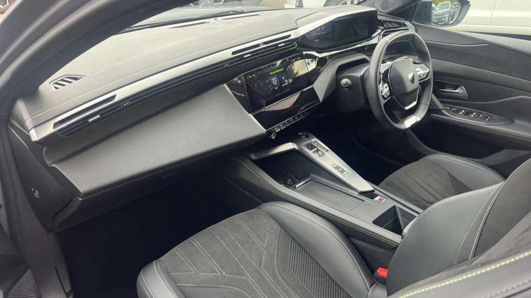 Bluetooth telephone facility, Compact drive selector, Driver attention warning, Emergency call service, Exterior temperature indicator with ice warning, Front and rear parking sensors, Intelligent speed adaptation, Lane keep assist, Mirror screen with wireless apple carplay and android auto, Multi driving mode selector - Eco / Normal / Sport mode selector, Multi function trip computer, Peugeot connect advanced with connected 3D navigation, PEUGEOT i-Cockpit - compact steering wheel, 10" HD colour touchscreen with configurable 3D headup instrument panel, PEUGEOT SOS and assistance, Service interval indicator, Speed limit recognition and recommendation, Sport pedals with foot rest, DAB Digital radio, Peugeot customisable iToggles, Voice recognition for radio, navigation and telephony features, 2 X LED rear number plate lights, Acoustic and tinted windscreen, Acoustic laminated front side windows, Automatic hazard light activation upon heavy brake application, Automatic triggered rear windscreen wiper in reverse gear, Body colour door handles, Body colour rear roof spoiler, Dark chrome chequered radiator grille, Dark tinted rear side and tailgate windows, Electric operated/heated door mirrors, Extended lower body sills to the front and side, Frameless electrochrome rear view mirror, Front and rear electric windows with one touch/anti pinch, Full LED matrix headlights with automatic adjustment, Gloss black finish B pillar, Gloss black rear cluster connecting strip, GT model designation badging on tailgate, High beam assist, LED 3rd brake light, LED side indicator lights integrated into door mirrors, Lion emblem badging on front wings, Model designation badges on front and rear, Nera black door mirrors, Peugeot aluminium door sills, Peugeot signature LED daytime running lights, Power folding door mirrors, Rear full LED 3D Peugeot new claw effect lights with sequential welcome sequence upon unlocking the vehicle, Rear lower bumper gloss black diffuser effect trim, Rear reversing lights, Rear side wing doors, Tailgate with heated rear windscreen and wiper blade, Twin exhaust pipes with chrome surround, 1/3 to 2/3 split folding rear seats, 12V socket, 2 front USB socket including 1 USB type c, 3 seat bench in 2nd row, 8 Colour personalisable ambient lighting, Automatic air conditioning with AQS 3, Carpet mats, Central front armrest with storage compartment, Dynamic front seats, Electric power steering with reach and rake adjustable steering column, Front central console with two cup holders, LED Glovebox light, Manual driving mode - change gear manually via steering mounted paddles, Multifunction full grain leather steering wheel with admite green stitching & GT badging, Piano keys gloss black plated toggle switches to access main functions of the vehicle, Roof lining - Mistral black, Seatbelt unfastened on the move audible and visual alert for front and rear seats, Single front passenger seat, Ski hatch with central rear armrest with cup holder, Sunvisor with concealable mirrors and LED lighting, Twin USB charging ports in the rear (Type C), Driver sport pack with sports power steering - 308, Visibility pack with automatic magic wash windscreen wipers - 308, 2x Isofix child seat fitting on outer rear seats, 3x Rear three-point retractable seatbelts with force limiters in the outer rear seats, ABS + EBD + EBA, Active safety brake with night function/cyclists/pedestrians, Adaptive driver and front passenger airbags with passenger airbag deactivation function, Automatic post collision braking, Child locks on rear doors, Driver/front passenger side airbags, Electronic parking brake, ESP, Front and rear curtain airbags, Front optimised safety headrests and rear retractable headrests (x3), height adjustable, Front three point retractable seatbelts with force limiters, Front/rear disc brakes, Hill start assist, Tyre pressure sensor, Automatic door locking when moving off, Deadlocking system, Electronic code immobiliser, Locking wheel nuts, PEUGEOT Open and Go keyless entry system, Thatcham cat. 1 alarm with anti lift sensor,