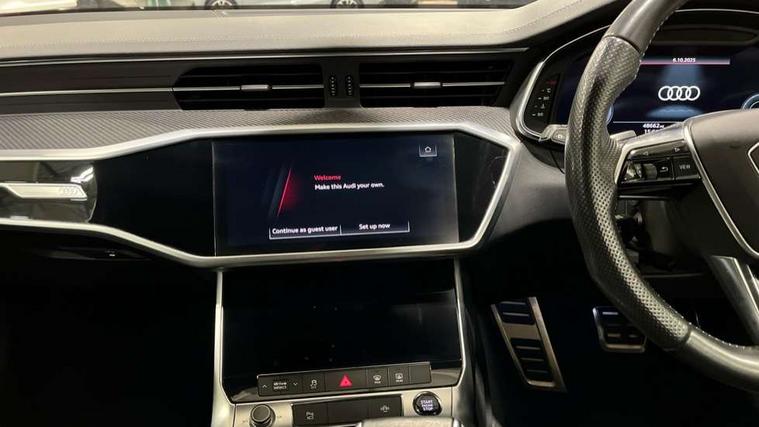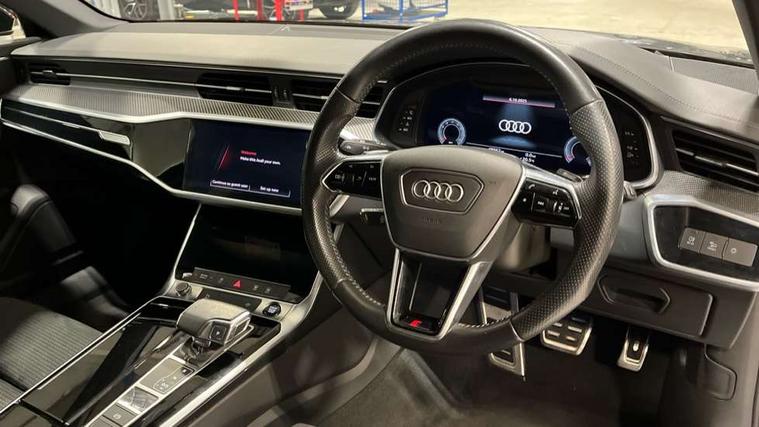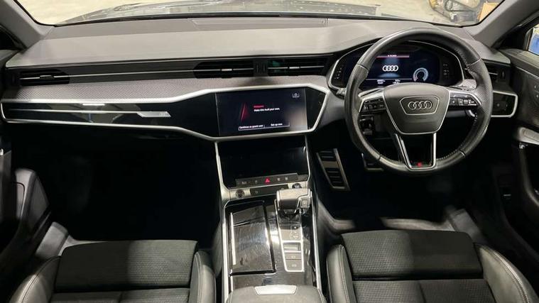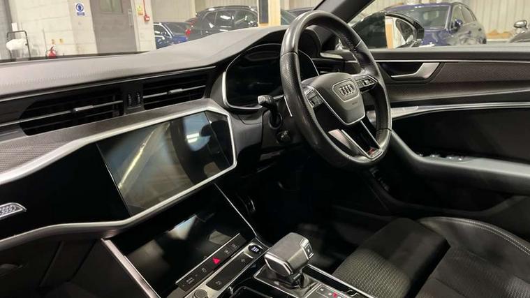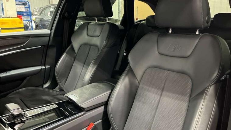 7" high resolution colour driver information display system, Audi connect safety and service (e-call), Audi connect with Amazon Alexa Integration, Audi drive select, Audi parking system plus - acoustic and visual park assist system for front and rear, Automatic start/stop system with coasting functionality, Bluetooth interface, Lane departure warning system, Power operated tailgate, Progressive steering, Rear view camera, Service interval indicator, Smartphone interface includes wireless Apple carplay/Android Auto, Voice control system, Sports suspension, Audi front music interface, Audi sound system, Auxiliary input socket, DAB Digital radio, USB connection, All weather LED headlights, Black roof rails, Electric front/rear windows, Frameless auto dimming interior rear view mirror, Front intermittent wipers, Gloss black highlights on the exterior area of the Audi Single frame, Gloss black highlights on the front and rear bumpers, Gloss black highlights on the radiator grille, Gloss black highlights on the side windows trim strips, Headlight washers, Heat insulating darkened glass in side and rear windows, Heat insulating glass in windshield, LED rear lights, LED signature front daytime running light, LED third brake light, Matt black rear diffuser with diffuser strip and tailpipes in chrome, Matt black side air intake grille with inlay in matt aluminium, Privacy glass, Rain and light sensors, Rear roof spoiler, Rear side wing doors, Rear wiper, 2 zone deluxe electronic climate control, 4 way electric lumbar support for driver and front passenger, 40/20/40 split folding 3 rear seat bench in 3 parts with rear centre armrest, Black cloth headlining, Black front and rear carpet floor mat, Black steering wheel insert, Electrically adjustable front seats with driver memory, Front centre armrest, Front head restraints, Heated front seats, Height/reach adjust steering wheel, Illuminated door sill trims with S logo, Illuminated sun visors with vanity mirrors, ISOFIX child seat mounting and Top Tether with front passenger airbag deactivation, Leather gear knob, Luggage compartment system, Rear headrests, Single front passenger seat, Stainless steel pedals and foot rest, LED Interior Ambient Lighting Pack - A6, Non smoking pack - A6, Technology pack - A6, 3 point seatbelts on all seats, Airbags - Front side, front and rear including head, Audi pre-sense front, Black seatbelts, EBD - Electronic brakeforce distribution, Electromechanical parking brake, Electronic Stability Control (ESC) including ABS, ASR and EDL, Extended pedestrian protection measures, Manual child proof rear door locks, Seatbelt monitoring, Tyre pressure warning light, Warning triangle and first aid kit, Anti theft alarm with tow away protection, Anti-theft wheel bolts and wheel loosening detection, Immobiliser, Keyless Go, Remote central locking, Carbon twill inlays, 20" 5 V spoke star design Audi sport cast aluminium alloy wheels in matt titanium look,