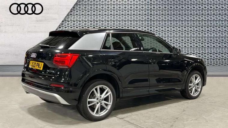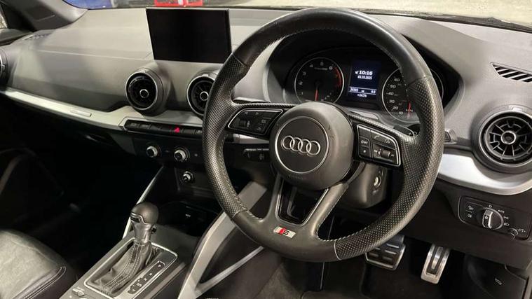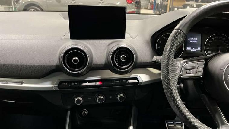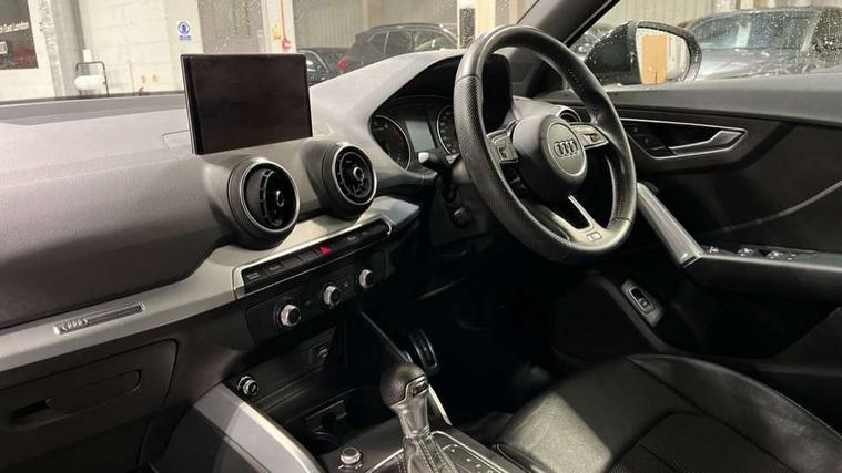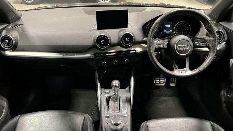 Audi drive select, Audi smartphone interface, Automatic start/stop system with recuperation, Bluetooth interface includes bluetooth audio streaming, Cruise control, MMI - Multi Media Interface control system, MMI SD card integrated nav with 3D map display, dynamic route guidance with TMC, MMI search, natural voice recognition and myAudi special destinations, Power operated tailgate, Progressive steering, Service interval indicator, Dynamic suspension, 2 x SDXC card reader, Audi music interface - apple iPod, apple iPhone, USB storage media, compatible MP3 players, 2 x USB charging points and 1 x Aux-in, CD Drive, DAB digital radio and AM/FM radio, MMI radio plus with 7" colour MMI screen and MMI controller, Black window trims, Bumper in full body colour paint finish, Chrome exhaust tailpipe, Electrically adjustable and heated door mirrors with integrated LED side indicators, Front and rear electric windows, Front underbody guard and rear diffuser trim in selenite silver, Front windscreen with grey tinted sunband, Headlight washers, Interior mirror, LED headlights with LED rear lights + dynamic rear indicators, LED indicator lights, Manual folding door mirrors, Rain and light sensors, Rear wiper, S Line badges on the front wings, S Line body styling - front and rear bumpers, side skirts, radiator grille, rear diffuser insert and front air intakes, 60/40 split folding rear seat bench, Black cloth headlining, Electronically operated child locks, Floor mats with contrast stitching, Front centre armrest, Front headrests, Front sport seats with S embossed logo, Height/reach adjust steering wheel, Illuminated door sill trims with S logo, ISOFIX child seat mounting for front passenger with airbag deactivation and outer rear seat including top tether attachment point for outer rear seats, Manual seat adjustment including seat height adjustment for front seats, Stainless steel pedals, Storage compartments - Glovebox, cupholder compartment in centre console, storage compartment in rear centre console, front and rear door pockets, Three rear headrests, Non smoking pack - Q2, 3x3 point rear seatbelts, 6 airbags - Front, curtain and front side airbags, Electromechanical parking brake, Electronic stabilisation control including ABS, ASR and EDL, Extended and proactive pedestrian protection, Hill hold assist, Multi collision brake assist, Pre-sense front with pedestrian recognition, Seatbelt monitoring, Tyre pressure warning light, Warning triangle and first aid kit, Anti theft alarm, Anti theft wheel bolts, Central locking system with remote control key, Aluminium interior element,