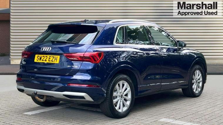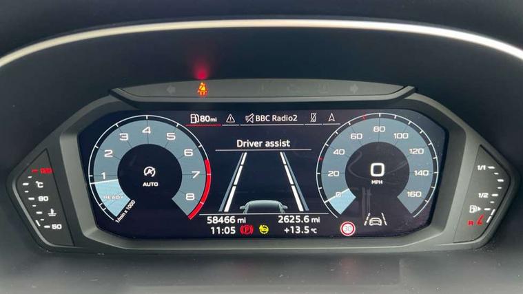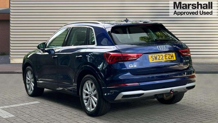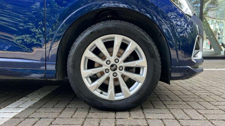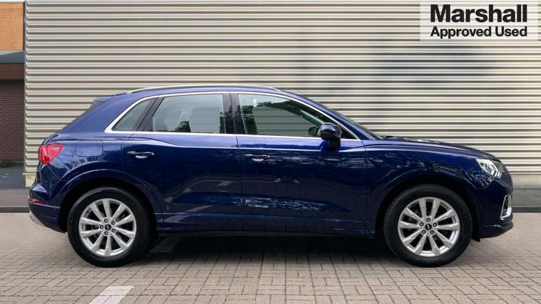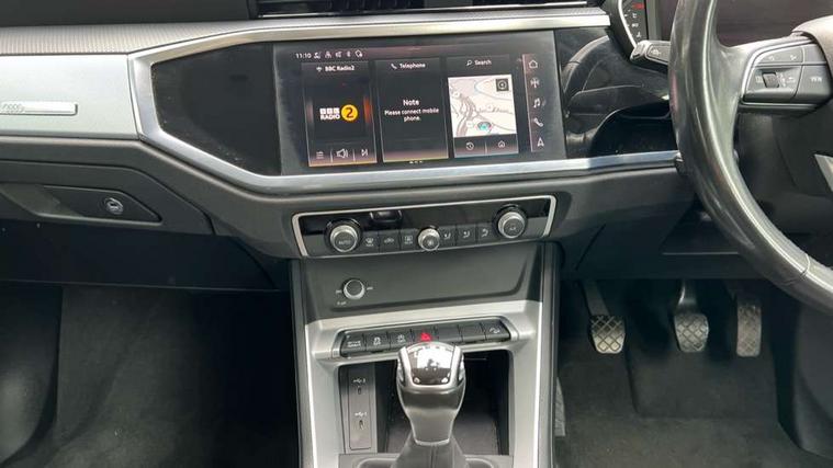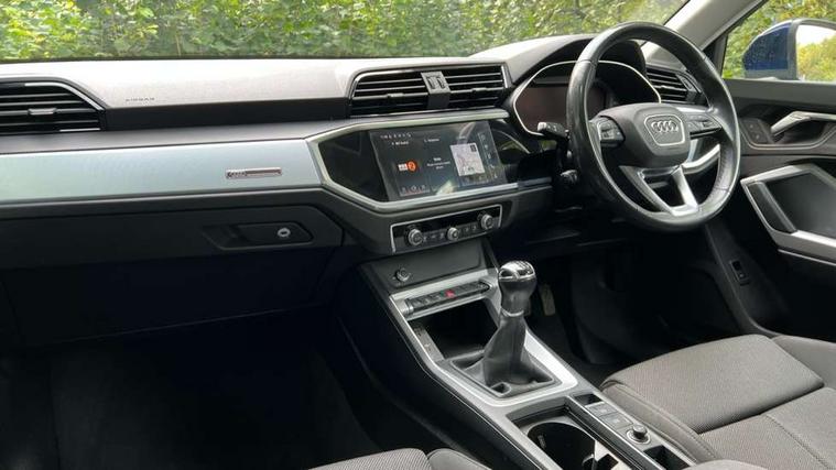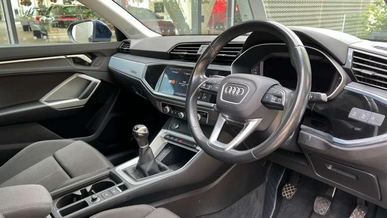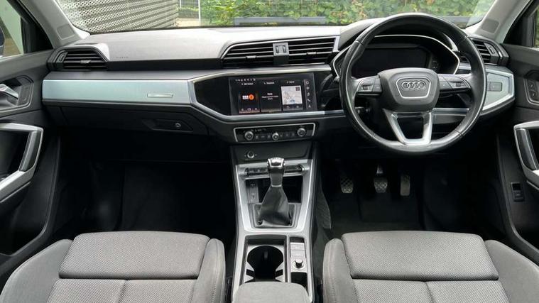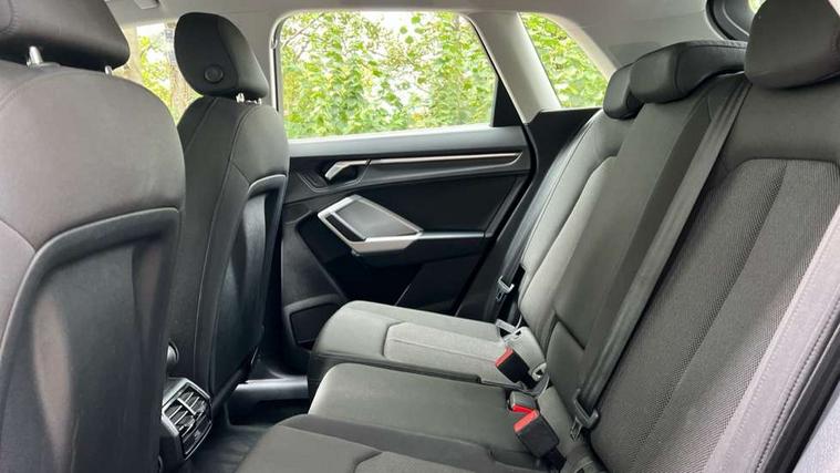 Amazon alexa Integration, Audi drive select, Audi lane departure warning, Audi Virtual Cockpit - 10.25" display, Bluetooth interface, Camera based traffic sign recognition, Cruise control + speed limiter, Legal emergency call, MMI Navigation Plus with high resolution 10.1 inch touchscreen colour display, Power operated tailgate, Progressive steering, Rear parking sensors, Service interval indicator, Smartphone interface includes wireless Apple carplay/Android Auto, Start stop system with recuperation, Voice control system with natural language interaction, Standard suspension, 2 USB-C ports with charge and data functions, 6 passive loudspeakers, DAB digital radio module, Acoustic windscreen, Aluminium roof rails, Aluminium window trim, Auto dimming frameless rear view mirror, Body coloured bumpers, Electrically folding, adjustable and heated door mirrors with integrated LED side indicators and kerb view function for passenger side, Front and rear electric windows, Front fog lights, Front side air inlets in matt selenite silver, Front spoiler in matt selenite silver, Grille vertical bars in aluminium silver/Matt, High gloss black finish B and C pillars, LED headlights with LED daytime running lights, LED rear lights, LED third brake light, Rain and light sensors, Rear diffuser strip in matt selenite silver, Rear side wing doors, Rear wiper, Titanium black radiator grille, Variable front intermittent wipers, 12V socket in rear centre console, 3 seat bench in 2nd row, 3 spoke multi-function leather steering wheel, 40:20:40 folding with manual adjustment for 60:40 forwards/backwards position and backrest angle, Door sill trims with aluminium inlay, Dual zone electronic climate control, Front and rear floor mats, Front and rear headrests, Front and rear roof module including reading lights, Front centre armrest, Glove compartment lighting, Height and reach adjustable steering wheel, ISOFIX child seat mounting for front passenger with airbag deactivation and outer rear seat including top tether attachment point for outer rear seats, Luggage compartment light, Lunar silver cloth headlining, Manual front seats with height adjustment, Single front passenger seat, Stainless steel luggage compartment sill finisher, Non smoking pack - Q3, 3x3 point rear seatbelts, 6 airbags - Driver, front passenger, curtain and side windows, Audi pre-sense front with pedestrain and cyclist recognition, Electromechanical parking brake, Electronic stabilisation control including ABS, ASR and EDL, Front seatbelt reminder, Hill descent control, Hill hold assist, Manual child lock in rear doors, Pre sense basic, Seatbelt monitoring, Tyre pressure warning, Warning triangle and first aid kit, Anti theft alarm, Anti theft wheel bolts, Immobiliser, Remote central locking, Detail dashboard around MMI touch colour display in glass look, black with surround in aluminium look, Micrometallic silver inlay,