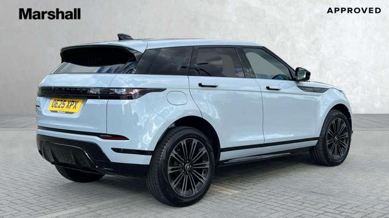 11.4" touch screen, 3D 360 degree surround camera with wade sensing, Adaptive cruise control, Android Auto, Apple car play, Blind spot assist, Bluetooth connectivity, Brake pad wear indicator warning light, Driver condition monitor, eCall emergency system, Eco mode, Electronic power assisted steering (EPAS), Front and rear parking sensors with auto brake, InControl remote, Interactive driver display, Land Rover InControl apps, Lane keep assist, Pivi pro connected includes diamond pivi variant, smart settings, connected navigation pro, nuance speech licence, Powered tailgate/boot lid, Rear collision monitor, Rear traffic monitor, Tailgate, Traffic sign recognition with adaptive speed limiter, Voice control system, Wireless device charging, All terrain progress control, Diesel exhaust fluid (DEF) large tank, Efficient Driveline, Large fuel tank, Terrain Response 2, Digital Audio Broadcast radio-DAB, Meridian surround sound system with 650W subwoofer and 14 speakers, Steering wheel mounted controls, Acoustic laminated windscreen, Auto headlights, Automatic headlight levelling, ClearSight interior rear view mirror, Electric windows with one touch open/close and anti trap, Flush deployable exterior door handles, Front and rear recovery eyes, Heated rear window with timer, Heated washer jets, Heated windscreen, Pixel LED headlights with signature DRL and LED tail Lights, Power fold, auto-dimming, heated door mirrors with approach lights and auto dimming driver side, Rain sensing windscreen wipers, Rear animated directional indicators, Rear fog lights, Rear side wing doors, Rear wiper, Side repeater indicators in mirror, Sliding panoramic roof with powered sunblind, Tailgate spoiler, Third brake light, Winter wiper park position, 14 way driver memory electric front seats with 2 way manual headrests + 4 way lumbar support, bolsters, 40:20:40 split folding rear seats with centre headrest and armrest, Ambient interior lighting, Bright metal pedals, Carpet mats, Customer configurable single point entry, Electrically adjustable steering column with memory function and easy entry/exit, Front and rear cupholders, Heated steering wheel, Isofix system on outer rear seats, Overhead lighting console, Overhead stowage for sunglasses, Passive front head restraints, Rear air vents, Rear head restraints, Satin chrome gearshift paddles, Single passenger seat, Sunvisors with illuminated vanity mirrors, Twin sliding front centre armrest, Power socket pack 2 - Evoque, 3 rear 3 point seatbelts, Anti-lock braking system (ABS), Brake hold function, Customer configurable autolock, DSC - Dynamic Stability Control, Electronic brake force distribution, Electronic parking brake, Electronic traction control, Emergency braking, Front and rear seatbelt reminder, Hill descent control, Hill launch assist, Low traction launch, Occupant protection assist, Passenger seat occupant detector, Power operated child locks, Roll stability control, Six airbags - Driver and passenger airbags/driver knee airbag/front side airbag and curtain airbags, Torque vectoring brake, Tyre pressure monitoring system, Alarm, Immobiliser, Intrusion sensor, Keyless entry, Locking wheel nuts, All season tyres,