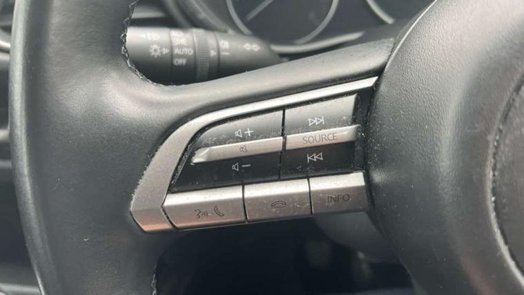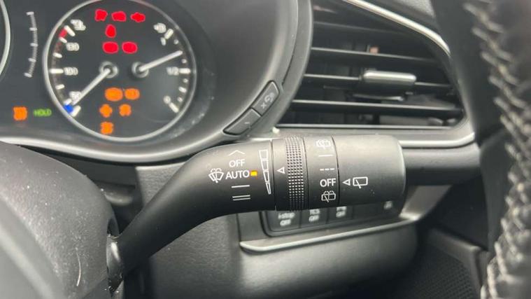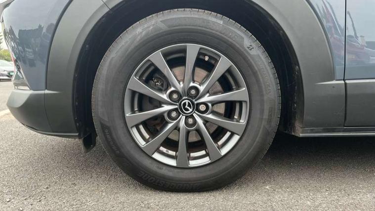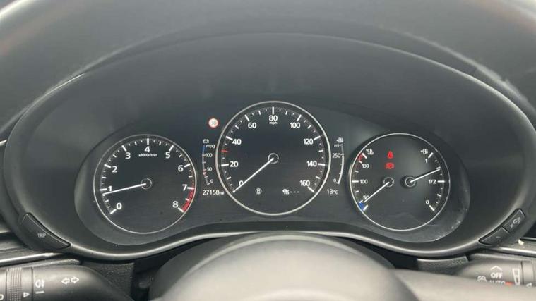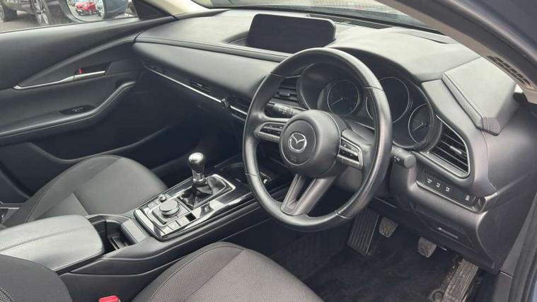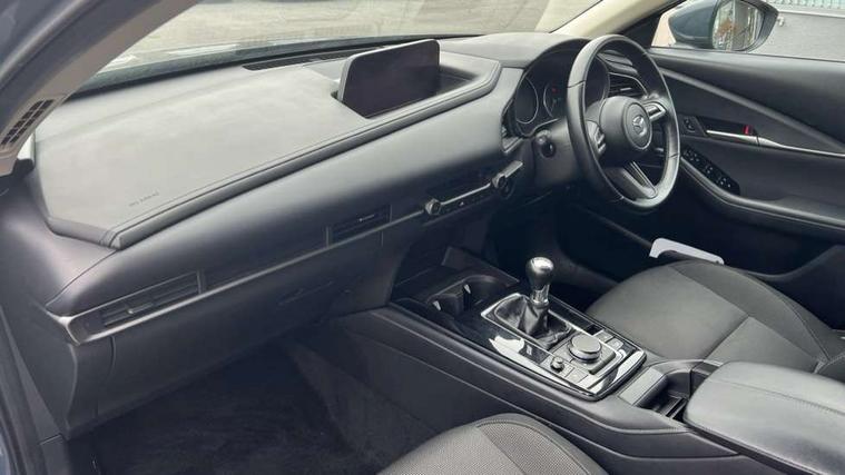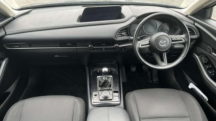 7" TFT Colour driver instrument panel display, 8.8" Colour centre touch screen display with Mazda Connect infotainment, Adaptive cruise control (Mazda radar cruise control), Apple car play/Android Auto, Blind spot monitoring with rear cross traffic alert, Driver attention alert system, E-call with GPS, Emergency stop signalling system, Engine start/stop button, Front and rear parking sensors, Integrated bluetooth, Integrated Mazda navigation system, Intelligent speed assist, Lane keep assist system (LAS) with Lane departure warning system (LDWS), Mazda connected services, PAS, Reversing camera, Service indicator, Tailgate, Traffic sign recognition, Trip computer, Windscreen projected colour active driving display (HUD), Cylinder Deactivation, i-stop, 2 USB charging ports in front inner central armrest, AM / FM / DAB radio with 8 speakers, Multimedia Commander including separate volume dial, Steering wheel mounted audio/bluetooth controls, B-pillar and C-pillar garnishes in satin black finish, Auto dimming driver's door mirror, Auto dimming rear view mirror, Auto headlight levelling, Body coloured, electrically adjustable, heated auto power folding door mirrors with integrated indicators, Chrome finish signature wing in front grille, Coming/leaving home lighting function, Dual chrome exhaust, Dusk sensing headlights, Electric front/rear windows with one touch auto up/down, Front kodo turn signal, Gloss black rear roof spoiler, LED headlights with halogen daytime running lights and high beam control, LED rear combination lights, Rain sensing front wipers with adjustable speed and intermittent wipe, Rear fog lights, Rear side wing doors, Rear wiper, Satin black front grille, Third brake light, 12V power outlet in centre console, 3 seat bench in 2nd row, 60/40 split fold down rear seats, Cloth upholstery with interior accents, Dark cloth door panel inserts, Dashboard, door cards and front centre armrest in black cloth, Driver and front passenger visors with covered vanity mirror and driver ticket holder, Driver seat manual slide, recline, height and seat tilt adjust, Driver, front passenger and two rear door storage, Driver, Front passenger and two rear grab handles with coathooks, Dual zone climate control air conditioning with rear air vents, Folding rear centre armrest with two cup holders, Front and rear (x3) head restraints, Front and rear LED lighting, Front armrest, Front centre storage with two cupholders, Front passenger seatback pockets, Front passengers seat manual slide, recline and height adjustment, Gear shift indicator, Glovebox illumination, Heated front seats with 3 stage setting, ISOFIX child seat anchorage points attached on outer rear seats, Leather wrapped gear shift knob, Leather wrapped steering wheel with telescopic and tilt adjustment, LED luggage compartment lighting, Light roof headlining and pillars, Roof mounted sunglasses holder, Single front passenger seat, 3 point ELR front seat belts x2 with pretensioners, 3 point ELR rear seat belts, Anti-lock braking system (ABS), Drivers knee airbag, DSC - Dynamic Stability Control, Electronic parking brake with auto disengage function and auto hold function, Front and rear curtain airbags, Front dual stage driver and single stage front passenger airbags, Front passenger airbag cut-off switch, Front side airbags, Front smart city brake support, G-Vectoring control plus, Hill launch assist, Manual child lock in rear doors, Mild Hybrid system with regenerative braking, Seatbelt reminder for driver/front passenger and rear seats, Traction control system (TCS), Tyre pressure monitoring system (TPMS), Remote central locking with deadlocking and automatic door lock when driving, Smart keyless entry, Thatcham accredited alarm and immobiliser, 16" Grey alloy wheels, Emergency tyre repair kit,