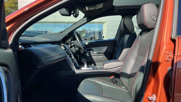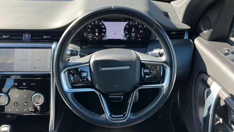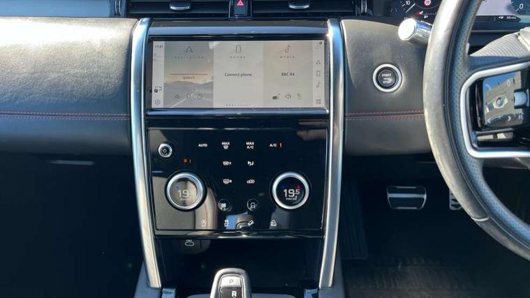 10" touch screen, 3D Surround Camera with 360 View, 180 Rear View, Front Traffic Detection, Forward Vehicle Guidance, Tow Hitch Assist and clear sight Ground View, Adaptive cruise control, Android Auto, Apple CarPlay, Blind spot assist, Clear exit monitor, Driver condition monitor, Front and rear parking aid, InControl remote premium, Interactive driver display, Lane keep assist, PAS, Pivi Pro connected navigation system with upgraded Infotainment, Powered tailgate/boot lid, Rear collision monitor, Rear traffic monitor, Rear view camera, Service interval indicator, Traffic sign recognition with adaptive speed limiter, Trip computer, Wade Sensing, All terrain progress control, Coil suspension system, Terrain Response 2, Bluetooth connectivity including audio streaming, Digital Audio Broadcast radio-DAB, Steering wheel mounted audio controls, Automatic headlight levelling, Automatic headlights, ClearSight interior rear view mirror, Door mirror memory, Electric front/rear windows, Fixed panoramic sunroof with powered sunblind, Illuminated metal front treadplates with R dynamic branding, Power fold, auto-dimming, heated door mirrors with approach lights, Rain sensing windscreen wipers, Rear fog lights, Rear side wing doors, Rear wiper, Bright metal pedals, Centre console with armrest, Front passenger isofix child seat attachment, Perforated full leather steering wheel, Rear headrests, Satin chrome gearshift paddles, Sunvisors with illuminated vanity mirrors, Third row dual adjustable individual seats, Tilt/reach adjustable steering wheel, Black exterior pack - Discovery sport, Online pack - Discovery sport, 3 point seatbelts on all seats, ABS, Brake hold function, Collision mitigation braking system, Cornering brake control (CBC), Driver/Front Passenger airbags, Drivers knee airbag, Electronic brake force distribution, Electronic parking brake, Emergency brake assist, ESP + traction control, Hill descent control, Hill launch assist, Pedestrian airbag system, Rear seat ISOFIX, Side and curtain airbags for front and 2nd row seats, Trailer stability control, Tyre pressure monitoring system, Battery Back Up System (BBUS) with tilt sensor, Intrusion sensor, Keyless entry, Locking wheel nuts, Centre stack rails in noble chrome,