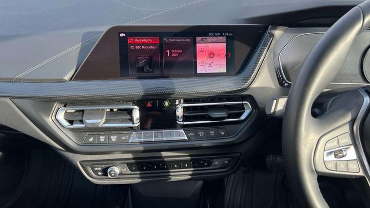 Active guard plus, Attentiveness assist, BMW Online services, BMW Teleservices, Check Control warning system for monitoring of lights and door/luggage compartment open warning, Connected eDrive Services, Eco pro mode, Electric power steering, Front/rear Parking distance control, Integrated owners handbook, On board computer, Optimum shift indicator, Personal Profile, Pull away assistant, Speed limiter, Anti roll bar front and rear, Balancer shaft, Double VANOS, Drive Performance Control, Electronic differential lock, Petrol Particulate Filter, VALVETRONIC engine management, Bluetooth audio streaming, DAB Digital radio, Auto dimming rear view mirror, Body colour door handles, Body colour mirror caps, Chrome exhaust tailpipe in single, round (Exhaust tailpipe, stainless steel - single, round), Chrome kidney grille with extra wide black, high gloss black vertical slats, Direction indicator side lights in exterior mirrors, Fading support, Follow me home headlights, Front and rear electric windows with open and close fingertip control, anti trap facility and comfort closing, Front bumper in Body colour with exclusive Sport air inlets finished in High gloss Black, Front door sill finishers in black plastic with BMW designation, Green tinted heat protection glazing, Headlight beam throw control, Heated, electrically adjustable exterior mirror aspheric on driver side, convex on passenger side, High gloss shadow line exterior trim, High level third brake light, LED daytime running lights, LED front fog lights, Lightweight engineering, Matt black air guide grilles, Matt black roof moulding, B pillar finisher and wheel arch trim, Matt black window frame, Model designation on right side of tailgate, Nearside reverse light in rear light cluster, Rain sensor including auto headlights activation, Rear bumper in Body colour with exclusive Sport design elements finished in High gloss Black, Rear fog lights, Rear window wiper, Shark fin antenna, Visible VIN plate, Welcome lighting, Windscreen wipers with integrated washing jets, 12V power socket in centre console, 2 cupholders in front centre console, 3 rear seat head restraints, 3 spoke sports leather steering wheel in pearl Chrome, Bag hook in luggage compartment, Child seat ISOFIX attachment for two outer rear seats and front passenger seat with anchorage points, Conditioned based service, Driver side folding compartment in instrument panel, Folding rear clothes hook, Folding rear seats, Four grab handles integrated in roof lining, Front and rear door pockets, Front and rear side armrest integrated into door trim, Front armrest foldable with integrated storage compartment, Front sports seats with electric side bolster adjustment, Glove compartment, Height adjustable front head restraints, Manual adjust steering wheel, Multi-function controls for steering wheel, Rear seat backrest with manual 60:40 split folding with 3 top tether clips integrated on rear of seat panels, Storage compartment in centre console, Sun visors with vanity mirrors and insert tab, Two extra lashing eyes in luggage compartment, Two zone automatic air conditioning, Velour floor mats, Extended storage pack - 1 Series, Interior lights pack - 1 Series, 2 tone horn, 3 point seatbelts on all seats, front pyrotechnic belt tensioners, stopper and belt force limiters, rear coded belt buckles, Airbags - Front driver and passenger, front and rear head, front side, curtain head protection, Anti lock braking system (ABS) with brake assist, BMW emergency call, Brake drying, Braking readiness, Crash sensor activating central locking release, hazard warning lights, fuel cut off, interior lighting + activation of safety battery terminal clamp, Driver and front passenger seat belt security check, Dynamic stability control + (DSC+), Dynamic Traction Control - DTC, Electrically operated hand brake, Front passenger manual airbag deactivation, Rear child proof door locks, Seatbelt warning, Side impact protection, Tyre pressure monitoring system, Warning triangle and first aid kit, Automatic drive away locking facility, Central locking switch for all doors, fuel filler cap and luggage compartment, Deadlocking function system to all doors, Locking wheel bolts, Remote central locking with two Integrate key, one button for opening and closing all lock, open and close window, button for open luggage compartment, Start/stop button with comfort go keyless engine start and auto start stop deactivation button, Thatcham Cat.1 alarm and immobiliser, Contrast stitching on instrument panel, Illuminated Berlin interior trim, Reduced rolling resistance tyres,
