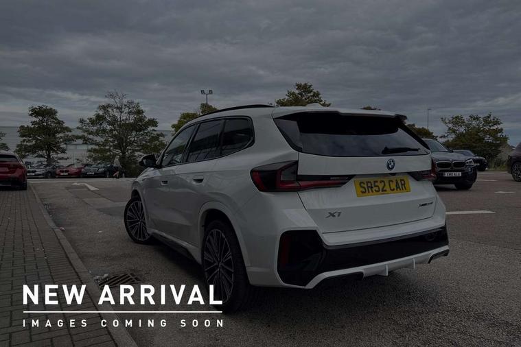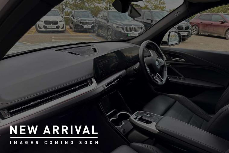 Active Guard + lane departure warning, speed limiting, front collision warning, Left turn warning with brake function and evasion assist, Attentiveness assist, BMW Live Cockpit Plus with 10.25" instrument cluster and 10.7" display, BMW Online services, BMW Teleservices, Brake pad wear indicator, Condition based service, Connected eDrive Services, Drive off assistant, Electrically opening/closing tailgate with opening/closing with remote control and contactless opening and closing, iDrive controller, Language version English, My Modes, Parking Assistant with Reversing Assistant, active PDC, Lateral Parking Aid, Rear View Camera and Park Distance Control, Personal Profile - automatic lock when driving away selectable, Servotronic PAS, Tyre puncture warning system, Widescreen display, Wireless charging, 45 Litre fuel tank, eDrive exterior sound, Fast charging cable professional mode 3 for public charging, M Adaptive suspension, Mode 2 flexible charger, Performance Control, Steptronic transmission with double clutch and gear shift paddles, xDrive intelligent four wheel drive system, DAB Digital radio, Auto dimming interior rear view mirror, Contoured rear roof spoiler in vehicle colour with side aeroblades in black high-gloss, Dynamic brake lights, Electric adjustable heated door mirrors, Electric windows - front and rear, with open/close fingertip control, anti-trap facility and comfort closing, Folding wing mirrors with auto dimming, Follow me home headlights, Front and rear bumper panel with M specific design, in body colour with inserts in black high gloss, Front door exit lights, Front entry sills aluminium inserts with M inscription, Heated rear window, High gloss black shadow line roof rails, High gloss shadow line includes B-pillar trim panel/window cavity cover/window frame/window guide rail front doors/door mirrors in high gloss black, Invisible exhaust tailpipe, Key with M identification, LED 3rd brake light integrated in rear spoiler, LED daytime running lights, LED number plate light, M identification on the sides, M specific radiator grille in satinated aluminium, Model inscription on right tailgate, Rain sensor including auto headlights activation, Rear side wing doors, Rear wiper, Roof trim strips painted in body colour, Trailer stabilisation logic, Welcome lighting, Windscreen washer nozzle for rear view camera, Windscreen wipers with front and rear heated washer nozzles, 12V - Power sockets with front centre console and luggage compartment, 2 cup holders in front, 2 x USB Type C ports for charging and data transmission (front centre console) and 2 x USB Type C ports for charging (rear centre console), 3 rear headrests, 3 seat bench in 2nd row, 3 upper retaining strap clips integrated into rear panels of seat backrests, 40:20:40 split folding rear seats, Ambient interior lighting, Anthracite headlining, Anthracite Velour front and rear floormats, Bottle trays in all doors, Child seat ISOFIX attachment for two outer rear seats and front passenger seat with anchorage points, Clothes hook rear, Driver and front passenger heated seats, Dual zone automatic air conditioning, Front and rear door pockets, Front centre console storage compartment, Front sports seats, Front/rear adjustable head restraints, Glove compartment, Light on right in luggage compartment, M sport leather steering wheel, Map pockets, Middle centre console storage compartment, Rear armrest in door trim panel, Single front passenger seat, Sport leather multifunction steering wheel with thumbrests and operation of instrument display, audio, telephone and driver assistance, Storage compartment with folding cover under centre console armrest cushion, Connected Package Professional - X1, Technology pack - X1, ABS/EBD, Automatic hold function, Automatic Stability Control (ASC), BMW emergency call, Braking readiness, Cornering brake control (CBC), Crash Sensor - activates hazard/interior lighting + unlocks doors, Driver/Front Passenger airbags, Driver/front passenger side airbags, Dry braking, Dynamic stability control + (DSC+), Electromechanical parking brake, Energy recovery system, Front and rear brake discs, Front and rear head airbags, Front passenger airbag deactivation, Integrated brake system, PC iBrake PostCrash approach control warning with light braking function, Rear door child safety locks, Three point seat belts in all seats, Tyre pressure monitor, Warning triangle, Alarm system with tilt sensor, monitoring doors, bonnet interior and tailgate, Closing system with central locking, Locking wheel bolts, Luxury instrument panel, Tyre repair kit (including Tyre sealant and 12V Compressor),