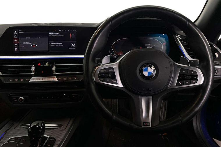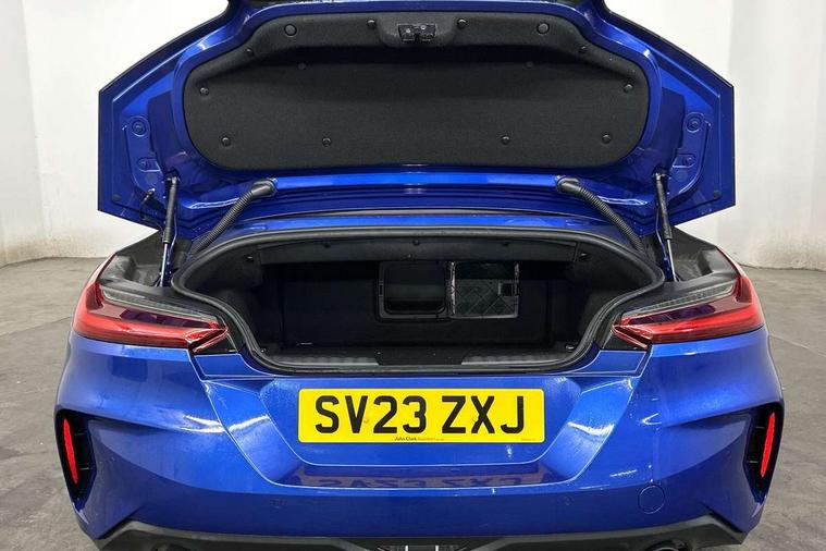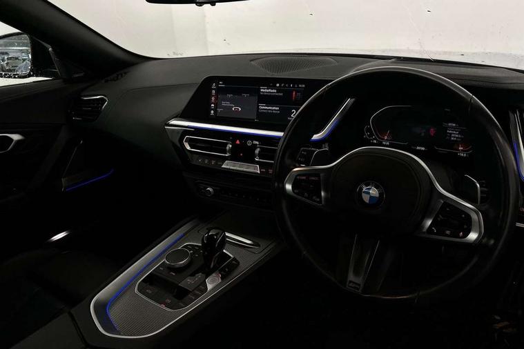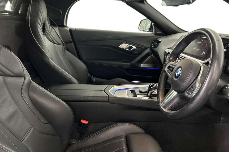 Active guard plus incl speed limit assist, lane departure warning with steering impulse and front collision warning with brake intervention, BMW ConnectedDrive online services, BMW Live Cockpit Professional with nav function/12.3" high resolution instrument +10.25" control display/Intelligent Voice Assist/2 USB/WiFi interface, BMW Teleservices, Condition based service, Electric power steering, Fuel gauge, iDrive touch controller with turn and press function, Instrument cluster, Language version English, Oil sensor for level and grade, warning by check control system, Oil temperature gauge, Optimum shift indicator, Pull away assistant, Run flat indicator, Speed limiter, Speedometer with mph readout, Tachometer, Variable sport steering, Double joint spring, Double VANOS, Drive performance control with ECO PRO comfort + sport mode, Eight speed steptronic sport transmission, with gearshift paddles, Electronic differential lock, Fuel tank breather system, High precision injection, M sport suspension, 2x USB Type C ports in front centre console for charging and data transfer, 2x USB Type C ports in rear centre console for charging, DAB tuner, USB connection, Automatic headlight beam throw control with load dependent regulating reaction, dynamic compensation of braking dive and acceleration squat, Door sill finishers with M designation, Door sill strips, Dynamic braking lights comprising activated hazard warning flashers, Electric folding door mirrors, Electric heated rear window, Exhaust tailpipe - split left and right, Exterior mirror housing finished in body colour, Fingertip control / anti-trap function on electric window, Follow me home headlight function, Front and rear bumper system with replaceable deformation elements, Green tinted heat protection glazing, Heated windscreen washer jets, High gloss black exterior trim, Interior rear view electrochromatic mirror with automatic anti dazzle function, Kidney grille in mesh design, LED 3rd brake light, LED daytime driving lights, LED Indicators, LED rear lights, Lightweight engineering, M aerodynamic body kit, M Sport exterior styling, Matt black window recess finisher, Model logo, Rain sensor, Rear boot, Reversing light, Tailgate release handle, Two stage brake force display, Visible VIN plate, Welcome lighting, Wind deflector, Windscreen wipers with adjustable interval, 12V power point in luggage area, 12V power socket in front storage compartment, 2 cup holders in front centre console, Activation of interior lighting, Additional storage compartment - 4 lashing eyes, strap and storage net, Ambient lighting, Battery in luggage compartment, BMW ID, Child seat ISOFIX attachments for passenger seat, Driver and front passenger heated seats, Front and rear armrests integrated in door trim + centre console includes storage compartment and rear centre armrest includes 2 cupholders, Front and rear velour floor mats, Front headrests, Height adjustable mechanically and infinitely variable steering column, Illuminated glovebox, Luggage compartment light, M sport leather steering wheel, M Sport seats for driver and passenger, Microfilter and active carbon filter, Multifunction steering wheel, Single front passenger seat, Sunvisors with vanity mirrors and ticket pocket, Through load system, Two zone automatic air conditioning, Vernasca leather upholstery, Connected package professional - Z4, 3 point front seat belts, Airbags - Front driver and passenger, front and side impact protection, Anti lock braking system (ABS) with brake assist, Automatic Stability Control (ASC), BMW emergency call, Brake energy regeneration, Braking readiness, Cornering brake control (CBC), Crash sensor activating central locking release, hazard warning lights, fuel cut off, interior lighting, safety battery terminal clamp and airbags, Curtain airbags, Deactivation of fuel pump in the event of a crash, Dry braking, Dynamic brake control, Dynamic stability control + (DSC+), Dynamic Traction Control - DTC, Electromechanical parking brake with automatic drive away release and auto hold function, Front and rear brake discs with interior ventilation, Head airbags, Plastic fuel tank, Pyrotechnic seat belt tensioners, Roll over protection, Seat belt force limiter, Seat belt stopper, Seat occupancy protection, Side airbags for driver and passenger, Two tone horn, Tyre pressure monitoring with three level warning strategy, Warning triangle, Centre lock switch, Closing system with central locking, Electronic vehicle immobiliser, Start/stop button with Comfort Go keyless engine start and auto Start/stop deactivation button, Thatcham cat 1 remote alarm, Sensatec dashboard, 18" Double spoke alloy wheels in bicolour ferric grey - style 798M, Reduced rolling resistance tyres, Tool kit, Tyre repair kit,