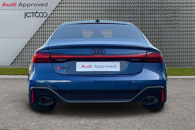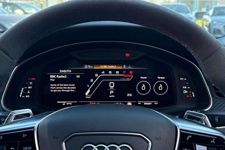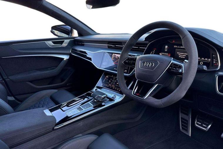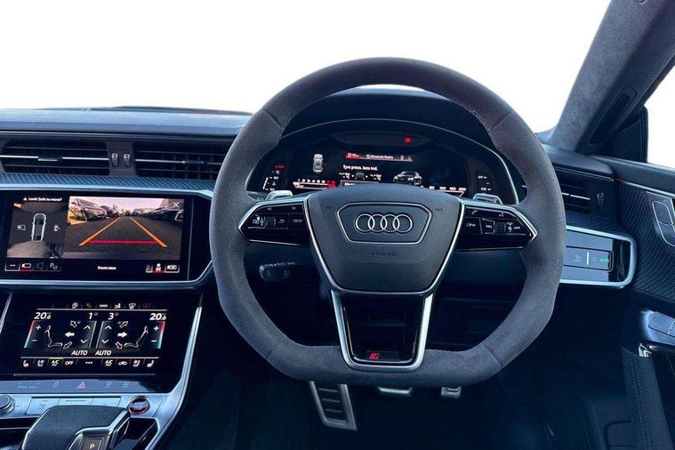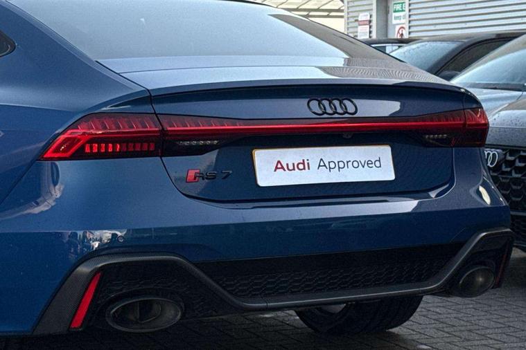 Audi connect safety and service (e-call), Audi connect with Amazon Alexa Integration, Audi drive select with new RS modes, Audi smartphone interface including application store, Audi virtual cockpit plus with 12.3" screen and three different layout designs, Automatic start/stop system, Bluetooth interface, Dynamic all wheel steering, Head up Display, Lane departure warning system, MMI navigation with MMI touch + twin touch screens 10.1" and 8.6" with haptic and acoustic feedback, Operating buttons in black, glass look with haptic feedback including extended aluminium look, Power operated tailgate, Surround view camera system, Voice control system, 48V Mild hybrid technology, 73 litre fuel tank, Quattro sports differential, Speed limiter 174mph, Audi music interface, Auxiliary input socket, Bang & Olufsen 3D Premium Sound System, DAB digital radio module, Black window trims, Frameless auto dimming interior rear view mirror, Front and rear electric windows, HD Matrix LED headlights with Audi laser light with dynamic light design and dynamic turn signal, Headlight washers, Illuminated door sill trims with RS lettering, LED 3rd brake light, LED daytime running lights, LED rear combination lamps with dynamic light design and dynamic turn signal, Power folding, adjustable, auto dimming, heated with memory function door mirrors + integrated LED side indicators, kerb view function passenger side, Privacy glass with rear/side windows and acoustic glazing side windows, Radiator grille in honeycomb structure, large front air inlets and rear diffuser in gloss black, Rain and light sensors, Rear boot spoiler (Electrically extendable depending on speed), Rear side wing doors, Rear window sunscreen, Rear wiper, RS front bumper with air inlets on both side, RS sport exhaust system, Towbar preparation, Variable front intermittent wipers, 3 bench rear seats in 2nd row, 4 zone deluxe automatic climate control, 4-way electric lumbar support, Audi phone box light, Electric adjustable steering column, Electrically adjustable front seats - driver seat with memory, Entry LED with RS Performance projection (Audi Beam) in front and rear, Front and rear head restraints, Front centre armrest, Front seat ventilation, Heated front seats, ISOFIX and Top Tether child seat mounting for the outer rear seats, ISOFIX child seat mounting and Top Tether with front passenger airbag deactivation, Jack and tool kit, RS sports seat plus, Single front passenger seat, Stainless steel footrest and pedals, Air quality package - RS7, Ambient lighting pack plus - RS7, Park assist pack with park assist plus - RS7, Storage pack - RS7, 3 point seatbelts on all rear seats, ABS, Airbags - Front side, front and rear including head, ASR traction control, Audi pre-sense front, Direct tyre pressure monitoring system, EDL, Electromechanical parking brake, Electronic stability control, ESP, Extended pedestrian protection measures, High performance braking system, Hill hold assist, Manual child lock in rear doors, Warning triangle and first aid kit, Anti theft alarm with tow away protection, Keyless Go, Remote central locking, Performance tyres, Tyre mobility system,