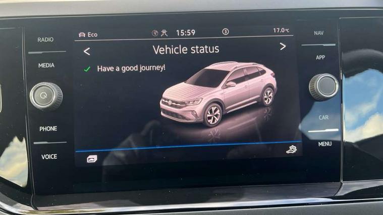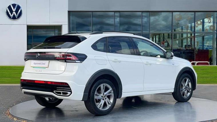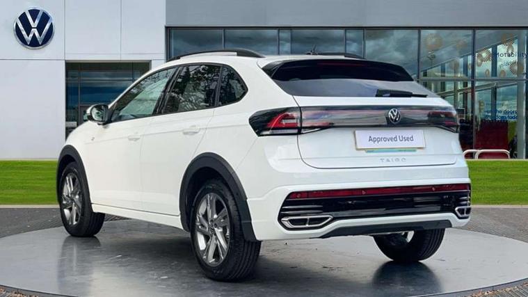 Adaptive cruise control, Advanced driver attention and drowsiness monitor, App-Connect including App-Connect Wireless, Digital cockpit pro - 10.25" high resolution TFT dash display screen with customizable menus and information, Driving profile selection, Dynamic road sign display, e-Call (emergency call), Power Steering, Travel assist including emergency assist, Washer fluid level indicator, Wireless Charging including Bluetooth, Start-stop system with battery regeneration (recuperation - energy recovery during braking), XDS electronic differential lock for improved traction and handling, Digital radio reception (DAB+), Diversity antenna for FM reception, WeConnect plus, Ambient lighting with logo projection, Aspherical driver's exterior mirror, Auto headlights, Body coloured bumpers, Bumpers in R-Line style, Electric windows, External USB type C socket and charging sockets, Front scuff plates with R-Line logo, LED rear combination lamp, LED third brake light, Left convex exterior mirror, Power folding adjustable/heated exterior mirrors and front passenger exterior mirror lowering function, Rear fog light on one side, reversing light on both sides, Rear side wing doors, Rear wash/wipe with intermittent wipe setting, 12V socket in centre console, 2 front reading lights, 3 rear head restraints, 3 seat bench in 2nd row, Air care climatronic air conditoning system with active combination filter and 2-zone temperature control, Black carpets, Black roof lining, Child seat anchor for child seat system i-Size, 2x top tether and child seat anchor in front on front passenger side, Chrome bezel for instrument cluster, vents, door handles + gear shift, Driver and front passenger seat height adjustment, Front + rear carpet mats, Front centre armrest, Front footwell illumination, Front sports comfort seats, Height and reach adjustable steering wheel, Interior ambient lighting and surround lighting, Karoso artvelours cloth upholstery, Leather trimmed gear knob, Leather wrapped multifunction steering wheel, Luggage compartment floor, Luggage compartment light, Lumbar support for driver's and front passengers seat, Seat covers in grey + titanium black, Single front passenger seat, Split folding backrest with centre armrest and unsplit rear seat bench, Stainless steel pedals, Storage compartment under front seats, Sun visors with illuminated vanity mirrors, Chrome Package - Taigo, Drivers assistance pack - Taigo, Light and Sight pack including High beam assist - Taigo, 2 x 3-point seatbelts/outer rear seats with ECE label, 3-point seat belts in front with pretensioner and height adjustment, 3-point seatbelt for centre rear seat, Adaptive driver and front passenger airbags with passenger airbag deactivation function, Driver and front passenger safety-optimised head restraints, Electronic stability control, Extended and predictive pedestrian/ cyclist protection, Front and rear disc brakes, Front curtain and side airbags with center airbag, Hill start assist, Manual rear child locks, Single tone horn, Tyre pressure loss indicator, Anti-theft alarm system with interior monitoring, backup horn, and towing protection, Grey anodised matte decorative inserts in dash and front door panels, Low rolling resistance tyres,
