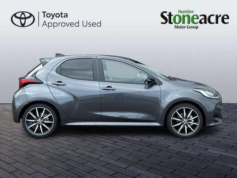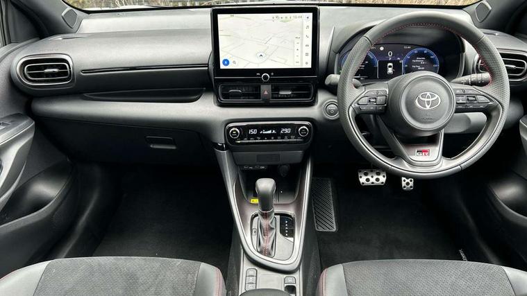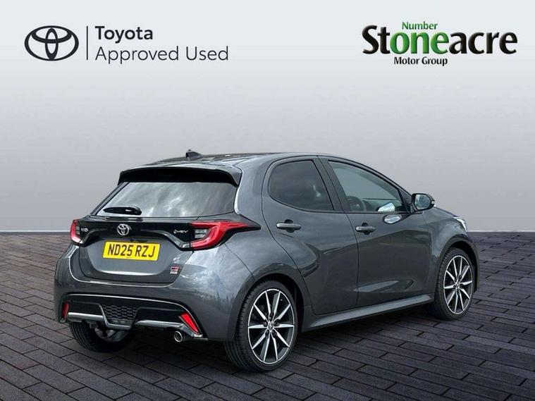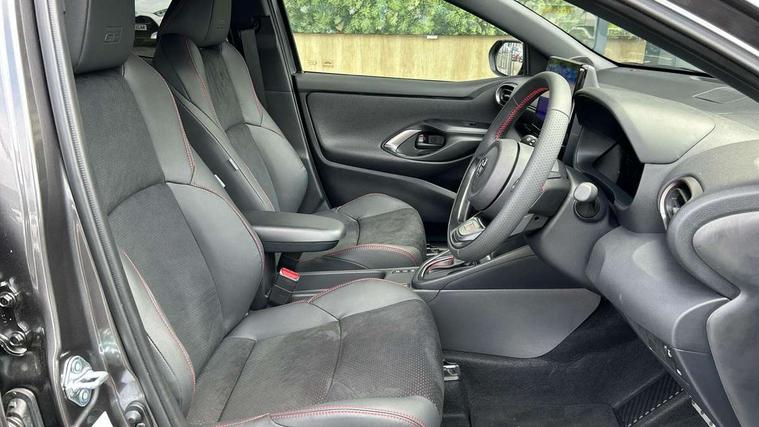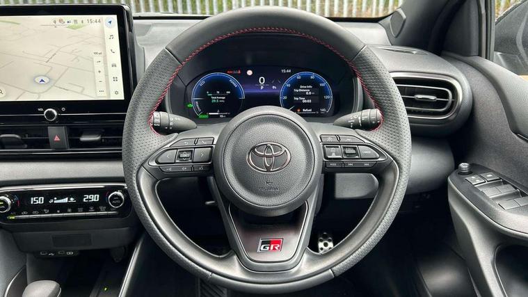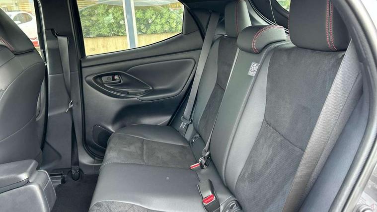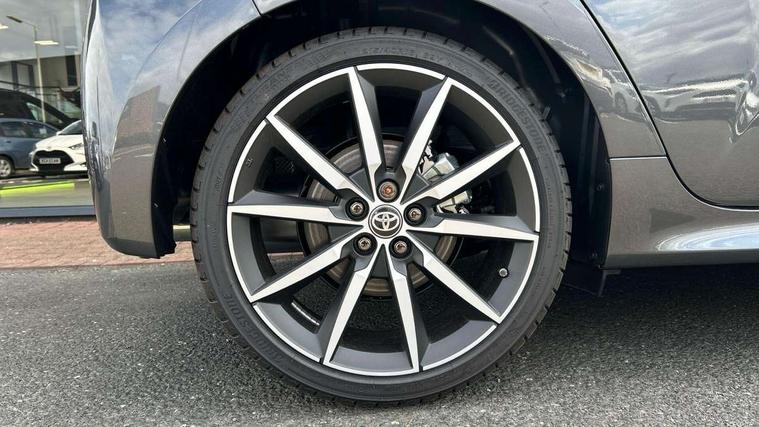12.3" Digital Combimeter, Adaptive cruise control, Adjustable speed limit with speed warning, Bluetooth connectivity, Colour binocular inspired displays with digital speedometer, E-call, Electric power steering, Hybrid energy display, Lane trace assist, Multi information display switches on steering wheel, Pre-collision system (PCS), Reversing camera, Tailgate, Voice recognition, Wireless charger, Vehicle Stability Control (VSC), 10.5" Toyota smart connect multimedia with wireless smartphone integration incl apple car play and cloud Navigation, 6 speakers, Toyota Touch 3 system with DAB radio, USB connection, Acoustic windscreen glass, Auto high beam assist, Auto windscreen wipers, Automatic headlights, Dark chrome lower front grille, Electric adjustable heated door mirrors, Follow me home headlights, Front auto power windows with anti jam protection, LED daytime running lights, LED front fog lights, LED front light guide, LED Headlights, LED High mounted stop lamp, LED Indicators, LED rear light guide, Manual headlight levelling, Painted chequered front grille with hot stamp in mesh design, Rain sensor, Rear auto power windows with anti jam protection, Rear privacy glass, Rear roof spoiler, Rear side wing doors, Rear wiper, Shark fin antenna, Turning signal integrated indicators in door mirrors, Variable front intermittent wipers, 3 adjustable rear headrests, 3 seat bench in 2nd row, 3 spoke leather steering wheel, 60/40 split folding rear seat, Active headrests, Adjustable boot height, Ambient lighting, Black roof lining, Coat hooks in rear grab handles, Cup holders (2 front & door), Data Communication Module (DCM) connected services, Dual zone automatic air conditioning, Front armrest, Front sport seats, Glovebox, GR embossed in headrests, Height adjustable driver's seat, Height adjustable passenger seat, Isofix seat fixing, Leather gearshift, Map pockets on the backs of the front seats, Pollen filter, Shopping bag hooks, Single front passenger seat, Suede upholstery, Tilt/telescopic steering column, 3 point seatbelts on all rear seats, ABS+EBD+Brake assist, Electronic parking brake, Emergency brake light system (EBS), Front passenger airbag on/off switch, Front seatbelt reminder, Hill start assist control (HAC), Rear child proof door locks, Rear seat belt reminder, Supplemental Restraint System (SRS) 8 airbags: Driver & passenger's airbags, dual side curtain airbags, side impact airbags, front centre airbag, Toyota Safety Sense 3 with over the air updates, Tyre pressure warning system, 2x Master key, Alarm/immobiliser, Keyless smart entry with push button start, Remote AC via MyT, Remote locking via MyT, Remote powered central double locking doors, GR Sport interior styling with accents and exterior styling, Piano black interior trim, Soft touch instrument panel, 18" Black Machined-face, 10 spoke alloys wheels, Space saver spare wheel,