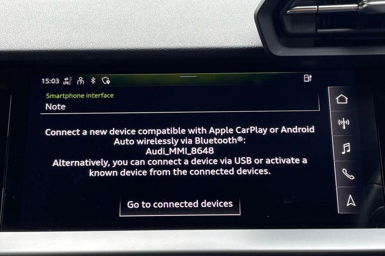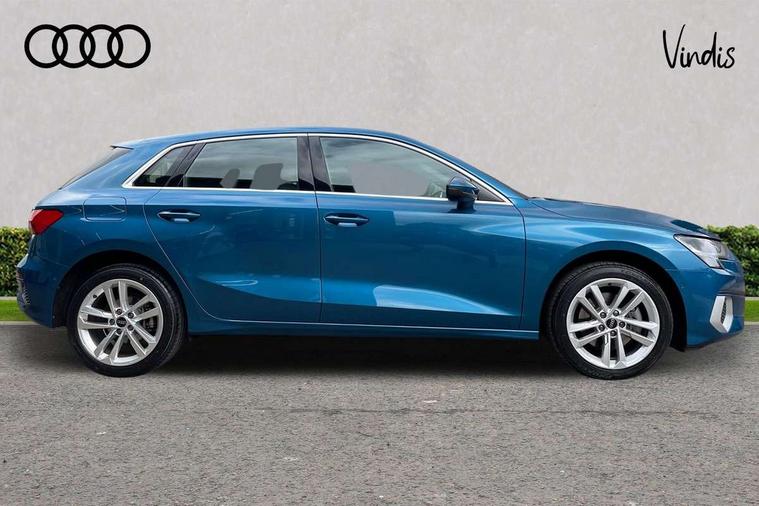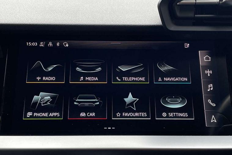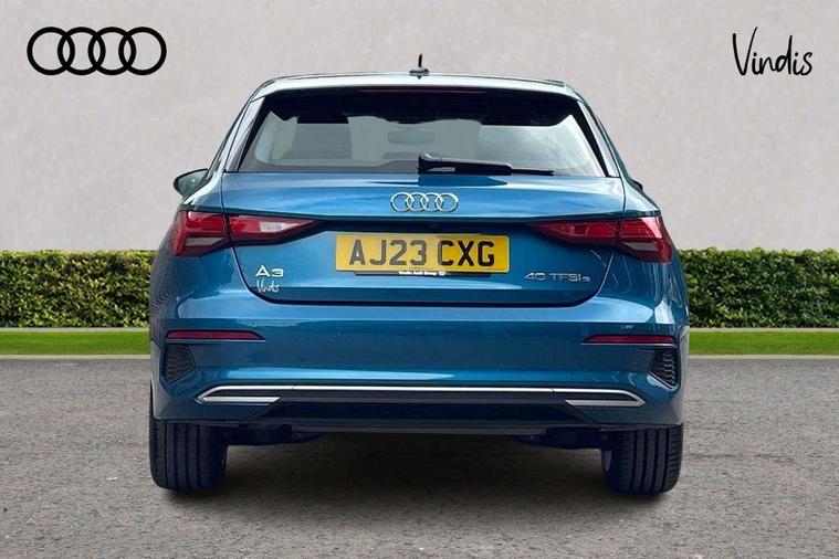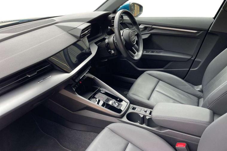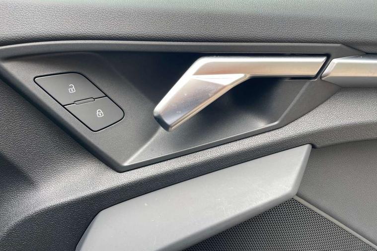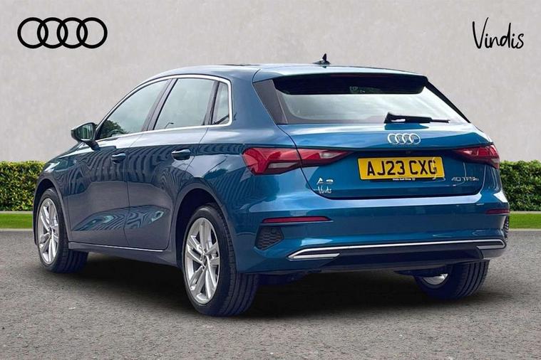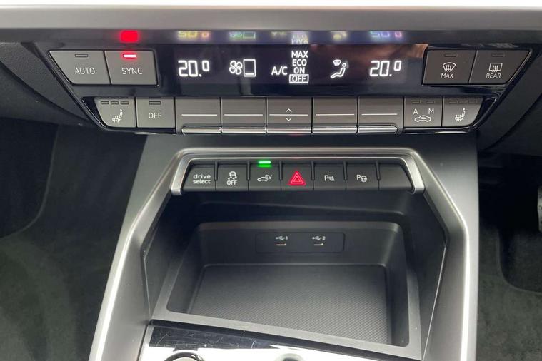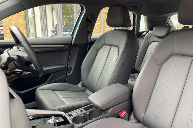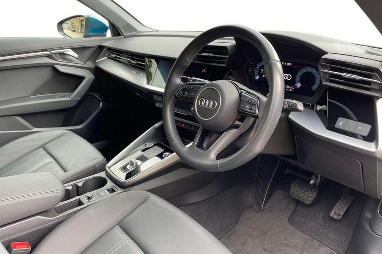 Audi drive select (Auto, Comfort, Dynamic, Efficiency and Individual), Audi smartphone interface, Audi Virtual Cockpit - 10.25" digital and colour instrument cluster, Automatic start/stop system with recuperation, Bluetooth interface, Camera based traffic sign recognition, Collision avoidance assistant, e-Call (emergency call), Electromechanical power speed sensitive steering, Lane departure warning system, MMI Navigation Plus with high resolution 10.1" colour touch screen display, Service indicator, Trip computer, Voice control system with natural language interaction, 3 pin 10 amp domestic charging cable, 3.6 kw On-board charger, Standard suspension, Type 2 mode 3 32 amp charging cable, Type 2 socket for AC charging, 2xUSB-C connection with data and charging functions, 6 passive loudspeakers, DAB Digital radio, 3rd brake light, Acoustic glass windscreen, Aluminium window trim, Auto dimming frameless rear view mirror, Body colour exterior mirrors, Body colour roof spoiler, Electrically adjustable/heated/folding/auto dimming door mirrors with integrated LED indications + kerb view function for passenger side, Front electric windows, LED daytime running lights, LED headlights and halogen rear lights, Light and rain sensors, Rear electric windows, Rear side wing doors, Rear window, rear door windows and rear side windows in clear glass, Rear wiper, 12V socket and storage compartment in front centre console, 3 seat bench in 2nd row, 3 spoke leather multifunction steering wheel with paddle shift, 4 way electrically adjustable lumbar support for driver and front passenger, 60/40 split folding rear seat bench, Dual zone electronic climate control, Front and rear headrests, Front centre armrest, Front door sill trims with aluminium inlay, Front/rear floor mats, Height and reach adjustable steering wheel, Interior lighting - Front and rear roof module including reading lights, glove compartment light and right hand side, Interior lighting - glove compartment light and right hand side, Luggage compartment floor covering, Manual boot compartment lid, Manually adjustable front seats, Routine cloth upholstery with front sports seats, Seat side bolsters, Single front passenger seat, Steel grey cloth headlining, Aluminium interior elements pack - A3 Sportback, LED interior lighting pack - A3 Sportback, Sport styling pack - A3 Sportback, 3x3 point rear seat belts, Driver and front passenger airbag with passenger airbag deactivation, Electronic Stabilisation Control (ESC) including ABS, ASR and EDL, First aid kit with warning triangle and 2 safety vests, Front side airbags with head airbags and interaction airbag, Pre-sense front with pedestrian and cyclist detection, Seatbelt monitoring, Tyre pressure loss indicator, Anti theft alarm, Anti-theft wheel bolts, Electronically operated child lock, Immobiliser, Remote control central locking, Inlays with silk effect paint in platinum grey, Tool kit, Tyre repair kit,