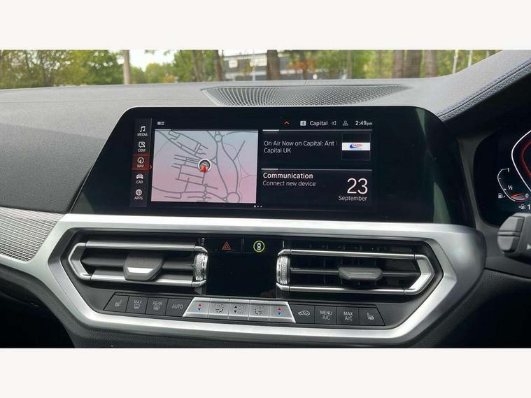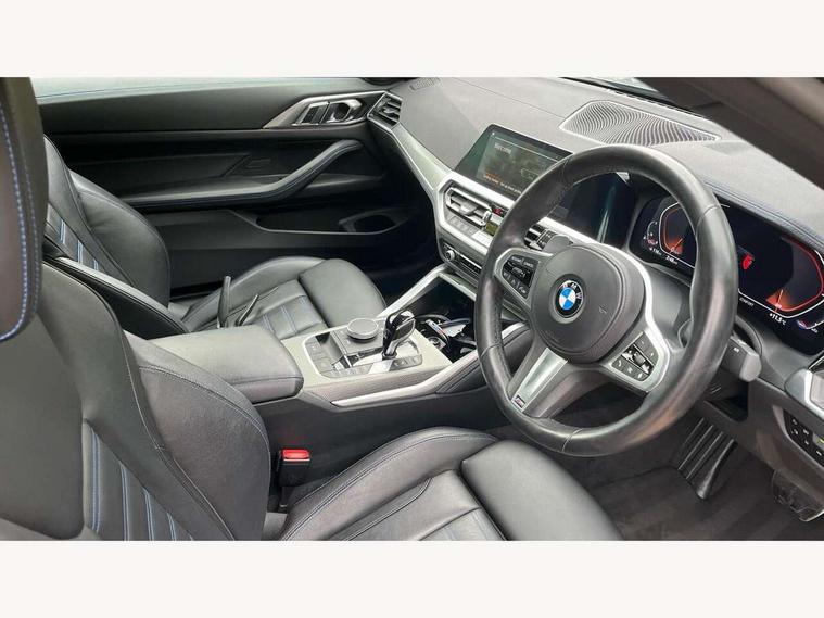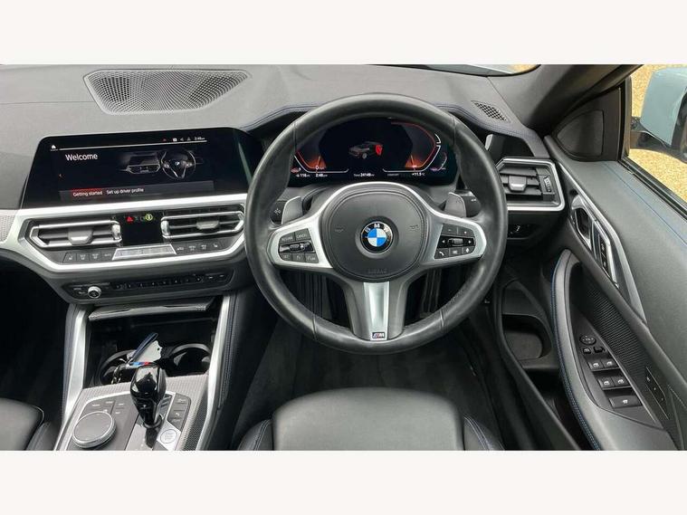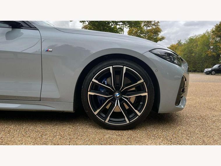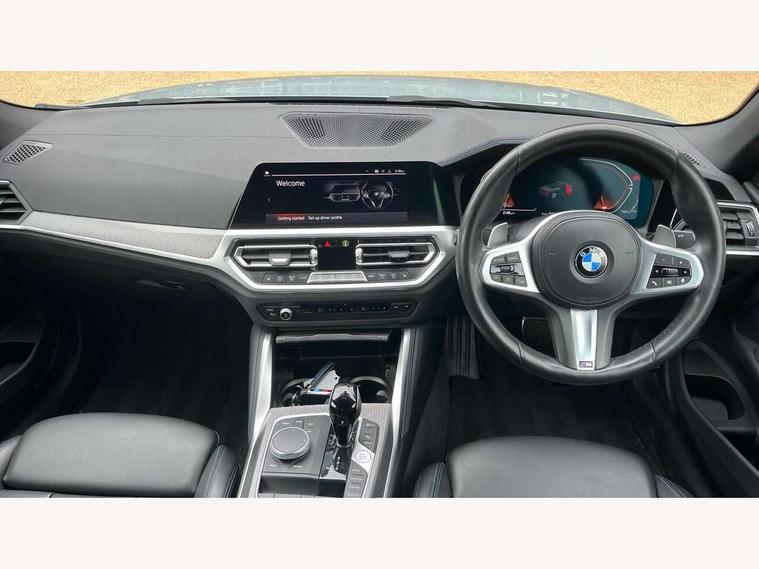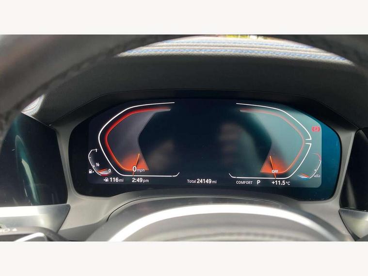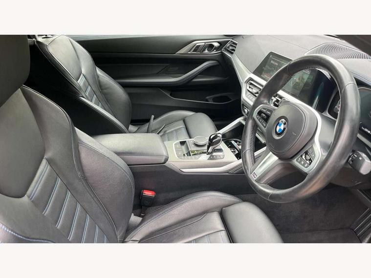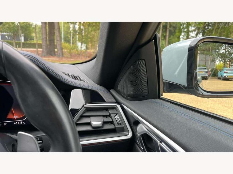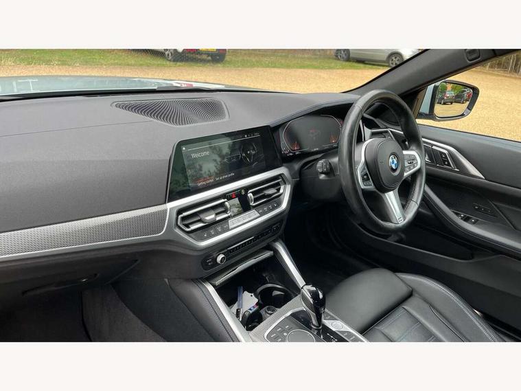 Active guard plus, Attentiveness assist, Auto start-stop, BMW ConnectedDrive online services, BMW iDrive controller on centre console, BMW Live Cockpit Professional Nav with 12.3" instrument display + 10.25" display, Intelligent Voice Assist, BMW OS 7, HDD, 2USB, 4G LTE connect, BMW service history, BMW Teleservices, Brake pad wear indicator in front and rear, Check Control warning system for monitoring of lights and door/luggage compartment open warning, Condition based service, Cruise control with brake assist, Electric power steering with Servotronic steering optimised at all speed ranges, Gearshift time display in manual mode, Instrument cluster with speedometer with mph readout, tachometer, fuel gauge and oil temperature gauge, Integrated owners handbook, Oil sensor for level and grade, warning by check control system, On board computer - average speed, fuel consumption, outside temp display with acoustic warning, clock/date, service interval, odometer/trip meter, Optimum shift indicator, Variable sport steering, 8 speed automatic steptronic transmission with gearshift paddles, Balanced 50/50 weight distribution, Double VANOS, Drive performance control - ECO PRO, comfort and sport modes, High precision injection, Low centre of gravity, M sport suspension, Petrol Particulate Filter, Stroke dependent dampers, VALVETRONIC engine management, DAB tuner, Electronic service booklet, Acoustic glazing, Automatic headlight beam throw control with load dependent regulating reaction, dynamic compensation of braking dive and acceleration squat, Automatic windscreen wipers and automatic headlight, Automatically dimming electrochromatic rear view mirror, BMW emblem on engine compartment lid and tailgate, BMW kidney grille with mesh grille front side of the nuggets in matt aluminium and frame in chrome high gloss, Body colour fuel filler flap, Body colour roof fin, Brushed aluminium inserts in the front door sill finishers with BMW designation, Dynamic brake lights, Electric windows - front and rear, with open/close fingertip control, anti trap facility and comfort closing function all round, Exhaust tailpipe - split left and right, Exterior mirrors - electrically folding with anti-dazzle, Fading support, Follow me home headlights, Front and rear bumper system, Front apron plastic in body colour, Green tinted heat protection glazing, High gloss shadow line exterior trim, Illuminated bow type door handles in body colour drivers side with door lock, Interior rear view electrochromatic mirror with automatic anti dazzle function, LED daytime running lights, LED front fog lights, Licence plate panel integrated into front bumper and tailgate, Lightweight engineering, M designation on front side panels, left and right, Model designation on right side of tailgate, One piece front bumper cover including towing eye cover in body colour, Preparation for high beam assistant, Rear boot, Reversing light, Side frame decorative moulding black matt, Third brake light, Two part LED tailights in L-shape with components in smoked glass, brake light, LED turn indicator and rear fog light, Visible VIN plate, Welcome lights in interior and door handle area, Widened track and increased camber values for max transverse dynamics, agility and steering precision, Window recess cover black high gloss, Windscreen wipers with integrated heated washing jets, 12V power socket in front centre console, 2 2nd row folding seats, 2 front cupholder in centre console with clamping elements and matt black inlay, 2 Rear seat headrests, 2nd row centre armrest with built-in cupholders, 3 spoke M sport leather multifunction steering wheel, 3 zone automatic air conditioning, 4 pieces lashing eyelets in luggage compartment, Ambient lighting with welcome carpet light, Armrest integrated in front and rear door trim + front centre console armrest, Electric seat adjustment with memory, Four grab handles integrated in roof lining, Front and rear door pockets, Front and rear footwell lights, Front and rear reading lights, Front headrests, Front sport seats, Heated driver and front passenger seats, Height adjustable mechanically and infinitely variable steering column, Illuminated armrest storage compartment, Illuminated glove compartment with separate small compartment, Luggage compartment light, Make-up mirror lights, Single front passenger seat, Storage compartment in rear centre console, Sunvisors with vanity mirrors and ticket pocket, Toolkit located in luggage compartment, USB type - C cable charging function in the rear centre console, Velour front floor mats, Vernasca leather upholstery, Connected professional package - 4 Series, M sport exterior styling pack - 4 Series, Park assist pack - 4 Series, 2 x 3-point rear seatbelts, Battery safety cut-off, BMW emergency call, Brake energy regeneration, Braking pre-tensioning, Child proof rear door locking, Coasting in idle in ECO PRO mode, Cornering brake control (CBC), Crash sensor activating of airbags, Unlocking doors, hazard warning lights, fuel cut off, interior lighting+activation of safety battery terminal clamp, Driver and front passenger side airbags, integrated in the door side seat backrest bolsters for all seat variants, Driver/Front Passenger airbags, Dry braking, Dynamic brake control, Dynamic stability control + (DSC+) - Anti-lock Braking System (ABS) with brake assist and cornering brake control + Automatic Stability Control (ASC), Dynamic Traction Control - DTC, Electric parking brake including automatic hold function and automatic release of the parking brake when driving off, Electronic differential lock control (EDLC), Front and rear ventilated brake disc, Front passenger manual airbag deactivation, Head airbags for all 4 outer seats, Hill start assistant, Seat belt security check for driver and front passenger, Seat belt with belt stopper, pyrotechnic belt tensioners and belt force limiters, Side impact protection, Tyre pressure monitoring with three level warning strategy, Warn