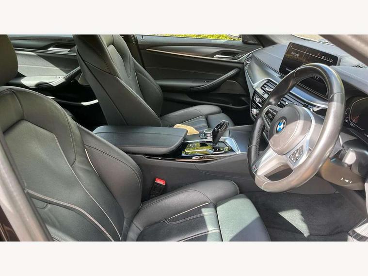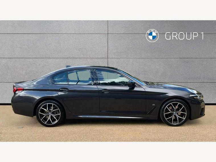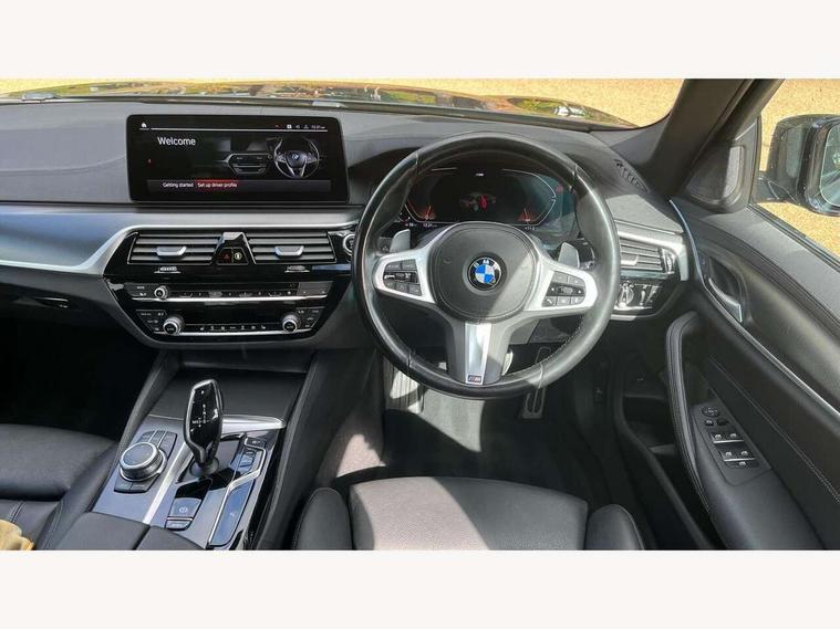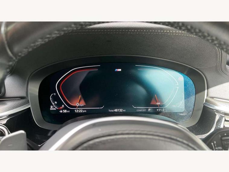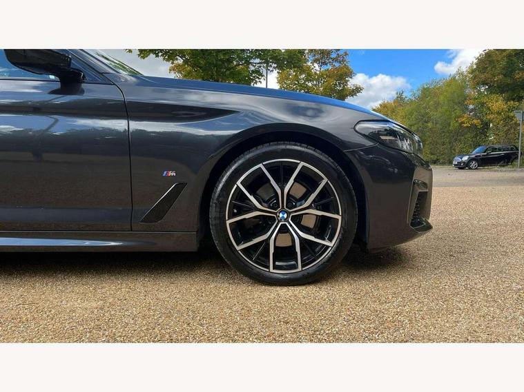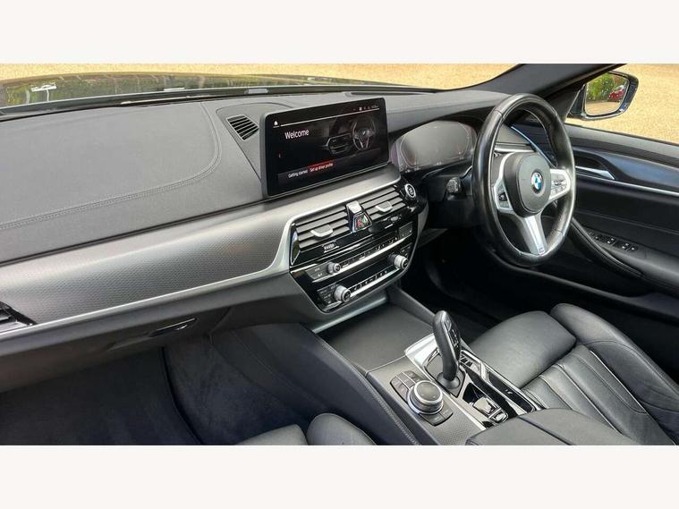 32GB hard disc drive (HDD) memory, Active Guard, Bluetooth connection, BMW ConnectedDrive online services, BMW Live Cockpit Professional sat nav system with 12.3" instrument display and high resolution control display, BMW Teleservices, Brake pad wear indicator, Cruise control with brake assist, Driving experience switch, eCall emergency call system, Electric Power Steering (EPS) with Servotronic, iDrive controller with shortcut buttons, Intelligent emergency call, Multifunctional instrument panel, Oil sensor for level and grade, On board computer inc. average speed, fuel consumption, liquid crystal Info display, journey computer, outside temperature display, personal profile, On-board diagnosis - OBD, Powered by Operating System 7.0, Service interval indicator, Speed limiting function, Stop/start button, 48V Mild hybrid technology, Diesel particulate filter, Drive performance control with ECO PRO comfort + sport mode, Engine cover with twin turbo designation, M sport suspension, Steptronic sport transmission with gearshift paddle switches on steering wheel, DAB Digital radio, Favourite buttons, Acoustic glazing, All round anti-corrosion system, Automatic windscreen wipers and automatic headlight, Automatically dimming rear view mirror, BMW Individual high gloss shadow line includes exterior mirror frame, window frame surround, B pillar finish, air breather in high gloss black, Body colour door handles, Body coloured bumpers, Door handle illumination, Dynamic brake lights with LED technology, Electric front and rear windows with fingertip open/close + anti-trap facility and comfort closing function, Electrically adjustable and heated exterior mirrors includes integrated direction indicators and automatic parking function, Folding exterior side mirror with auto- dimming, Follow me home headlight function, Heated windscreen washer jets, High gloss black active air stream kidney grille, LED daytime running lights, LED Headlights, LED third brake light, M designation on front side panels, left and right in chrome, M Sport exterior styling, Preparation for high beam assistant, Rear boot, Rear side wing doors, Trapezoidal visible exhaust tailpipes, 12V power socket in front and rear, 3 seat bench in 2nd row, Armrest - front and rear integrated door trim, centre console includes storage compartment, rear centre includes 2 cupholders, Child seat ISOFIX attachment with rear outer seats includes top tether, Cup holders (2 front and 2 rear), Front and rear footwell lights, Front reading lights, Height and length adjustable steering column and activation via lateral lever on the steering column, Lockable glove compartment with light, M door sill finishers, M specific pedals, M specific velour floor mats, Multifunction controls for leather steering wheel, Rear headrests, Single front passenger seat, Three spoke sport M leather steering wheel, Ambient lighting pack - 5 Series, Connected package professional - 5 Series, M Aerodynamic pack - 5 Series, Parking assistant pack - 5 Series, Airbags - driver/front passenger, rear and side, first and second row seats head airbags, front passenger seat airbag deactivation, Anti-lock braking system (ABS), Automatic Stability Control (ASC), Brake assist function, Brake energy regeneration, Cornering brake control (CBC), Crash sensor activating central locking release, hazard warning lights, fuel cut off and interior lighting, Deformation zones - front and rear with door reinforcements and bumpers up to 2.5 mph, DSC - Dynamic Stability Control, Dynamic brake control, Dynamic Traction Control - DTC, Electromechanical parking brake with automatic drive away release and auto hold function, Electronic brake force distribution, Engine drag torque control, Front and rear brake discs with interior ventilation, Front head restraints with anti-whiplash, Hill start assist, Mechanical child proof lock on rear doors, Passive protection for pedestrians, Rear door child safety locks, Side impact protection, Three point seat belts for all four seats, Two tone horn, Tyre pressure indicator, Warning triangle and first aid kit, Alarm system (Thatcham 1) with remote control and electronic engine immobiliser, Locking wheel bolts,