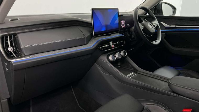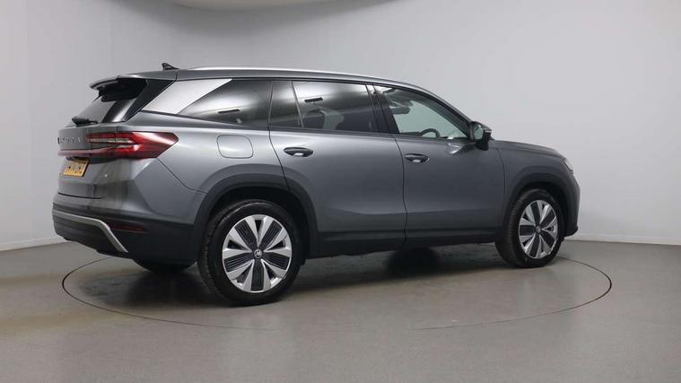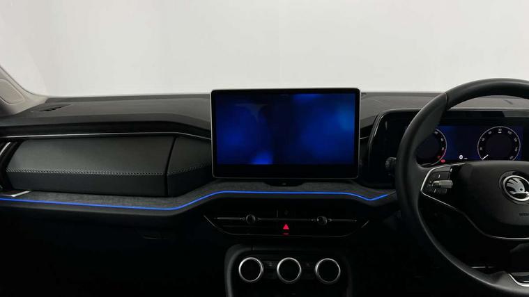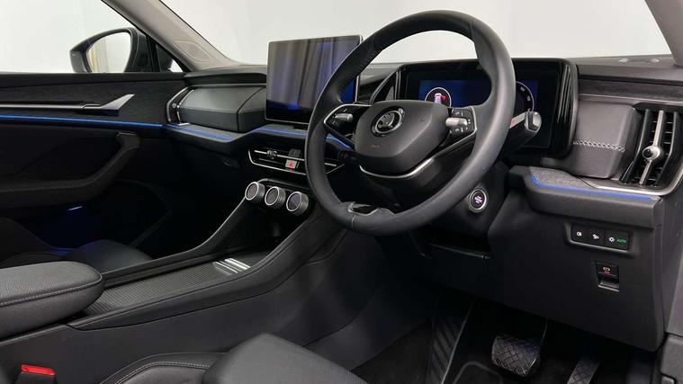 13" satellite navigation touchscreen display, Blind spot detection with door exit warning, Bluetooth system, ChatGPT functionality, Drive mode selector, Driver alert with fatigue sensor, Driver drowsiness alert system, Dry display cleaner, e call+, Front cross traffic assist, Lane assist, PAS, Rear traffic assist, Tailgate unlocking from outside, Traffic sign recognition, USB C Port x 2 in front centre console, Virtual Cockpit - 10.25" digital display, Voice control system, Wireless charging for two smartphones (15W) with cooling function, Wireless SmartLink for Apple CarPlay and Android Auto, 32A charging cable, Stop/start function, 2x USB-C in the rear, DAB Digital radio, Aero front windscreen wipers with intermittent function, Auto dimming rear view mirror, AWL (all weather lighting) and all weather light with cornering function, Black wheel arch surrounds, Body colour bumpers, Body colour door mirrors and handles, Cornering light and poor weather light, Electric folding /adjustable/separted heated/folding door mirrors, auto dimming with boarding sports and memory function, Electric front and rear windows, Exterior black decorative trims, Heat insulating glass in windshield, Heated rear window, Ice scraper in fuel tank cap, Invisible tailpipe, LED daytime running lights, LED rear fog light, LED third brake light in rear spoiler, Light assistant with automatic headlight control and coming home feature, Logo projection in door mirrors, Privacy glass, Rear side wing doors, Rear spoiler, Rear window wiper, Red decorative strip between rear LED lights, Safety reflectors on front and rear doors, Window control switches with black trim, Windscreen wipers with rain sensor, Without engine designation, 1.5l bottle holder points in all door, 12V socket in boot, 1x centre rear reading light, 3 configurable smart dials with 32mm coloured display, 3 seat bench in 2nd row, 4 foldable roof handles with rear coat hooks, Ambient interior lighting - Dashboard, front-door stowage compartments, front and rear door panels and footwell lighting, Automatic gear selector on steering wheel, Chrome interior door handles, Driver/front passenger reading lights, Fabric headlining, Fixed bench 40:60:40 split folding backrests, Front and rear floor mats, Front centre armrest with jumbo box storage compartment, cup holder and 12V socket, Front courtesy lights, Height adjustable front headrests, Isofix child seat fittings in outer rear seats and front passenger with top tether, iV badging on boot, Manually adjustable steering column, Pollen filter, Rear centre armrest with cupholders, Rear seat boot backrest release, Retractable luggage compartment cover, Single front passenger seat, Sliding trunk cover, Small Bags on the inner sides of the front backrests, Storage pocket including mobile phone pockets on the backs of the front seats, Sunvisors with illuminated vanity mirrors, Three rear height adjustable headrests, Ticket holder on A Pillar, Tri zone climate control, Umbrella in door panel x1 made from sustainable materials, Upper and lower glovebox with card holder and coin compartment, USB C port by rear view mirror for charging only (15W), Exterior styling pack - Kodiaq, Auto door release and activation of warning lights in the event of an accident, Driver and front passenger airbag with knee airbag and front passenger airbag deactivation, Electric child locks, Electronic parking brake, ESC (incl. ABS+EMD+MSR+ASR+EDL+HBA+DSR+RBS+ESBS+MCB+TSA+XDS), Front assist with braking reaction to vehicles, pedestrians and cyclists, Front disc brakes, Fuel cut off safety device, Height adjustable front 3 point seatbelts + pretensioners, Hill hold control, Junction assist with automatic emergency braking, Rear disc brakes, Safety vest holder in door, Seat belt reminder for all seats, Three point rear seat belts, Two tone horn, Tyre pressure monitor, Anti-theft wheel bolts, Immobiliser, Remote central locking with 2 keys, Breakdown kit,