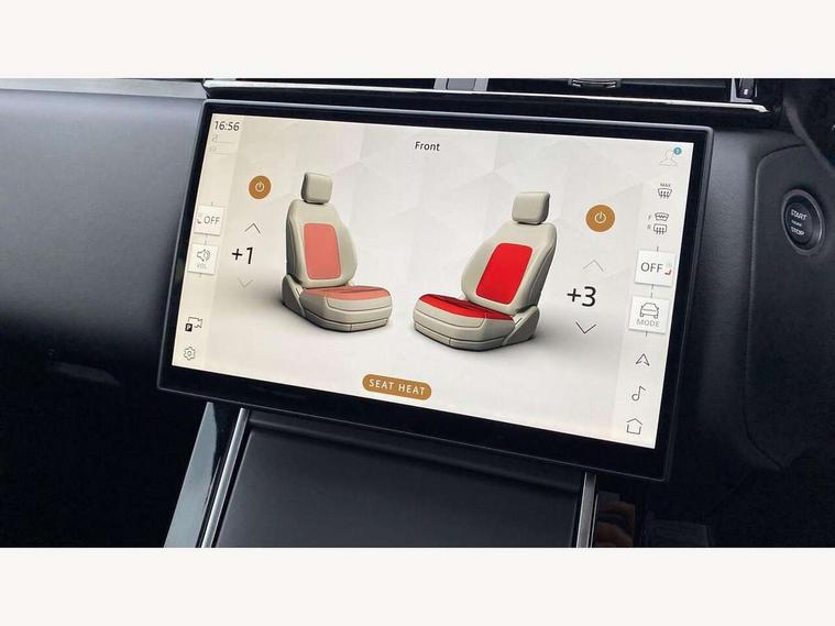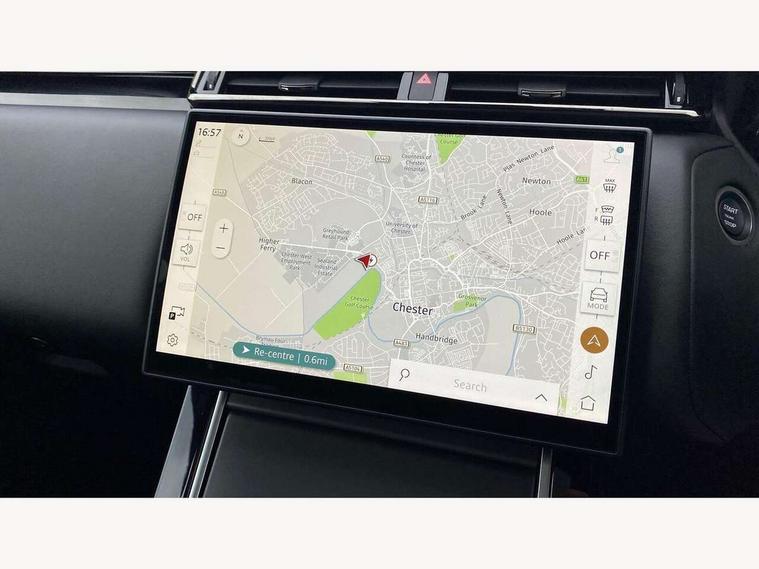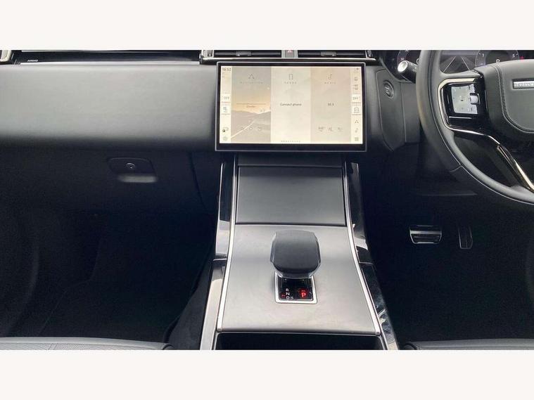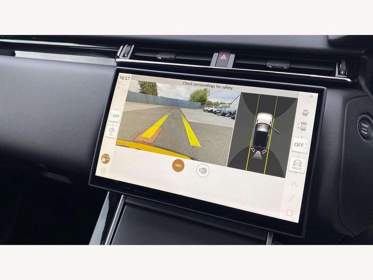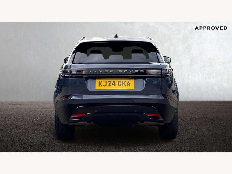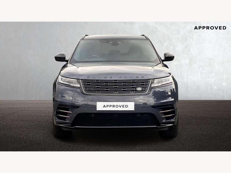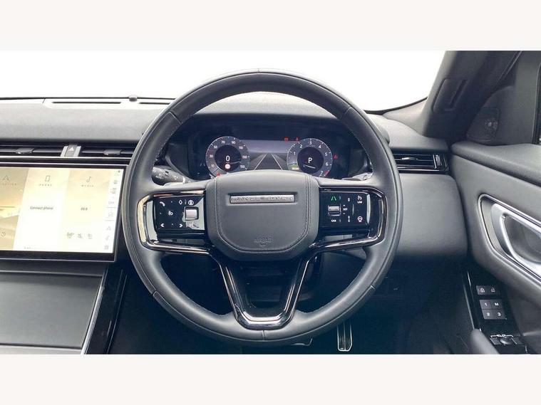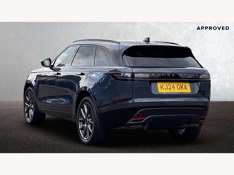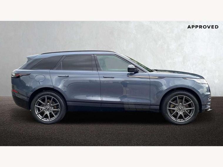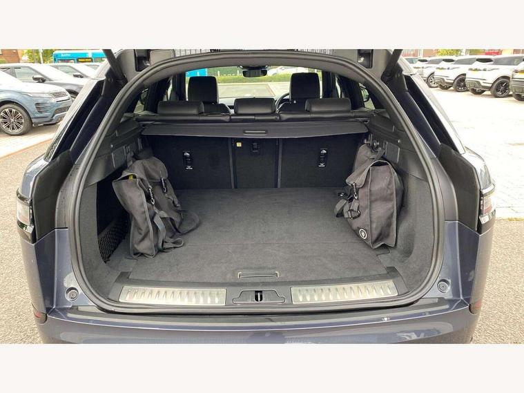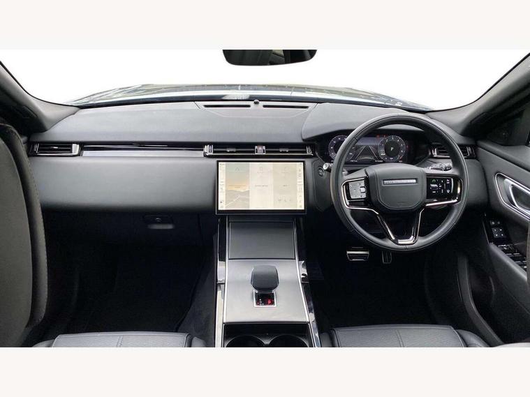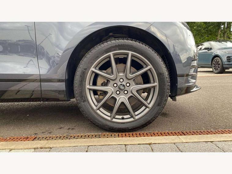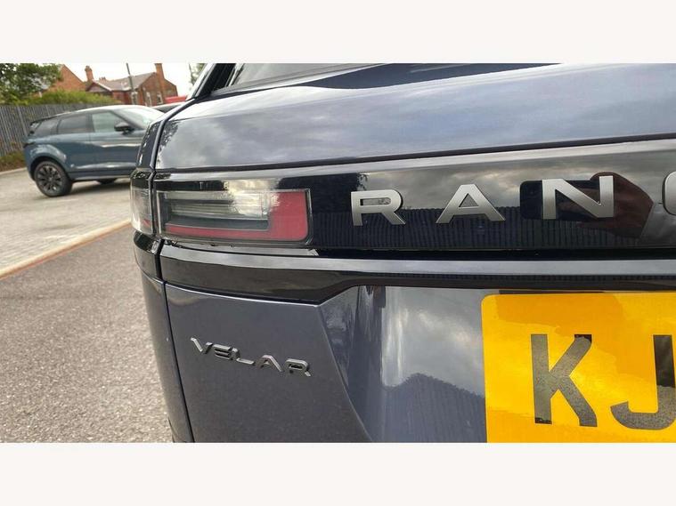 Adaptive cruise control with steering assist, Android Auto, Apple CarPlay, Blind spot assist, Bluetooth connectivity, Brake pad wear indicator warning light, Driver condition monitor, eCall emergency call system, Front and rear parking aid, InControl remote, Land Rover InControl apps, Lane keep assist, Pivi pro with connected navigation, Rear collision monitor, Rear traffic monitor, Service indicator, Speed proportional electronic power assisted steering (EPAS), Traffic sign recognition with adaptive speed limiter, Trip computer, Voice control system, Wireless device charging, 7kw on board charger, 8 speed automatic transmission, AC/DC charging, Adaptive dynamics, All terrain progress control, Coil suspension system, Home charging cable, Open differential with torque vectoring by braking, Public charging cable, Single speed transfer box, DAB radio, Steering wheel mounted controls, 3rd brake light, Acoustic laminated windscreen, Auto dimming interior rear view mirror, Automatic headlamp levelling, Automatic headlights, Body coloured bumpers, Boot protection plate, Electric windows with one touch open/close and anti trap, Flush deployable exterior door handles, Follow me home headlights, Heated rear window with timer, Heated washer jets, Heated windscreen, Metal front tread plates, Metal load space scuff plates, Pixel LED headlights with signature DRL, Power fold, auto-dimming, heated door mirrors with memory and approach lights, Rain sensor windscreen wipers, Rear animated directional indicators, Rear fog lights, Rear side wing doors, Rear wash/wipe, Tailgate/boot lid spoiler, Trailer stability assist, Velar badge, 3 seat bench in 2nd row, Ambient lighting, Bright metal pedals, Carpet mats, Driver/passenger sunvisors with illuminated vanity mirrors, Ebony morzine headlining, Electrically adjustable steering column, Extended leather upgrade, Heated steering wheel, Isofix system on outer rear seats, Loadspace cover, Overhead lighting console, Overhead stowage for sunglasses, Passive front headrests, Rear air vents, Rear centre headrest, Single front passenger seat, Twin front cupholders, Twin sliding front centre armrest, Online pack with data plan - Velar, Power socket pack 2 - Velar, 380mm front brakes and 325mm rear brakes, 3x3 point rear seatbelts, Anti-lock braking system (ABS), Cornering brake control, Curtain airbags, Customer configurable autolock, Door side intrusion beams, Driver airbag, DSC - Dynamic Stability Control, Electronic brake force distribution, Electronic parking brake, Electronic traction control, Emergency braking, Front and rear seatbelt reminder, Hill descent control, Hill launch assist, Low traction launch, Passenger airbag, Power operated child locks, Rear airbags, Roll stability control, Side airbags, Tyre pressure monitoring system (TPMS), Unpainted brake calipers, Global lock and unlock switch on driver door, Immobiliser, Intrusion sensor, Keyless entry, Lock only switch on front passenger door, Locking wheel nuts, Perimetric alarm, Remote central locking, All season tyres,