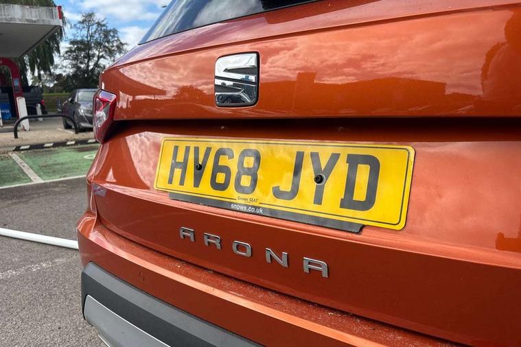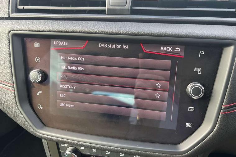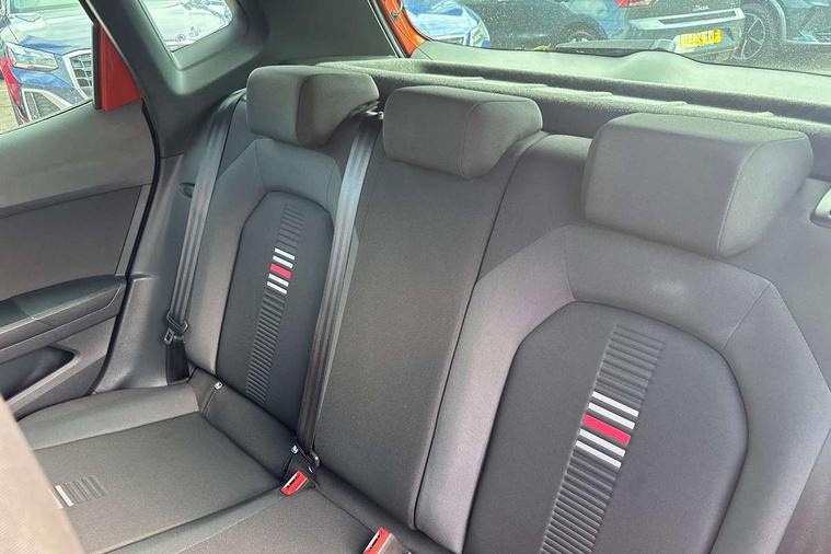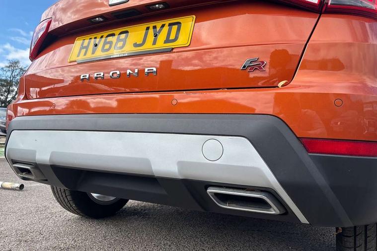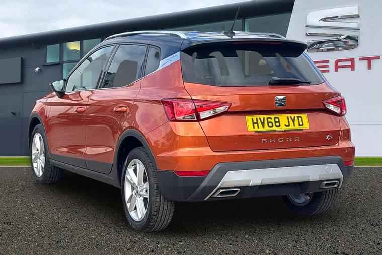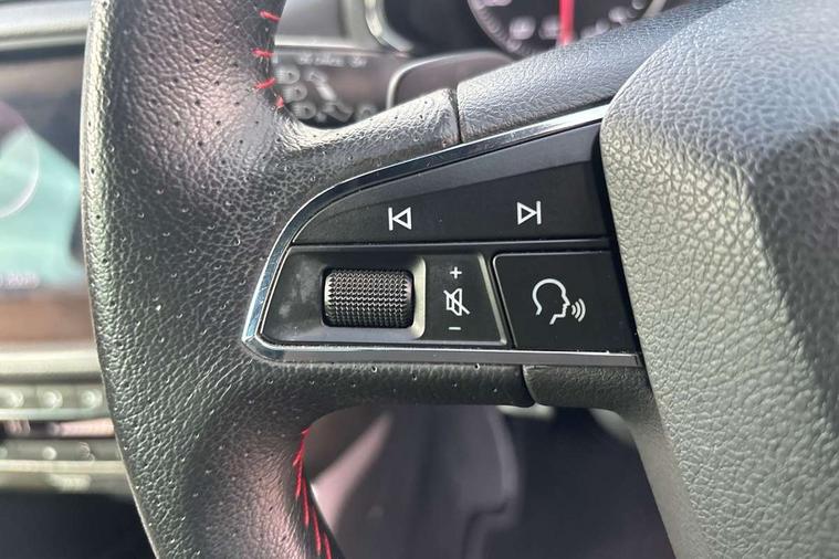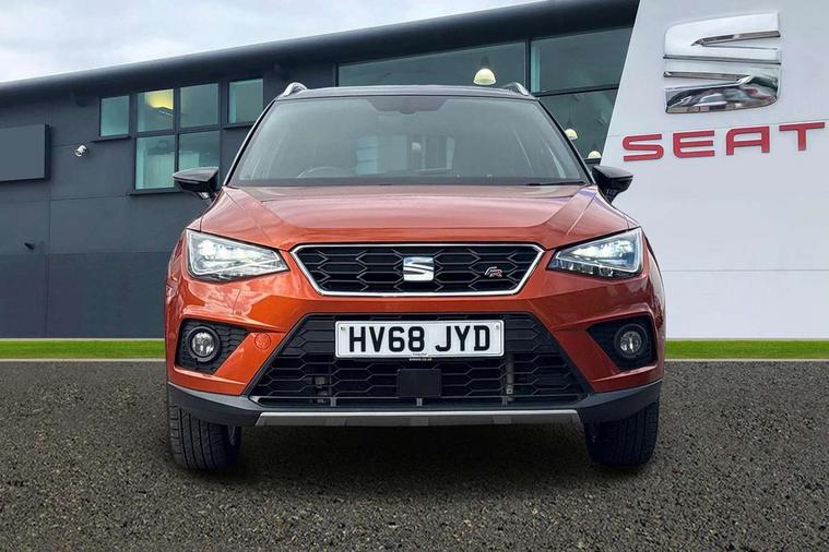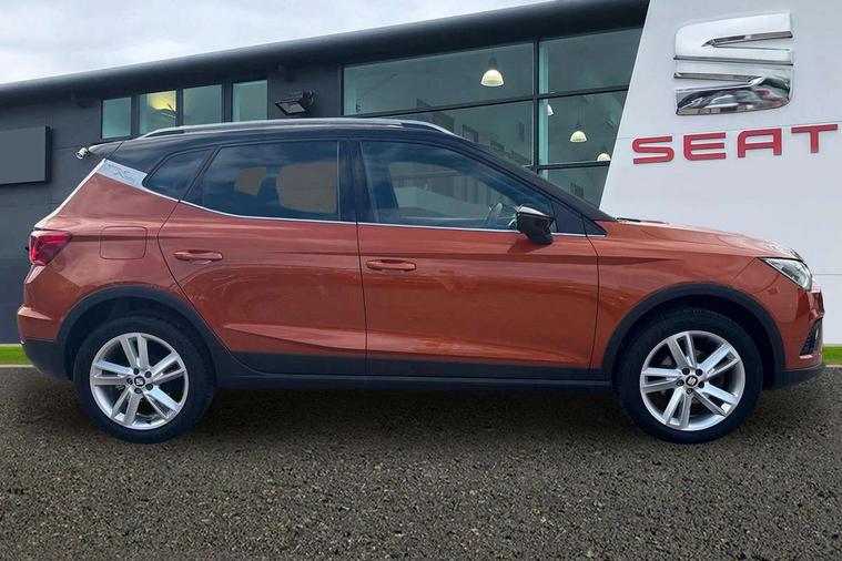 'Lights On' Reminder warning buzzer, Cruise control, Digital clock, Electric speed sensitive power steering, Front assistant collision mitigation, Full Link Smartphone Integration with Mirror Link, Apple Car Play, Google Android Auto, Low fuel warning light, Outside temperature display, Rear parking sensor, RPM counter, SEAT Drive profile, Trip computer, Sports suspension, 6 speakers, Bluetooth interface for hands free and audio streaming, DAB Digital radio, SEAT USB media cable, Steering wheel mounted audio controls, Anti theft roof antenna, Auto dimming interior rear view mirror, Automatic activation of hazard warning lights, Automatic headlights, Body coloured bumpers, Body coloured door handle inserts, Chrome grille surround, Chrome roof rails, Chrome window surround, Coming/leaving home lighting function, Dark tinted rear windows, Electric front/rear windows with one touch/auto up/down, Electrically adjustable and heated door mirrors, Electrically folding wing mirrors, Front fog lights, Full LED headlights, LED daytime running lights, LED licence plate lighting, LED tail lights, Rain sensor windscreen wipers, Rear fog lights, Rear window wash/wipe, Roof colour door mirrors, Twin exhaust pipes, Visible VIN plate, Windshield wiper with intermittent control and potentiometer, 2 cupholders, 3 rear height adjustable headrests, 60/40 split folding rear seat, Active head restraints, Ambient interior lighting, Card holder, Double boot floor, Driver and passenger sunvisors, Driver/front passenger seat height adjustment, Dual zone climate control, Dust/pollen filter, Flat bottomed steering wheel, Footwell ambient lighting, Front courtesy lights, Front reading light, Gear shift indicator, Gearshift paddles on steering wheel, Height/reach adjustable steering column, Illuminated boot, Instrument lighting with brightness control, Isofix attachments on rear seats, Leather handbrake, Leather steering wheel and gear knob, Multi-colour ambient interior lighting, Nora cloth upholstery, Sports seats, Connectivity pack plus - Arona, 3 point seatbelts on all rear seats, ABS+EBA, Child locks on rear doors, Driver/Front Passenger airbags, Electronic stability control, Front and rear seatbelt reminder, Front side/curtain airbags, Height adjustable active front headrests, Hill hold control + Tyre Pressure monitor, Multi-Collision braking, Passenger airbag deactivate switch, Tiredness recognition system, Traction control, 2 folding remote keys with window open/close function, Alarm with back-up horn, Immobiliser, Locking wheel bolts, Remote central locking + deadlocks, Tow away protection, Interior chrome line trim, 17" Dynamic alloy wheels,