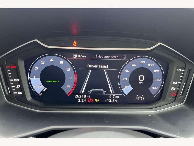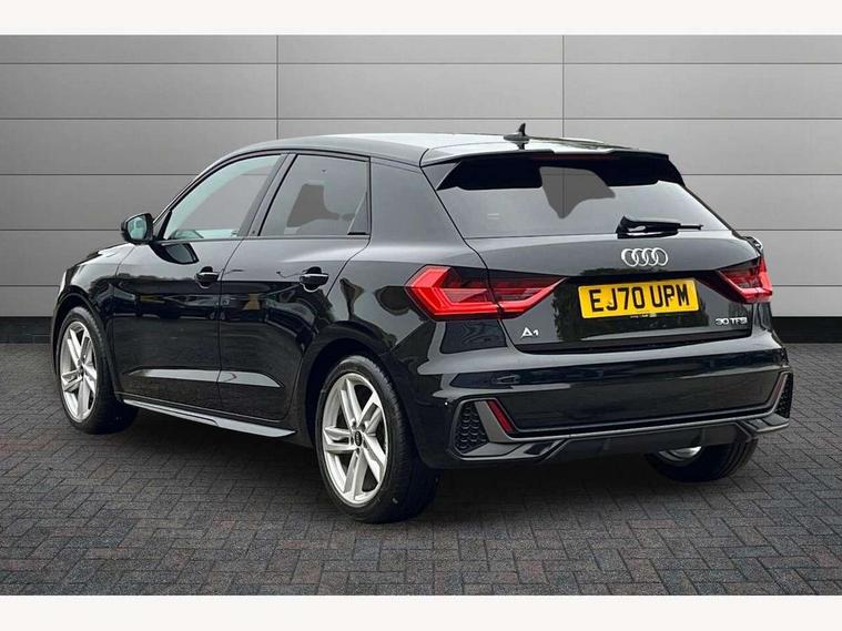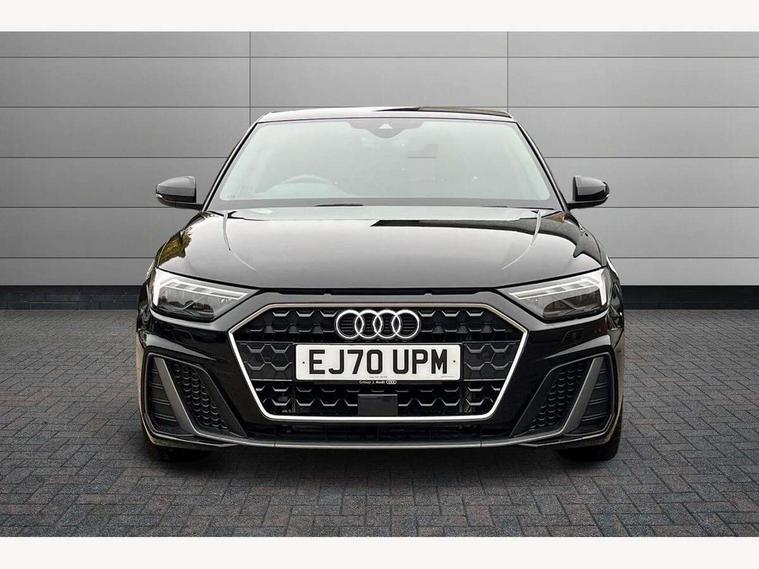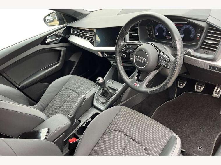 10.25" Digital instrument cluster display classis style instrument dials + speed, odometer, time, outside temperature, telephone menu + fuel level warning, Audi connect safety emergency and service including E-call, Audi drive select - power steering assistance + engine, Audi smartphone interface with connect compatible smartphone via USB directly MMI display + Nav, music, third party apps controlled via MMI controller, Automatic start/stop system, Bluetooth interface, Cruise control, Driver's information system, Electromechanical power steering, Lane departure warning system, Service interval indicator, Speed limiter, Voice control system, Washer fluid level indicator, Sports suspension, 1 x SDXC card reader, 2 x USB type C connection points, DAB Digital radio, MMI radio plus with 8.8" colour MMI display screen and MMI touch, Auto dimming rear view mirror, Body coloured door mirrors, Door sills with aluminium inlays and S Line logo, Electric front and rear windows, Electrically adjustable, heated, folding door mirrors with integrated LED side indicator, Front side air inlets in grained matt black and C frame in titanium black, Heat insulating glass windscreen and side windows, Heated rear windscreen, LED headlights with LED rear lights + dynamic rear indicators + headlight adjustment and high beam, turning light + LED daytime running lights, Radiator grille and rear diffuser in matt titanium black, Radiator protective grille frame in matt aluminium silver, Rain and light sensors, Rear fog lights, Rear wiper, S line badges on front wings, Side front spoiler lips in grained matt black, 12V socket in centre console with two cup holders, 3 rear seats with headrests, 40:60 Split folding rear seat or folded fully, Black cloth headlining, Driver and passenger seat with manual height adjust with forward and backwards adjustment, Front and rear black floor mats with contrast stitching in fine silver, Front head restraints, Height and reach adjustable steering wheel, ISOFIX child seat mounting for front passenger and outer rear seats including top tether attachment point of outer rear seats, Leather gear knob with aluminium trim, Luggage compartment light with front and rear reading lights, Manually adjustable lumbar support in front seats, Stainless steel pedals, LED interior lighting pack - A1, Luggage compartment pack - A1, S line exterior styling pack - A1 Sportback, 3x3 point rear seatbelts, Audi pre-sense front with pedestrain and cyclist recognition, Brake assist function, Driver and front passenger airbag with front side and head airbags, Electronic Stability Control including ABS, EBD, ASR and EDL, Front and rear seatbelt reminder, Front passenger airbag deactivation switch, Hill hold assist, Seatbelt height adjustment for front seats, Seatbelt monitoring, Tyre pressure warning light, Warning triangle and first aid kit, Anti theft alarm, Anti theft wheel bolts and loose wheel warning, Immobiliser, Remote central locking with 2 foldaway keys, Aluminium trim for control switches, air vents and digital instrument cluster, Silver grey inlays polygon structure in diamond paint finish, Structured grey accent areas including air vents, door handle recesses and centre console in quartz paint finish,
