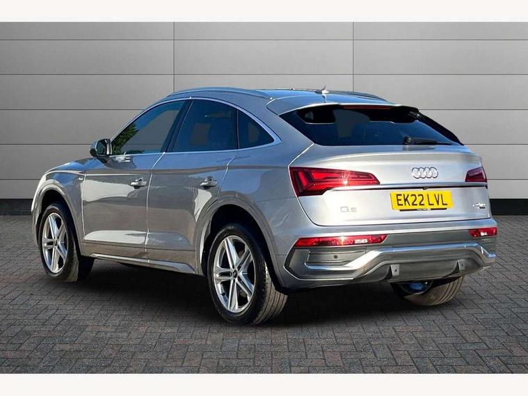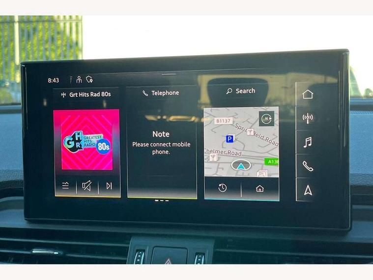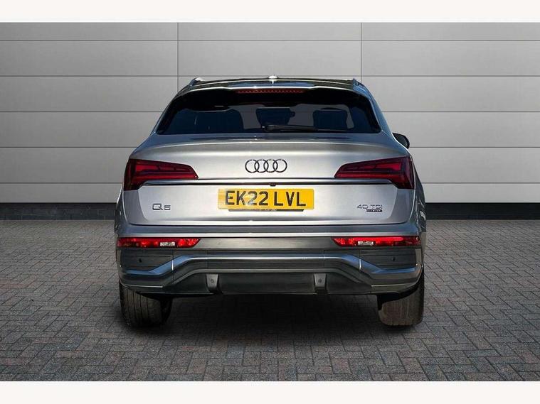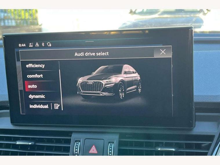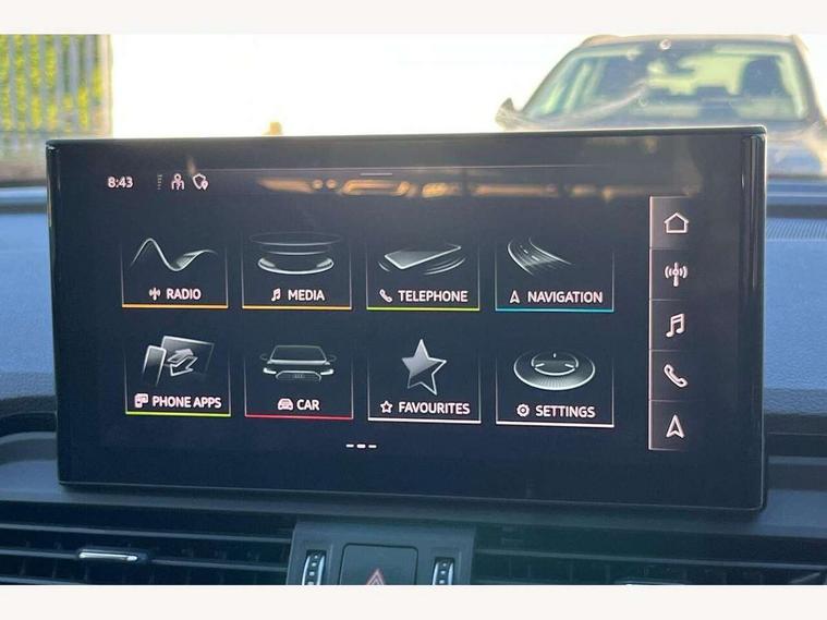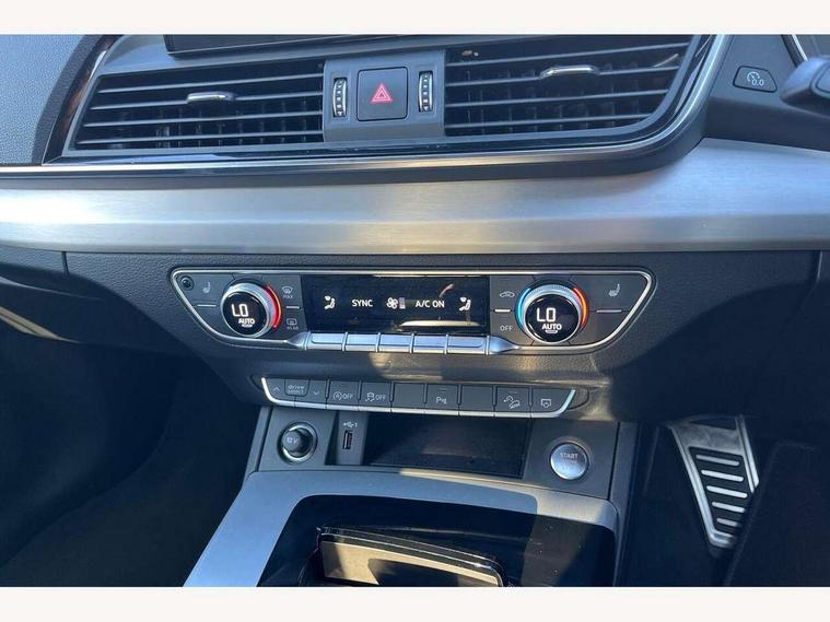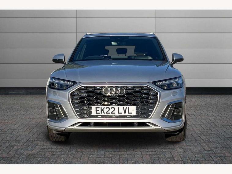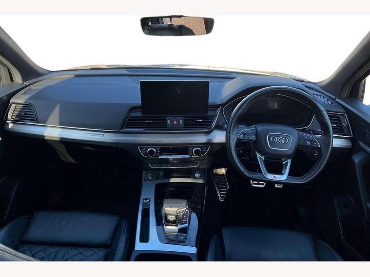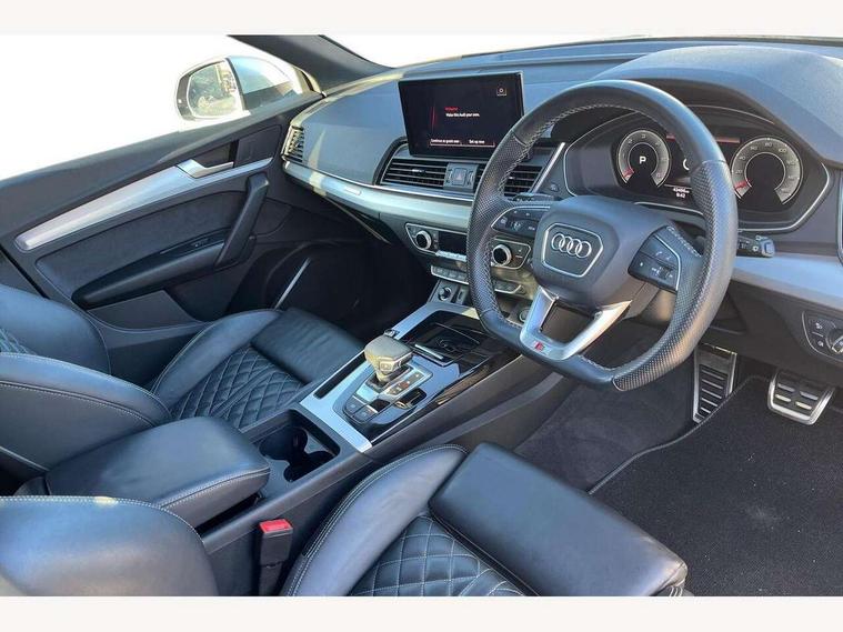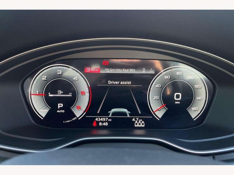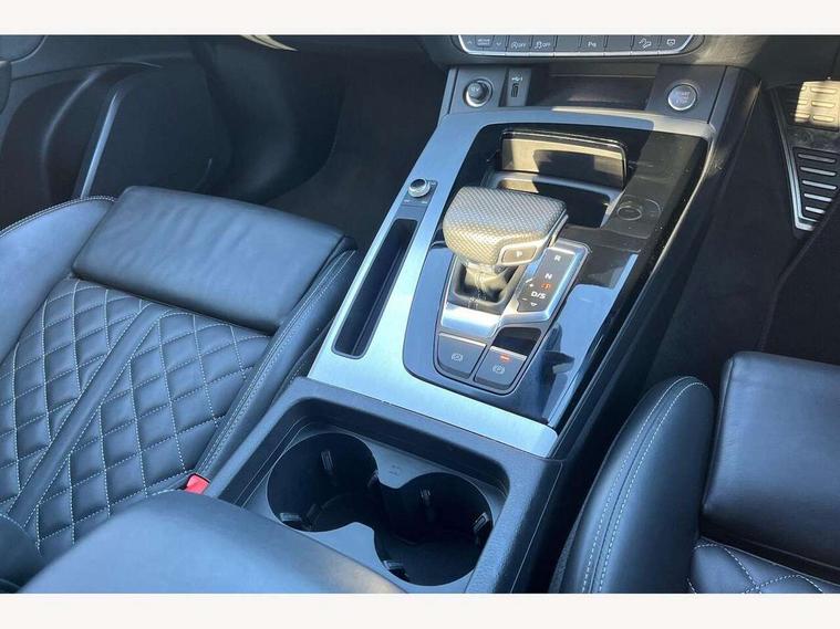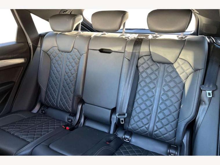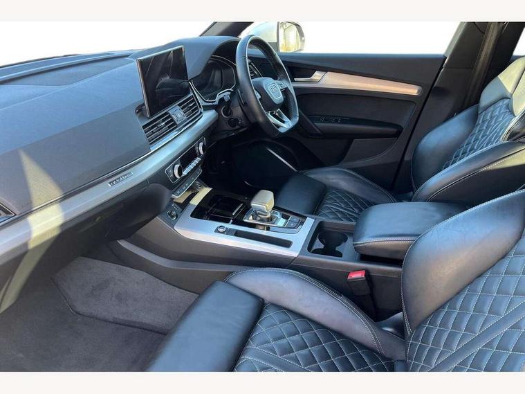 Audi connect safety and service (e-call), Audi connect with Amazon Alexa Integration, Audi drive select, Audi virtual cockpit plus with 12.3" screen and three different layout designs, Audi wireless smartphone interface, Automatic start-stop system with coasting functionality and efficiency programme, Bluetooth interface, Electro - mechanical power assisted steering, MMI navigation plus with 10.1" touch screen, Power tailgate, Reversing camera, Service interval indicator, Voice control system with Audi hotword activation "Hey Audi", Diesel particulate filter, Quattro on demand, S line sports suspension, DAB Digital radio, Acoustic windscreen, Aluminium roof rails, Audi matrix LED headlights with dynamic front and rear indicators, Auto dimming door mirrors, Auto dimming rear view mirror, Automatic headlights and windscreen wipers, Body colour door mirrors, Body colour rear diffuser with matt aluminium silver surrounds, Body colour underbody protection, Chrome plated exhaust trims, Daytime running lights, Door sills in Selenite silver, Electric adjustable/heated/folding door mirrors, Front air inlet surrounds in aluminium, Front and rear electric windows, Front radiator grille in honeycomb design, Headlight washers, High level LED brake light, Lower bumpers painted in contrast Manhattan grey, Rear chrome trim strip below lights, Rear privacy glass and rear side windows, Rear side wing doors, Rear spoiler, Rear wiper, Roof bars, S Line badges on the front wings, S Line front and rear bumpers, S Line side skirts, 2 x USB charging port with aux input socket, 3 rear headrests, 40:20:40 split folding 3 rear bench seat in 2nd row with rear centre armrest, Black cloth headlining, Comfort front centre armrest, Contrast stitching on seats, steering wheel and gear lever gaiter, Deluxe 3 zone electronic climate control, Front head restraints, Front/rear floor mats, Gear lever in black leather, Heated front seats, Height/reach adjustable steering column, Illuminated door sill trims with S logo, ISOFIX child seat mounting and top tether, Manual seat adjustment with 4-way electric lumbar support, Removable luggage compartment floor, Single front passenger seat, Stainless steel pedals, Sunvisors with vanity mirrors, Trunk roller cover, High gloss pack - Q5, LED interior light pack - Q5, 3 point seatbelts on all seats, 6 airbags - Driver, front passenger, curtain and side airbags, Electrically operated child locks on rear doors, Electromechanical parking brake, Electronic stabilisation control including ABS, ASR and EDL, Front passenger airbag deactivation, Hill descent control, Hill hold assist, Multi collision brake assist, Pop-up bonnet for pedestrian protection, Pre sense city, Seat belt force limiter, Seatbelt monitoring, Tyre pressure warning, Warning triangle and first aid kit, Anti theft alarm, Anti-theft wheel bolts, Keyless Go access/ignition system, Remote central locking, Matt brushed aluminium inlays,
