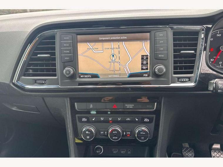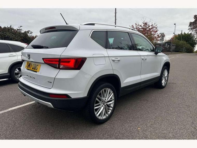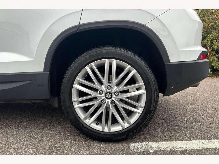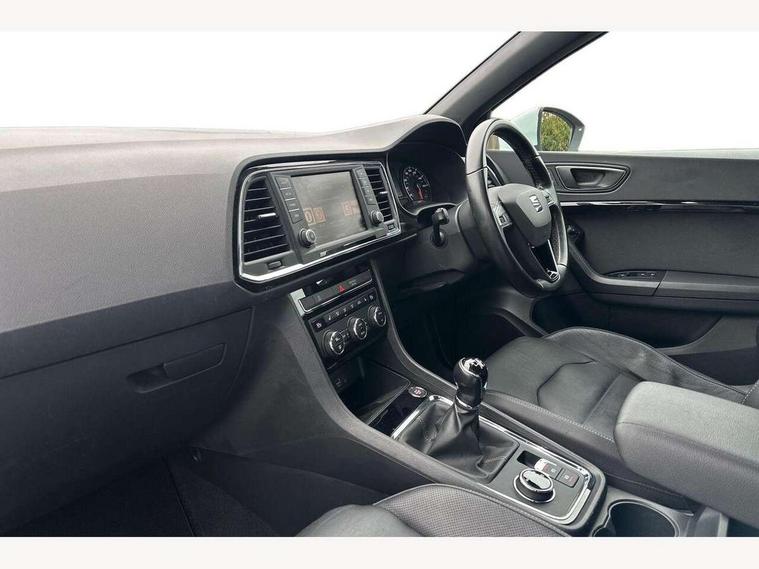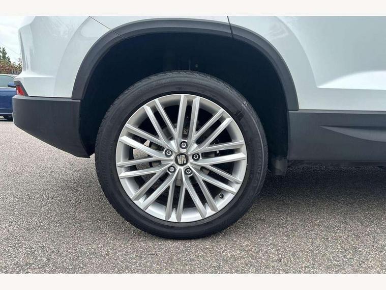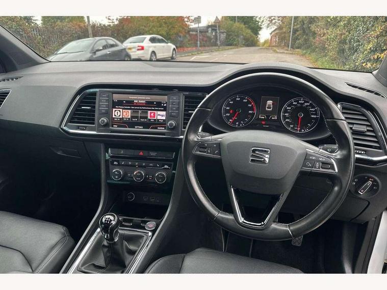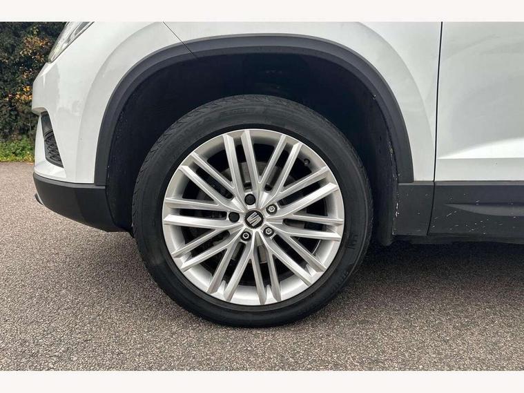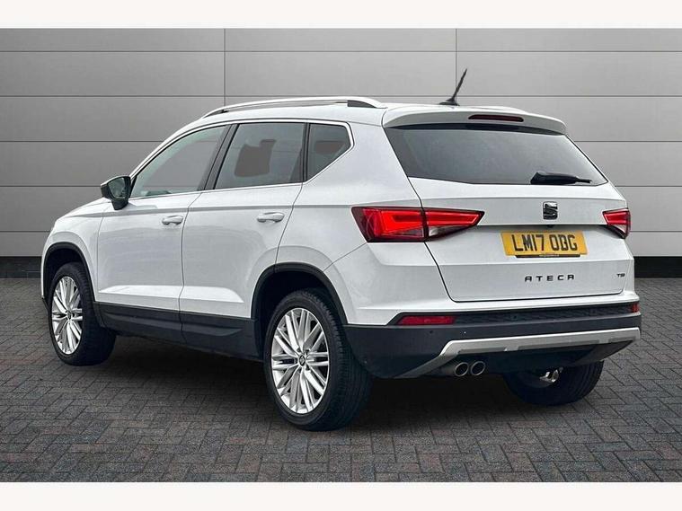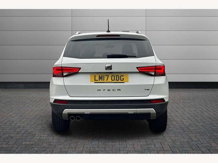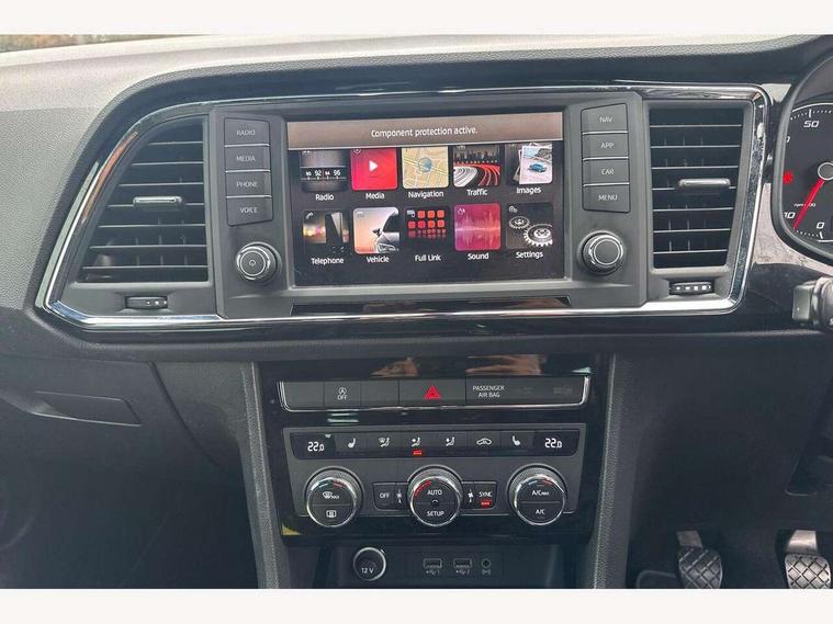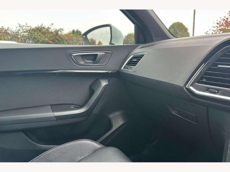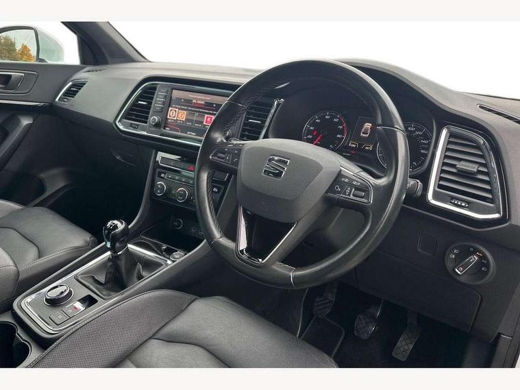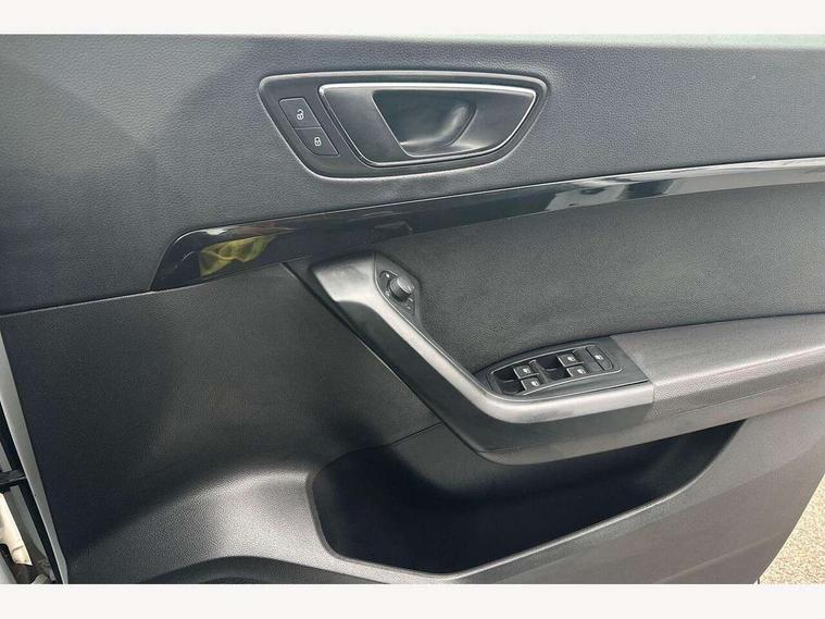 'Lights On' Reminder warning buzzer, Driver alert system, Full Link App interface, Low fuel warning light, Multi function display, Outside temperature gauge, Rear parking sensor, Rear view camera, Remote fuel flap release, SEAT Drive profile, SEAT logo boot release, Trip computer, Comfort suspension, XDS electronic differential lock, Steering wheel mounted audio/phone controls, Aluminium front door sills, Aluminium roof rails, Body colour bumpers, Body colour door handles, Body colour door mirrors, Chrome side window trim, Chromed centre radiator grille surround, Cornering front fog lights, Dark tinted rear windows, Electric folding door mirrors, Electrically adjustable and heated door mirrors, Front and rear electric windows, LED daytime running lights, LED Headlights, LED tail lights, Rear wash/wipe, Twin chromed exhaust pipes, Welcome lighting, 12V power point front, 3 height adjustable rear headrests, 60/40 split folding rear seat, Adjustable front armrest with storage compartment, Driver/passenger lumbar adjustment, Driver/passenger sunvisors with illuminated vanity mirrors, Dual zone climate control, Footwell illumination, Front cupholders x 2, Front reading lights, Front seat back storage pockets, Height adjustable driver's seat, Height adjustable front headrests, Height adjustable passenger seat, Illuminated boot, Illuminated glovebox, Isofix child seat preparation, Leather steering wheel and gear knob, Leather upholstery, Rear armrest, Rear central air outlet, Rear reading lights, Roof mounted sunglasses holder, Storage box under drivers seat, Convenience pack - Ateca, Seat Media System Plus pack - Ateca, Winter Pack - Ateca, 3x3 point rear seatbelts, ABS, Auto hold function, Automatic post collision braking, Curtain airbags, Driver/Front Passenger airbags, Drivers knee airbag, Electronic parking brake, Electronic stability control, ESP+EBA, Front and rear seatbelt reminder, Front assist including city emergency braking, Front passenger airbag deactivation, Front side airbags, Hill hold control, Predictive pedestrian protection, Tiredness recognition system, Traction control, Tyre pressure monitoring system, Immobiliser, Locking wheel bolts, Remote central locking, Volumetric alarm with back up horn, Chrome effect dashboard facia,