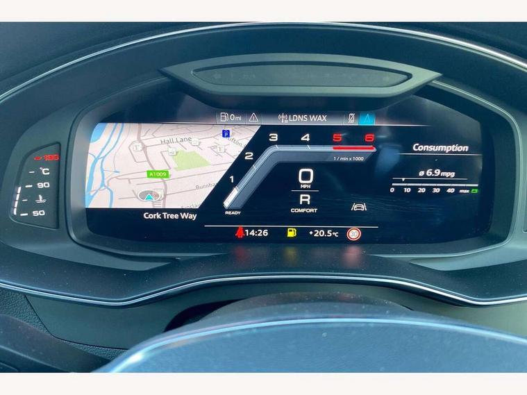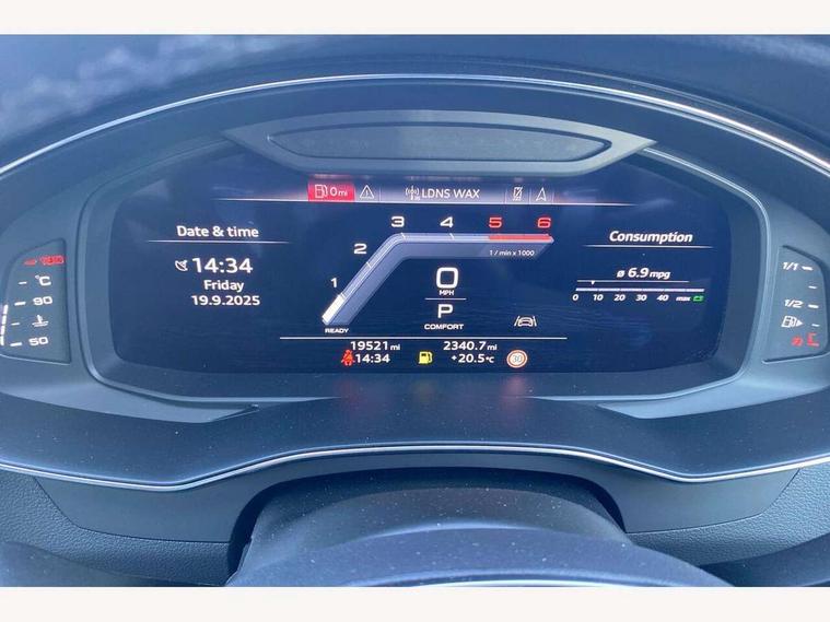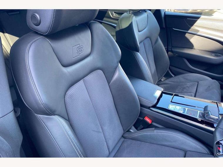 Audi connect safety and service (e-call), Audi connect with Amazon Alexa Integration, Audi drive select, Audi parking system plus - acoustic and visual park assist system for front and rear, Audi smartphone interface includes wireless Apple carplay/Android Auto, Audi virtual cockpit, Automatic start/stop system with coasting functionality, Bluetooth interface, Camera based traffic sign recognition, Colour driver's information system display, Lane departure warning system, MMI nav plus with MMI touch + 10.1" and 8.6" HD haptic touch screen/3D city models/country information/online map/route info and personal route assist, Operating buttons in black, glass look with haptic feedback, Progressive steering, Rear view camera, Service indicator, Voice control system, 22 litre AdBlue tank, Diesel particulate filter, Quattro on demand, Sports suspension, Audi music interface, Audi sound system with 6 channel amplifier, 180 watt amplifying capacity and 10 loudspeakers including subwoofer, Auxiliary input socket, DAB digital radio module, Audi beam, Audi rings, front and rear as well as A7 at the rear in black, Black rear diffuser with chrome inlays, Electrically adjustable heated and folding + automatically dimming exterior mirrors with memory function, Frameless auto dimming interior rear view mirror, Front and rear electric windows, Gloss black highlights on the exterior area of the Audi Single frame, Gloss black highlights on the front and rear bumpers, Gloss black highlights on the radiator grille, Gloss black highlights on the side windows trim strips, HD Matrix LED headlights, Heat insulating glass in side and rear windows, LED rear lights with dynamic indicators, Omission of output/technology badging, Privacy glass with side and rear windows, Rain and light sensors, Rear side wing doors, Rear wiper, Retractable rear spoiler, S air inlet in titanium anthracite black, Signature LED daytime running lights, Third brake light, Towbar preparation, Windscreen with heat-insulating glass, 2 zone deluxe electronic climate control, 4-way electric lumbar support, 40/20/40 split folding 3 seater rear seat bench with rear centre armrest, Audi phone box light, Black cloth headlining, Electrically adjustable front seats - driver seat with memory, Front and rear headrests, Front centre armrest, Heated front seats, Height/reach adjust steering wheel, Illuminated door sill trims with S logo, Illuminated sun visors with vanity mirrors, ISOFIX child seat mounting and top tether in front and outer rear seats with front passenger airbag deactivation, Leather gear knob, Leatherette upper instrument panel and door shoulders, Luggage compartment lid, electrically opening and closing, S line front and rear floor mats with contrast stitching, Single front passenger seat, Stainless steel pedals and foot rest, Tool kit, LED interior ambient lighting pack - A7, Non smoking pack - A7, 3 point seatbelts on all seats, Audi pre-sense front, Driver and passenger airbags, Electromechanical parking brake, Electronic stabilisation control including ABS, ASR and EDL, Extended pedestrian protection measures, Hill hold assist, Manual child lock in rear doors, Seatbelt monitoring, Tyre pressure warning light, Warning triangle and first aid kit, Anti theft alarm with tow away protection, Anti-theft wheel bolts and wheel loosening detection, Immobiliser, Keyless Go, Preparation for tracking system, Remote central locking, Carbon twill inlays, 20" 5 segment spoke evo style Audi sport black matte diamond turned alloy wheels,