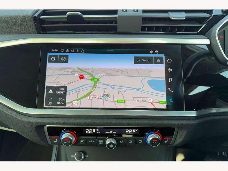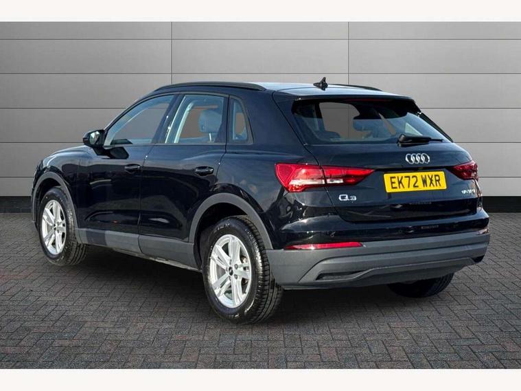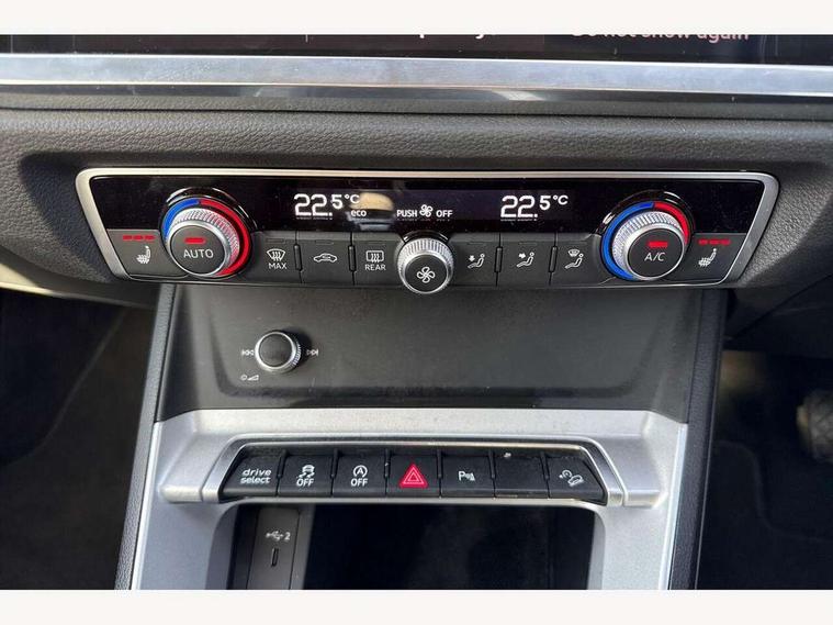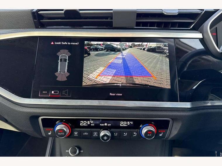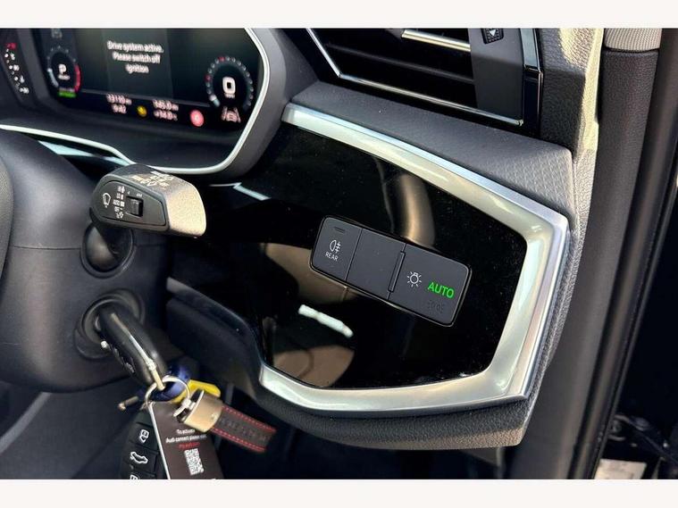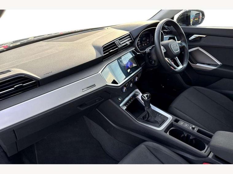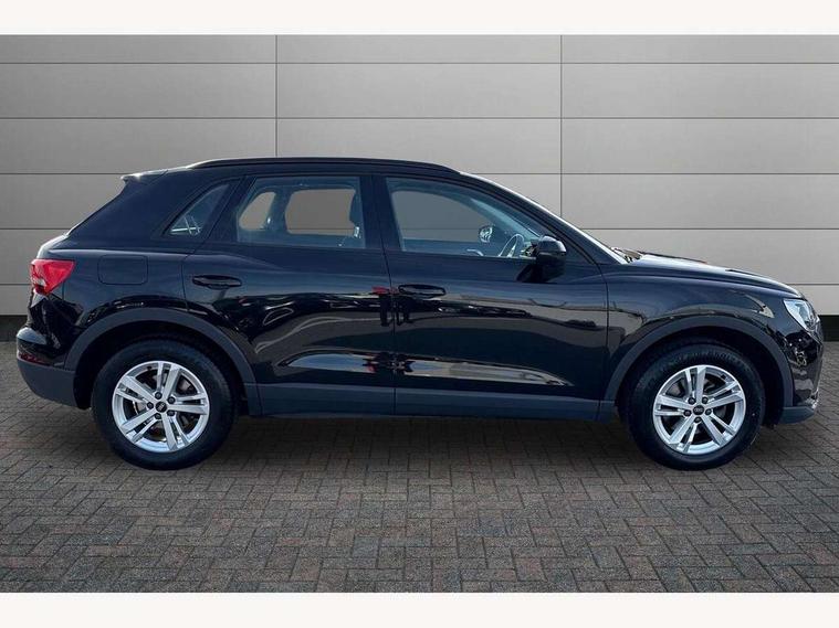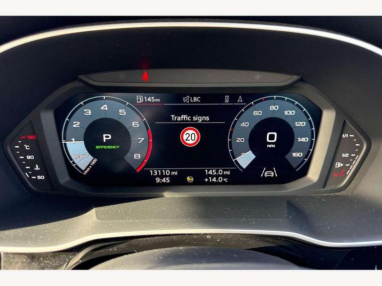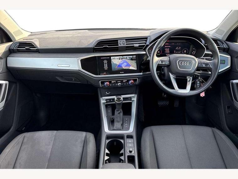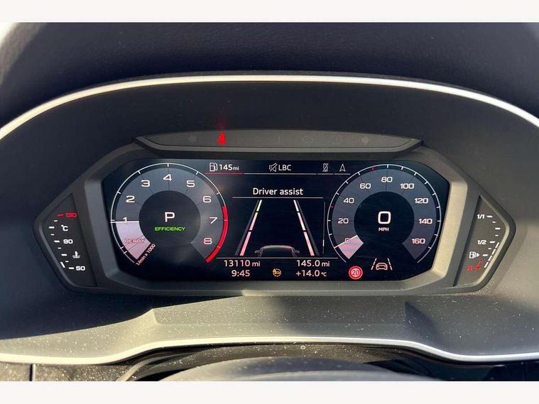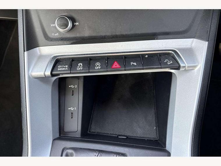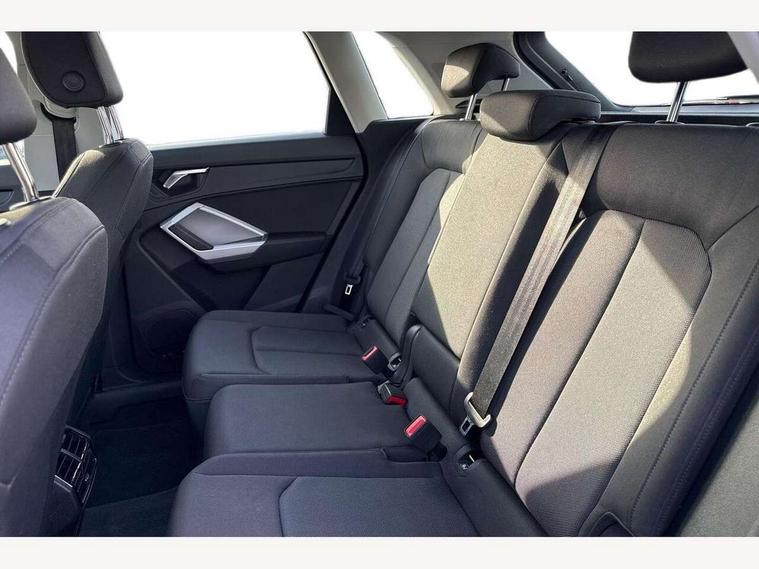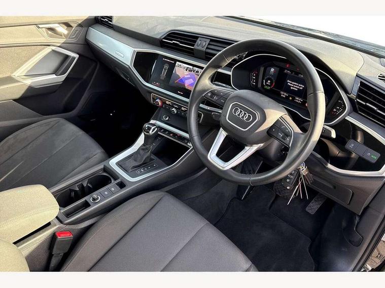 Amazon alexa Integration, Audi drive select, Audi lane departure warning, Audi Virtual Cockpit - 10.25" display, Bluetooth interface, Camera based traffic sign recognition, Legal emergency call, MMI Navigation Plus with high resolution 10.1 inch touchscreen colour display, Power operated tailgate, Progressive steering, Service interval indicator, Smartphone interface includes wireless Apple carplay/Android Auto, Start stop system with recuperation, Voice control system with natural language interaction, Standard suspension, 2 USB-C ports with charge and data functions, 6 passive loudspeakers, DAB digital radio module, Acoustic windscreen, Auto dimming frameless rear view mirror, Black roof rails, Body colour door mirrors, Diffuser in grained anthracite, Electrically folding, adjustable and heated door mirrors with integrated LED side indicators and kerb view function for passenger side, Exterior bumper with wheel arch trims and side sill trims in grained black matt, Front and rear electric windows, Grained radiator protective grille, Halogen rear lights, LED headlights with LED daytime running lights, Rain and light sensors, Rear side wing doors, Rear wiper, Third brake light, Variable front intermittent wipers, 12V socket in rear centre console, 3 seat bench in 2nd row, 3 spoke multi-function leather steering wheel, 40:20:40 folding with manual adjustment for 60:40 forwards/backwards position and backrest angle, Dual zone electronic climate control, Front and rear floor mats, Front and rear headrests, Front and rear roof module including reading lights, Front centre armrest, Glove compartment lighting, Height and reach adjustable steering wheel, ISOFIX child seat mounting for front passenger with airbag deactivation and outer rear seat including top tether attachment point for outer rear seats, Luggage compartment light, Lunar silver cloth headlining, Manual front seats with height adjustment, Single front passenger seat, Stainless steel luggage compartment sill finisher, Non smoking pack - Q3, 3x3 point rear seatbelts, 6 airbags - Driver, front passenger, curtain and side windows, Audi pre-sense front with pedestrain and cyclist recognition, Electrically operated child locks on rear doors, Electromechanical parking brake, Electronic stabilisation control including ABS, ASR and EDL, Front seatbelt reminder, Hill descent control, Hill hold assist, Pre sense basic, Seatbelt monitoring, Tyre pressure warning, Warning triangle and first aid kit, Anti theft alarm, Anti theft wheel bolts, Immobiliser, Remote central locking, Detail dashboard around MMI touch colour display in glass look, black with surround in aluminium look, Micrometallic silver inlay, 17" 5 twin spoke design alloy wheels,