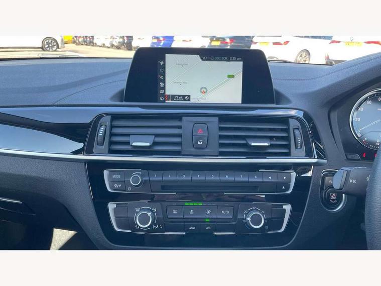 Automatic start/stop system, BMW Online services, BMW remote services, BMW Teleservices, Brake force display, Brake pad wear indicator in front and rear, Check Control warning system for monitoring of lights and door/luggage compartment open warning, Eco pro mode, Instrument cluster with speedometer with miles per hour read out, tachometer and fuel gauge, Lights on warning by audio warning signal when ignition is switched off, Oil temperature display via on board computer in instrument cluster, On board computer - average speed+fuel consumption, service interval, clock/date, odometer/trip meter, outside temperature display and ice warning, On board diagnostics, Optimum shift indicator, Personal Profile, Real time traffic information, Servotronic PAS, Speed limiter, Automatic transmission, Battery age recognition function, Drive Performance Control, BMW professional radio with CD player, DAB Digital radio, Body colour door handles, Body colour front and rear bumpers, Body colour roof mouldings, Clear lenses direction indicator lights, Dark chrome exhaust tailpipe, Daytime driving lights, Direction indicator side lights in exterior mirrors, Dynamic brake lights, Electrically adjustable heated door mirrors and washer jets, Follow me home headlights, Front air inlet with high gloss black finish, Front and rear bumper system with replaceable deformation elements, Front and rear electric windows with open and close fingertip control, anti trap facility and comfort closing, Green tinted heat protection glazing, Headlight beam throw control, Heated windscreen washer jets, High gloss black extra wide kidney grille with black vertical slats, High level third brake light, Lightweight engineering, Nearside reverse light in rear light cluster, Offside rear fog lights, Rain sensor including auto headlights activation, Rear bumper with high gloss black finish, Rear window aerial, Rear window wiper, Shark fin antenna, Visible VIN plate, Welcome lighting, 12V power socket in centre console, 12V power socket in passenger footwell, 60/40 split folding rear seat, Anthracite Velour front and rear floor mats, Conditioned based service, Four grab handles integrated in roof lining, Front and rear side armrest integrated into door trim, Front door sill finishers in BMW designation, Front folding sliding armrest with storage compartment, Front head restraints, Front sports seats with electric side bolster adjustment, Front storage compartment in centre console and in door trim, Front/rear courtesy lights with soft on/off dimming, Glove box handle with chrome surround, Glovebox, Interior light in front centre interior mirrors and rear centre auto interior light activation when door is opened when ignition switched off, Isofix child seat for two outer rear seats, Leather gear knob and handbrake grip, Luggage compartment access via BMW roundel, Manually adjustable steering column, Multi-function controls for steering wheel, Rear folding head restraints, Two cupholders with sliding cover and inlay mat, Two sills lashing eyes in the luggage compartment, 3 point seatbelts on all seats, front pyrotechnic belt tensioners, stopper and belt force limiters, rear coded belt buckles, Active differential brake (ADB), electronic differential lock in DSC-OFF mode, Airbags - Front driver and passenger, front and rear head, front side, curtain head protection, Anti lock braking system (ABS) with brake assist, Automatic Stability Control (ASC), Battery safety cut-off, BMW emergency call, Brake drying, Brake energy regeneration, Braking readiness, Cornering brake control (CBC), Crash sensor activating central locking release, hazard warning lights, Driver and front passenger seat belt security check, DSC+, Dynamic brake control, Dynamic Traction Control - DTC, Front passenger manual airbag deactivation, Front ventilated brake disc, Hill start assist, Rear brake discs, Rear child proof door locks, Side impact protection, Twin horns, Tyre pressure monitoring system, Warning triangle and first aid kit, Automatic drive away locking facility, Central locking switch for all doors, fuel filler cap and luggage compartment, Locking wheel bolts, Remote central locking with two Integrate key, one button for opening and closing all lock, open and close window, button for open luggage compartment, Remote control integrated key with red inset, Start/stop button with comfort go keyless engine start and auto start stop deactivation button, Thatcham Cat.1 alarm and immobiliser, Reduced rolling resistance tyres, Run flat tyres,