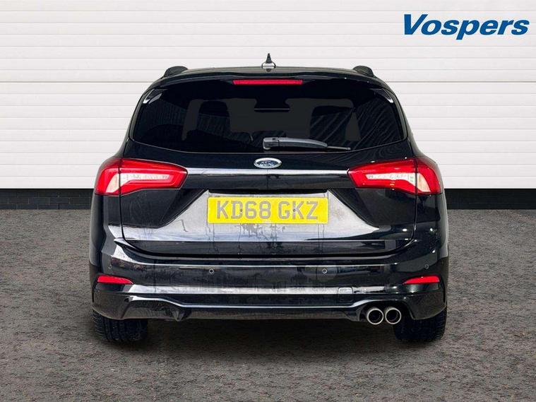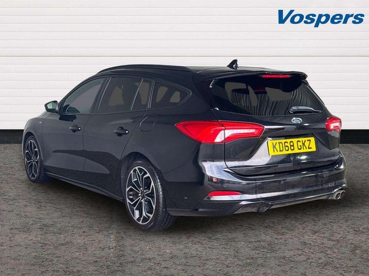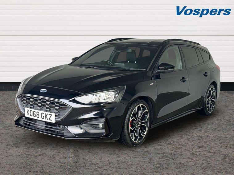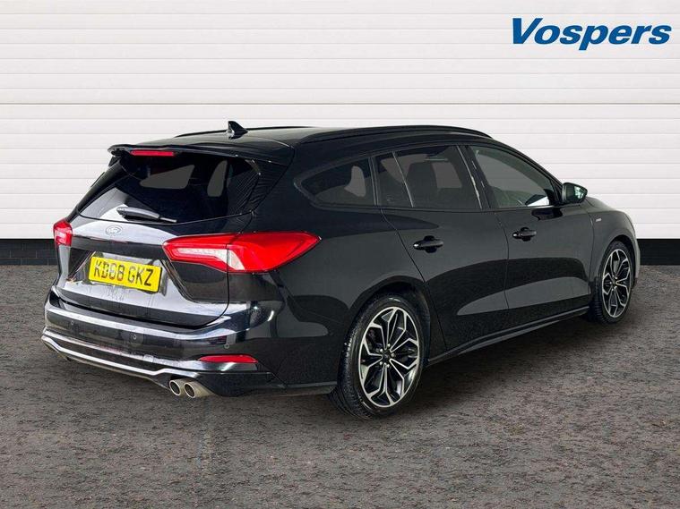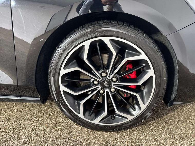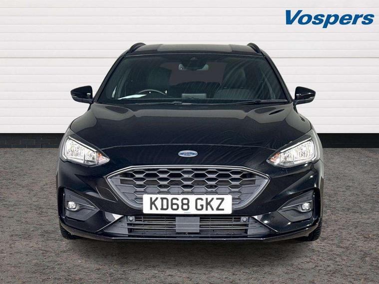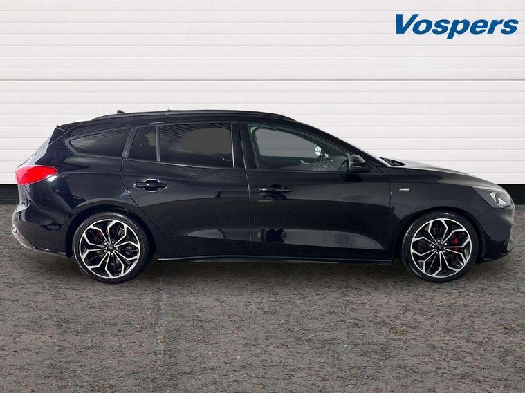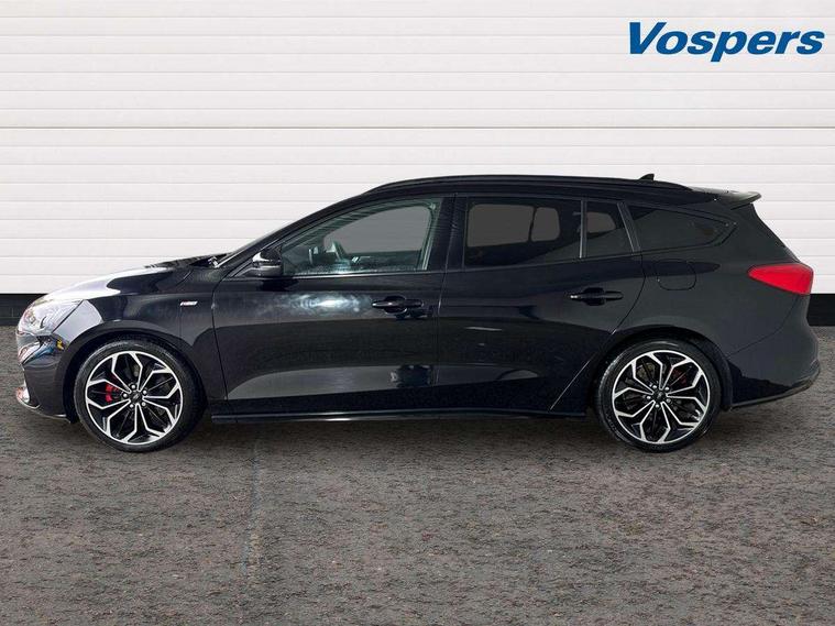 4" TFT coloured cluster screen, Bluetooth system, Digital clock, Easy fuel capless refuelling system, Eco mode, Ford pass connect, Ford SYNC 3 nav system with DAB radio, 8" colour touch screen, voice control, app link, Apple car play/Android auto and 4.2" TFT coloured cluster, Lane keeping aid with lane departure warning, PAS, Selectable drive mode, Trip computer, Sports tuned suspension, 2 USB ports, Aux input, 'Quickclear' heated windscreen/heated washer jets, Auto dimming rear view mirror, Auto headlamps (on/off), Automatic rain sensing wipers, Body colour large rear spoiler, Body colour side skirt, Body coloured bumpers, Body coloured door handles, Body coloured electrically operated and heated door mirrors with side indicators, Electrically operated front and rear windows with one touch opening and closing, Front variable intermittent wipers with electric wash, Heated rear window, LED daytime running lamp, LED front fog lamps with cornering function, Polished twin tailpipe, Power folding door mirrors with puddle lights, Rear privacy glass, Roof rails, ST-Line upper and lower grille with full body styling kit and wing badges, Tailgate wash/wipe, Unique door and instrument panel inserts, 3 spoke flat bottomed leather steering wheel with red stitching, 6 way power adjustable driver seat, 60/40 split back and cushion rear seats with 2 height adjustable headrests, Alloy finish pedals, Aluminium gear knob, Auto fold rear seats, Centre console with armrest, Dark headliner, Dual zone electronic air temperature control, Front and rear floor mats with red stitching, Front passenger seat manual height and lumbar adjust, Heated front seats, Height adjustable front headrests, Isofix child seat preparation, Part leather upholstery with red stitching, Reach + rake adjustable steering column, Rear centre headrest, Red stitching on steering wheel, Soft console knee pads with red stitching, ABS+Electronic Brake force Distribution, Auto hold function, Driver airbag, Electronic parking brake, Electronic stability control, Front and rear seatbelt reminder, Front inertia reel height adjustable seatbelts with pre-tensioners, Front passenger airbag, Front side airbags, Hill start assist, Passenger airbag deactivate switch, Post collision braking, Pre collision assist with autonomous emergency braking and pedestrian/cyclist detection, Red brake calipers, Side curtain airbags, Three rear inertia reel lap/diagonal seatbelts, Tyre pressure monitoring system, MyKey system, Remote central locking & engine immobiliser, Thatcham category 1 alarm, Contrast stitching - Red, 18" 5x2 spoke matt black machined finish alloy wheels, Mini steel spare wheel,