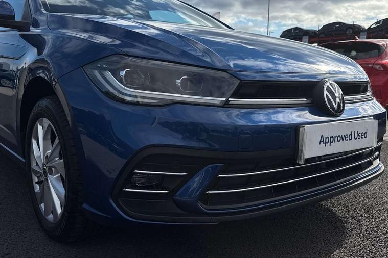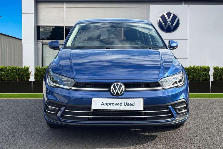 Adaptive cruise control without follow-to-stop and speed limiter, Bluetooth mobile phone interface, Digital Cockpit Pro with 10.25" Display, Driver alert system, Dynamic road sign display, Emergency call service, Power assisted speed sensitive steering, Preparation for We connect and We connect plus, Speedo and rev counter, electronic odometer, trip, service interval display and fuel gauge, Standard rear axle, Travel Assist - Lane keeping system and traffic jam assist, Travel assist including emergency assist, Trip computer, Warning signal and warning light for front and rear seatbelts not fastened, Washer fluid level indicator, Wireless app connect, Front wheel drive, Rear shock absorpion, Start-stop system with battery regeneration (recuperation - energy recovery during braking), DAB Digital radio, Diversity antenna for FM reception, Front and rear 6 speakers, Automatic dimming interior rear view mirror, Automatic headlights, Body colour door handles, Body coloured bumpers and radiator grille with chrome trims, Electric front windows, Heat insulating darkened glass in side and rear windows, Heat insulating glass windscreen, LED separate daytime running lights with coming/leaving home function, Power folding adjustable/heated exterior mirrors and front passenger exterior mirror lowering function, Rain sensor, Rear electric windows, Rear fog light, Rear side wing doors, Rear windscreen washer and wiper with interval delay, Third brake light, 12V power socket in centre console, 2 USB-C ports in the front, 2 USB-C charging sockets on the center console in the rear, 3 rear head restraints, 60/40 split folding rear seat and rear seat bench not split, Air care climatronic air conditoning system with active combination filter and 2-zone temperature control, Ambient lighting, Ceramique headliner, Chrome plated radiator grille inserts, air vent surrounds and light switch surrounds, Door and side trim panel, Driver and front passenger seat height adjustment, Driver/passenger sunvisors with illuminated vanity mirrors, Front + rear carpet mats, Front centre armrest, Front footwell illumination, Front seat backrest storage pockets, Front sports comfort seats, Handbrake lever handle in leather, Isofix child seat preparation easy-fit (for two outer rear seats, and front passenger seat) compatible with I-size, Leather trimmed gear knob, LED interior light with switch off delay and dimmer, 2 reading lights front and rear, Luggage compartment cover, Luggage compartment floor, Luggage compartment lighting, Lumbar adjustment for front seats, Multifunction steering wheel, Single front passenger seat, Standard pedal cluster, IQ LED matrix headlights pack - Polo, Light and vision pack - Polo, 3 point height adj front seatbelts + pretensioners, 3x3 point rear seatbelts, ABS, Driver and front passenger airbag with front passenger airbag deactivation, Drivers and front passengers safety optimised head restraints, ESC (Electronic stability control) + EDL (Electronic Differntial lock) and ASR (Traction control), Extended and predictive pedestrian/ cyclist protection, Front curtain and side airbags with center airbag, Front disc brakes, Hill hold control, Manual child lock in rear doors, Rear drum brakes, Single tone horn, Tyre pressure loss indicator, Alarm with interior protection, Anti-theft alarm system with interior monitoring, backup horn, and towing protection, Anti-theft wheel bolts, Electronic engine immobiliser, Chrome applications on rotary light, mirror adjustment, window regulator switches, outlet with frame in black, Deep iron gloss decorative inserts in dash and front door panels, Low rolling resistance tyres,
