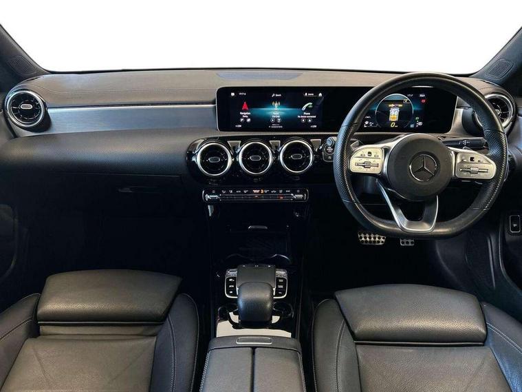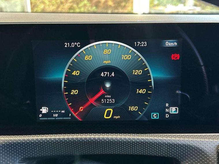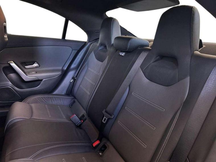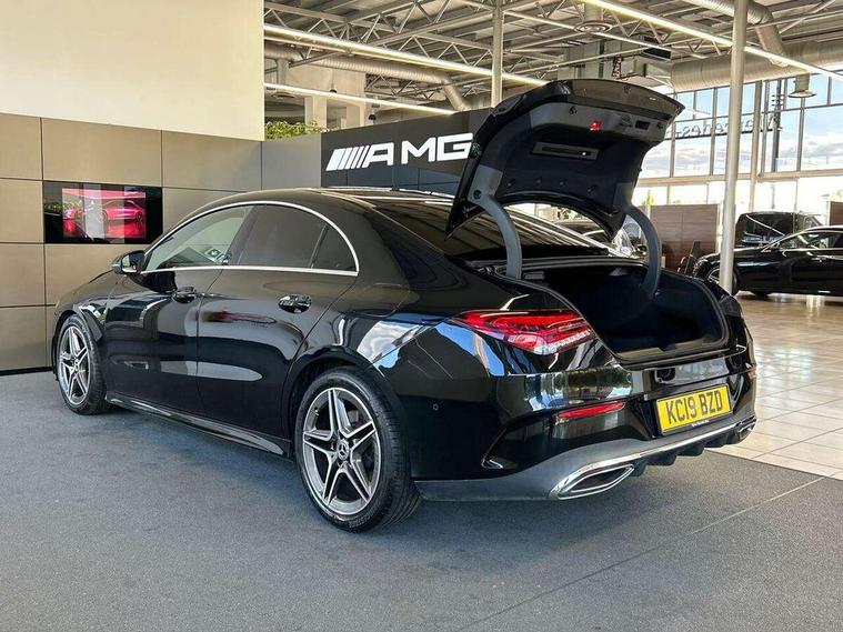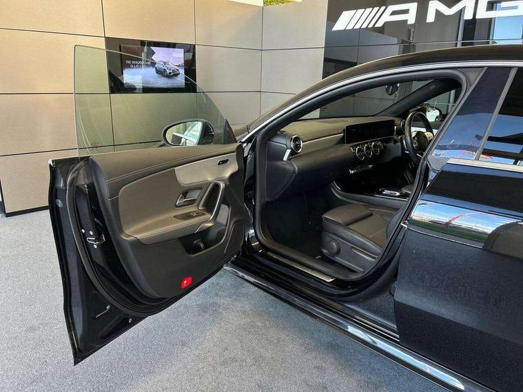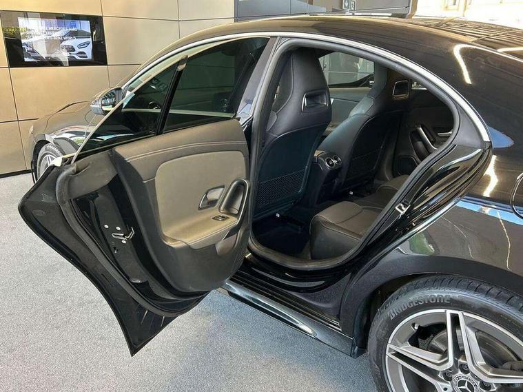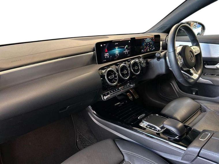 10.25" media display, 180 degree reversing camera, 7 inch display in instrument panel, Active lane keeping assist, Active park assist with parktronic system, Attention assist - Monitors steering behaviour and long journey fatigue, Cruise control + speed limiter, Direct steering, DYNAMIC SELECT with a choice of driving modes (ECO, Comfort, Sport, Sport+ and Individual), ECO start/stop function, Fluid level warning indicator for fuel, oil, coolant and washer fluid, Front and rear parking sensors, Hard-disk navigation, Hey Mercedes Voice activation, Lamp failure indicator, Outside temperature gauge, Pre-installation for private car sharing, Preinstallation for Mercedes Benz link, Radio aerial integrated into front and rear windshields, Service indicator (ASSYST), Smartphone integration, Trip computer in multifunction display with current consumption indicator, Wireless charging, Lowered comfort suspension, Rear axle multi-link, DAB digital radio tuner, MBUX multimedia system with DAB digital radio and touchpad including satellite navigation, Rear stowage compartment with 1 front centre console, 2 x USB ports (type C), Active radiator shutters open for cooling air and close when not needed to improve aerodynamics and fuel efficiency, Adaptive brake lights, AMG body styling front apron, rear apron and side skirts, Beltline strips and weather strip in chrome, Body colour bumpers, Body colour door handles with chrome inserts, Diamond radiator grille pins in chrome with silver painted louvres and chrome insert, Electric windows, Electrically adjustable and heated door mirrors with integrated LED indicators, Exhaust system - Twin trapezoidal tailpipes in polished stainless steel, Headlamp assist automatic headlamp activation, Heated glass rear windscreen + timer control, High level LED third brake light, LED high performance headlamps with integrated LED daytime running lights, LED tail lamp, Privacy glass, Rain sensing windscreen wipers with two sensitivity settings, Rear fog lamp, 3 spoke flattened bottom nappa leather multifunction steering wheel with perforated leather in grip area, 40:20:40 split folding rear seat backrests, Air conditioning - Two zone thermotronic luxury automatic climate control with display, Air vents with surround in silver chrome, Ambient lamp and signal, Automatic child seat recognition sensor, Black roof lining, Brushed stainless steel sports pedals with rubber studs, Cup holder and stowage compartment lighting, Floor mats with AMG lettering, Freight packaging with tie-down hooks, Front and rear Handle recess/closing handle light in left and right, Front centre armrest with stowage, Front door sills with Mercedes Benz lettering, Front footwell lights, Front reading lamps in left and right console downlighter, Front seat cushion length adjustment, Front signal exit lamp in left and right, Front vanity light in left and right, Galvanished gear shift paddles on steering wheel, Heated front seats, Illuminated glove compartment stowage, Luggage net on driver/front passenger seat backrest, Manually adjustable front seats, Manually height and reach adjustable steering column, Oddments tray lighting, Rear interior lamp, Rear reading lamp in support plate in left and right, Spectacles compartment for driver, Sport seats with fixed head restraints, Stowage compartment in centre console with retractable cover, Sunvisors with illuminated vanity mirrors, Touchpad illumination, Touchpad on center console, Twin front cupholders, Two outer rear seat isofix and top tether child seat fixing points, Light and sight pack - CLA, Mirror pack - CLA, Seat comfort pack - CLA, Active bonnet pedestrain safety measure which detects an impact and raises bonnet by 65mm, Active brake assist includes forward collision warning system with autonomous braking, Adaptive brake assist with hold function and hill start assist, Anti-lock braking system (ABS) with brake assist, Brake pad wear warning indicator, Childproof locks manually operated for rear doors and electrically operated for rear power windows, Crash responsive emergency lighting, Driver and front passenger head and sidebags, Driver and front passenger windowbags, Drivers knee airbag, Dual stage driver and front passenger airbags, Electric parking brake, Electronic stability programme with acceleration skid control, ESP curve dynamic assist, Front and rear seatbelt reminder, Front brake callipers with Mercedes Benz lettering, Front passenger seat occupancy sensor, Three point rear seat belts, Tyre pressure monitoring system, Warning triangle and first aid kit, Alarm system with immobiliser and interior protection -Thatcham category 1, Keyless Go starting function, Remote central locking and crash sensor with emergency opening function, Light aluminium with longitudinal grain interior trim, 18" 5 twin spoke design alloy wheels painted in titanium grey with high sheen finish, Summer tyres, Tirefit tyre sealant kit,