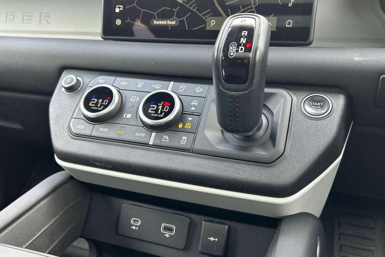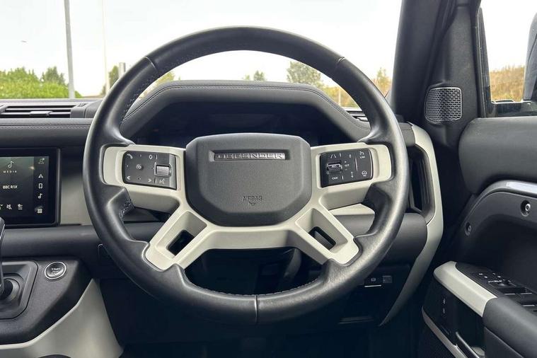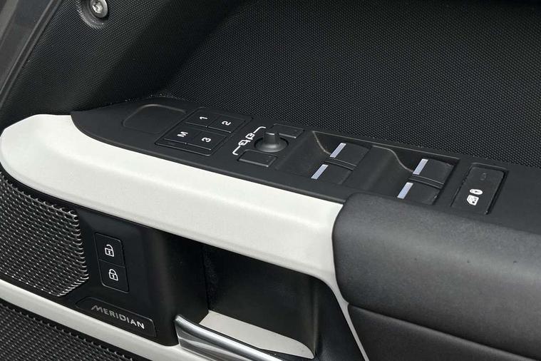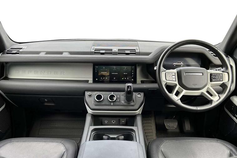 360 degree parking aid, 3D Surround Camera with 360 View, 180 Rear View, Front Traffic Detection, Forward Vehicle Guidance, Tow Hitch Assist and clear sight Ground View, Adaptive cruise control, Android Auto, Apple CarPlay, Assisted tailgate with soft close, Blind spot assist, Bluetooth system, Brake pad wear indicator, Clear exit monitor, Connected navigation pro, Driver condition monitor, Electric power assisted steering (EPAS), Interactive driver display, Lane keep assist, Push button start, Rear traffic monitor, Traffic sign recognition with adaptive speed limiter, Trip computer, Wade Sensing, 8 speed automatic transmission, Adaptive dynamics, All wheel drive system, Twin speed transfer box, DAB Radio (Digital Audio Broadcasting), Meridian 400w sound audio system with 11 speakers and subwoofer, Pivi pro connected, Automatic headlight levelling, Automatic headlights, Black exposed rear recovery eyes, Centre high mounted stop light, Electric heated/power fold door mirrors with approach lights and auto dimming driver side, Electric windows with one touch open/close and anti-trap, Follow me home lighting, Heated rear window with timer, Heated windscreen, LED tail lights, Privacy glass, Puddle lights, Rain sensing windscreen wipers, Rear fog lights, Rear side wing doors, Rear wiper, Side hinged tailgate, Trailer stability assist, X-Dynamic badge, 12V power socket in loadspace, 2 seat bench in 3rd row, 3 seat bench in 2nd row, Alpine lights, Configurable cabin lighting, Durable rubber cabin flooring, Durable rubber loadspace flooring, Footwell lights, Front passenger isofix child seat attachment, Loadspace cover, Loadspace Hook, Multifunction steering wheel, Overhead stowage for sunglasses, Premium cabin lighting, Rear headrests, Rear ISOFIX, Rear reading lights, Single front passenger seat, Storage glovebox, Sunvisors with illuminated vanity mirrors, Online pack with data plan - Defender, 7 three point seatbelts, ABS, Brake hold function, Cornering brake control (CBC), Customer configurable autolock, DSC - Dynamic Stability Control, EBD - Electronic brakeforce distribution, Electric parking brake (EPB), Emergency brake assist, Emergency braking, ESP + traction control, Front airbags with passenger seat occupant detector, HDC - Hill descent control, Hill launch assist, Low traction launch, Power operated child locks, Remote for (e-Call, Optimised assistance call, InControl app, Climate, beep and flash and door), RSC - Roll stability control, Seat belt reminder, TPMS (Tyre pressure monitoring system), Alarm, Immobiliser, Intrusion sensor, Keyless entry, Locking wheel nuts,