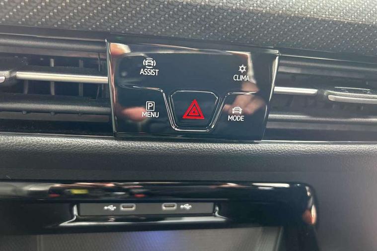 Adaptive cruise control (ACC) with speed limiter and front assist (reacting to vehicles pedestrians and cyclists), Car2X communication, Digital cockpit pro - 10.25" high resolution TFT dash display screen with customizable menus and information, Driver alert system, Dynamic road sign display, eCall - Emergency call service for SOS calls to emergency response, Lane assist, Mobile phone interface with wireless inductive charging function, PAS, Speedo, rev counter, electronic odometer, trip, service interval display, exterior temperature and fuel gauge, Start/Stop function, USB-C ports in the front and rear centre console with increased charging performance, Warning buzzer and light for front seatbelts unfastened, Wireless app connect, Petrol Particulate Filter, XDS electronic differential lock for improved traction and handling, Premium USB cable in choice of either Apple or Android smartphone compatibility, Ambient lighting, exterior illuminated styling elements at the sides, Auto dimming rear view mirror, Automatic headlamp activation with Coming home and Leaving home feature, Automatic headlights, Body colour door handles, Body colour door mirrors with integrated indicators, Body colour rear roof spoiler, Dynamic headlight range control, Electrically heated and adjustable door mirrors with memory feature, Front and rear electric windows, Heat insulating glass windscreen, Heated rear windscreen, High level 3rd brake light, Highway light, LED daytime running lights, LED headlights incorporating turn signals, LED License plate illumination, R Line body coloured bumpers, Rain sensor, Rear fog light on one side and reversing lights on both sides, Rear lights incorporating LED technology, Rear side wing doors, Rear tinted glass 65% light absorbing from B pillar backwards, Rear windscreen washer and wiper with interval delay, Welcome light, 12V socket in front centre console, 12V socket in luggage compartment, 3 rear head restraints, 3 seat bench in 2nd row, Ambient lighting - Customisable 30 colour ambient lighting, Black roof lining, Brushed stainless steel pedals, Chrome plated surround to electric mirror button, window switch and air vent surrounds, Drivers and front passengers sun visors with vanity mirrors, Front + rear carpet mats, Front centre armrest with storage compartment, Front cupholders x 2, Front passenger seat, Front reading lights x 2 incorporating LED technology, Front seat lumbar support adjuster, Front sports seats, Glovebox, Height adjustable front seats, Height and reach adjustable steering wheel, Isofix child seat preparation for 2 rear child seats and front passenger seat, Luggage compartment lighting, R Line door and side trim panel, R Line front seats integrated head restraints, R-Line leather wrapped multi function sports heated steering wheel, Removable luggage compartment cover, Sardegna cloth upholstery with front and outer rear seats Art Velour inner sides of bolsters, Split folding backrest with centre armrest and unsplit rear seat bench, Woven fabric storage compartments in front and rear doors, 3 point height adj front seatbelts + pretensioners, 3 rear three point seatbelts, ABS, Child locks on rear doors, Driver and front passenger airbag with front passenger airbag deactivation, Drivers and front passengers safety optimised head restraints, Electronic parking brake with auto hold, ESC (Electronic Stability Control), Extended pedestrian protection measures, Front and rear passengers curtain airbag system including front side airbags, Front disc brakes, Rear disc brakes, Two tone horn, Tyre pressure monitoring system, Alarm with interior protection and deactivation via infotainment system, Electronic engine immobiliser, Carbon grey decorative inserts in dash and front door trim panels, High gloss black centre console, Soul dashboard,