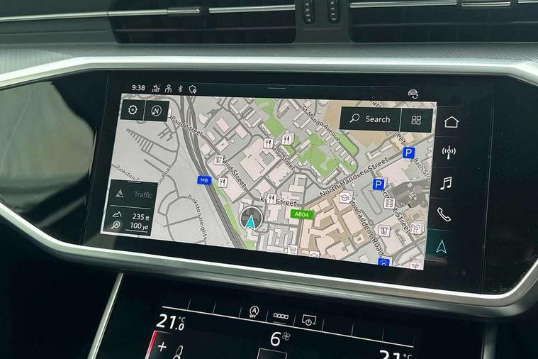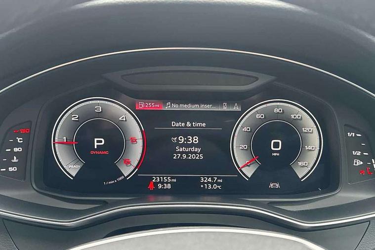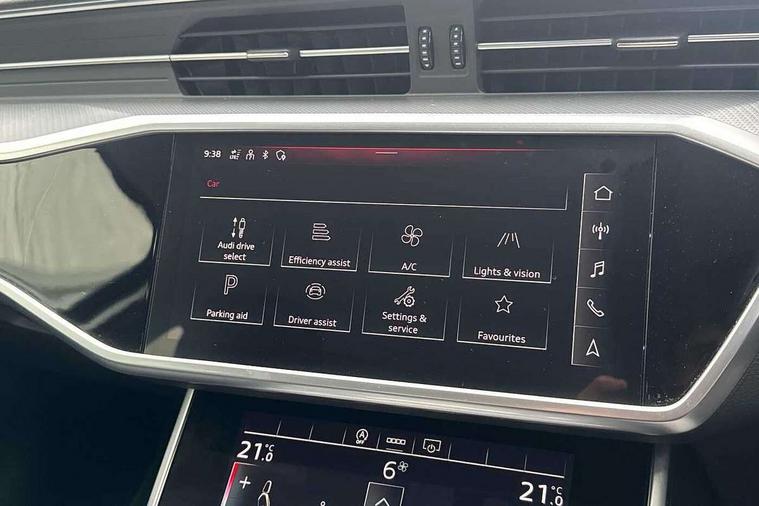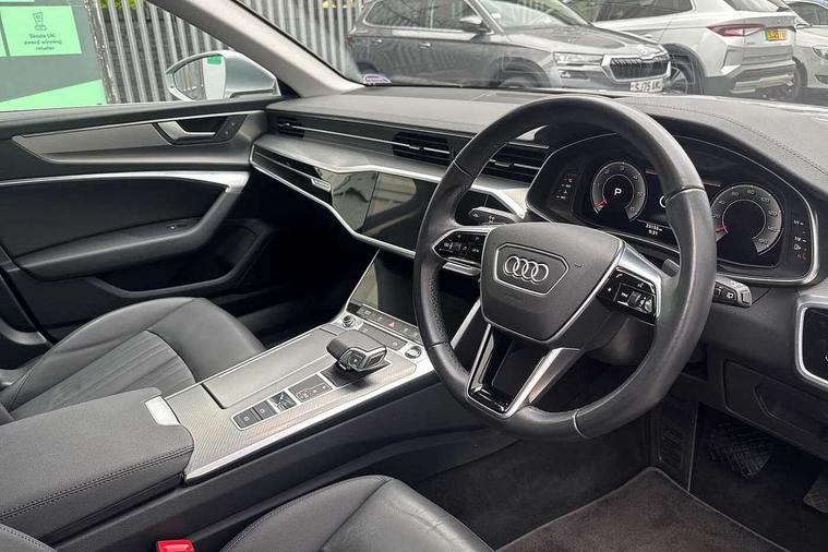 7" high resolution colour driver information display system, Audi connect safety and service (e-call), Audi connect with Amazon Alexa Integration, Audi drive select, Audi parking system plus - acoustic and visual park assist system for front and rear, Automatic start/stop system with coasting functionality, Bluetooth interface, Cruise control + speed limiter, Lane departure warning system, Power operated tailgate, Progressive steering, Rear view camera, Service interval indicator, Smartphone interface includes wireless Apple carplay/Android Auto, Voice control system, 12V Mild hybrid, 24 litre AdBlue tank, Diesel particulate filter, Quattro on demand, Standard suspension, Audi front music interface, Audi sound system, Auxiliary input socket, DAB Digital radio, USB connection, All weather LED headlights, Aluminium roof rails, Body colour bumpers, Body coloured door mirrors, Daytime running lights, Electric front/rear windows, Frameless auto dimming interior rear view mirror, Front intermittent wipers, Heat insulating darkened glass in side and rear windows, Heat insulating glass in windshield, LED rear lights, LED third brake light, Matt black rear diffuser with diffuser strip and tailpipes in chrome, Matt black side air intake grille with inlay in matt aluminium, Radiator grille in titanium black matt, single frame in chrome and horizontal struts in matt aluminium silver, Rain and light sensors, Rear roof spoiler, Rear side wing doors, Rear wiper, 2 zone deluxe electronic climate control, 3 spoke high multi-function leather steering wheel with shift paddles, 4 way electric lumbar support for driver and front passenger, 40/20/40 split folding 3 rear seat bench in 3 parts with rear centre armrest, Black steering wheel insert, Centre armrest matches seat colour, Door sill trims with aluminium inlay, Front centre armrest, Front head restraints, Heated front seats, Height/reach adjust steering wheel, Illuminated sun visors with vanity mirrors, ISOFIX child seat mounting and Top Tether with front passenger airbag deactivation, Leather gear knob, Luggage compartment system, Lunar silver cloth headlining, Rear headrests, Single front passenger seat, LED Interior Ambient Lighting Pack - A6, Non smoking pack - A6, Technology pack - A6, 3 point seatbelts on all seats, Airbags - Front side, front and rear including head, Audi pre-sense front, EBD - Electronic brakeforce distribution, Electromechanical parking brake, Electronic Stability Control (ESC) including ABS, ASR and EDL, Extended pedestrian protection measures, Manual child proof rear door locks, Seatbelt monitoring, Tyre pressure warning light, Warning triangle and first aid kit, Anti theft alarm with tow away protection, Anti-theft wheel bolts and wheel loosening detection, Immobiliser, Keyless Go, Remote central locking, Aluminium fragment inlay,