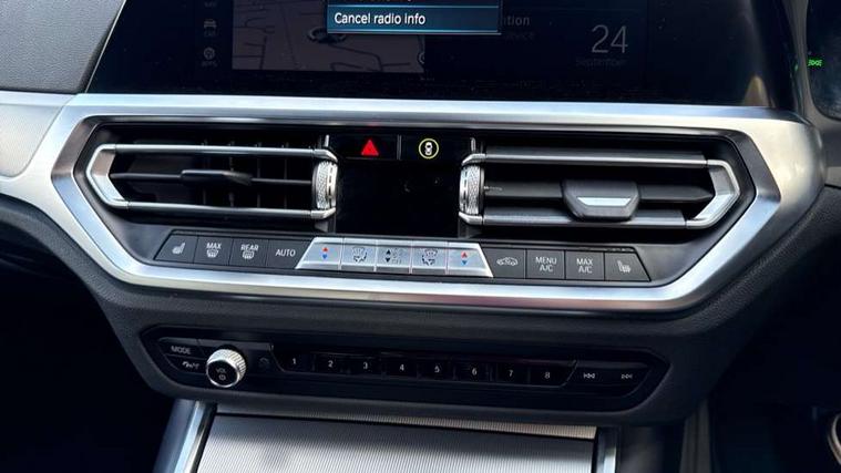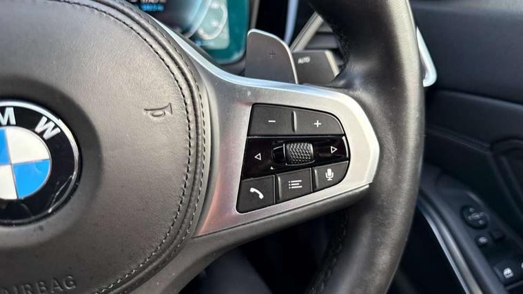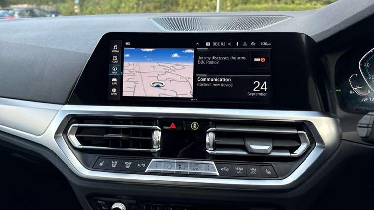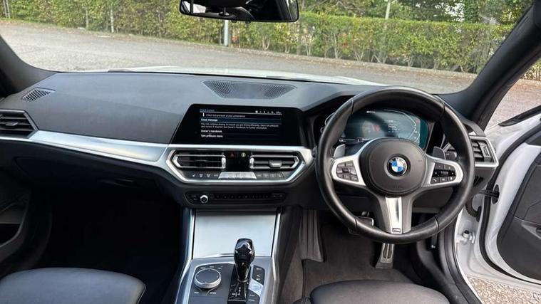 Active guard plus, Attentiveness assist, Auto start-stop, BMW iDrive controller on centre console, BMW Live Cockpit Professional Nav with 12.3" instrument display + 10.25" display, Intelligent Voice Assist, BMW OS 7, HDD, 2USB, 4G LTE connect, BMW service history, BMW Teleservices, Brake pad wear indicator in front and rear, Check Control warning system for monitoring of lights and door/luggage compartment open warning, Condition based service, Electric power steering with Servotronic steering optimised at all speed ranges, Instrument cluster with speedometer with mph readout, tachometer, fuel gauge and oil temperature gauge, Integrated owners handbook, Oil sensor for level and grade, warning by check control system, On board computer - average speed+fuel consumption, service interval, clock/date, odometer/trip meter, outside temperature display and ice warning, Optimum shift indicator, Personal Profile - automatic lock when driving away selectable, Balanced 50/50 weight distribution, Battery cut-out switch, Drive performance control - ECO PRO, comfort and sport modes, Petrol Particulate Filter, Stroke dependent dampers, DAB tuner, Electronic service booklet, Acoustic glazing, Active airstream chrome frame kidney grille with 8 high gloss black vertical slats, Automatic headlight beam throw control with load dependent regulating reaction, dynamic compensation of braking dive and acceleration squat, Black roof mouldings, Body colour door handles, Body colour front and rear bumpers, Body colour fuel filler flap, Body colour mirror caps with bottom segment in matt black, Dynamic brake lights, Electric windows - front and rear, with open/close fingertip control, anti-trap facility and comfort closing, Exhaust tailpipe - split left and right, Exterior mirrors - electrically folding with anti-dazzle, Fading support, Front and rear bumper system with replaceable deformation elements, Front black door sill finishers with BMW designation, Green tinted heat protection glazing, High gloss shadow line exterior trim, Interior rear view electrochromatic mirror with automatic anti dazzle function, LED daytime running lights, LED front fog lights, Lightweight engineering, M designation on front side panels, left and right, Matt black exterior B pillar, Model designation on right side of tailgate, Rain sensor with automatic headlight activation, Shark fin antenna, Two part LED tailights in L-shape with components in smoked glass, brake light, LED turn indicator and rear fog light, Visible VIN plate, Welcome lights in interior and door handle area, Windscreen wipers with integrated washing jets, 12V power socket in front storage compartment, 2 front cupholder in centre console with clamping elements and matt black inlay, 3 rear seats with non folding headrests with 3 point seat belts, 3 zone automatic air conditioning, 4 pieces lashing eyelets in luggage compartment, 40:20:40 split folding rear seat with loading system, Ambient lighting with welcome carpet light, Anthracite headlining, Armrest integrated in front and rear door trim + front centre console armrest, Centred top Luggage compartment lights, Four grab handles integrated in roof lining, Front and rear door exit lighting (left / right), Front and rear door pockets, Front and rear reading lights, Front and rear velour floor mats, Front head restraints, Front sport seats, Heated driver and front passenger seats, Height adjustable mechanically and infinitely variable steering column, Illuminated armrest storage compartment, Illuminated glove compartment with separate small compartment, Interior lighting - front centre over interior mirror with soft light, rear centre and front and rear footwell lighting, M sport leather steering wheel, Make-up mirror lights, Rear centre armrest with 2 cupholders, Rear centre console with storage compartment and ventilation grille, Sunvisors with vanity mirrors and ticket pocket, Toolkit located in luggage compartment, Connected pack professional - 3 Series Saloon/Touring, M sport exterior styling pack - 3 Series Saloon/Touring, 2 tone horn, BMW emergency call, Brake energy regeneration, Braking pre-tensioning, Child proof locking system in rear door, Child seat ISOFIX attachment rear outer seats, Coasting in idle in ECO PRO mode, Crash sensor activating of airbags, Unlocking doors, hazard warning lights, fuel cut off, interior lighting+activation of safety battery terminal clamp, Driver and front passenger side airbags, integrated in the door side seat backrest bolsters for all seat variants, Driver/Front Passenger airbags, Dry braking, Dynamic brake control, Dynamic stability control + (DSC+) - Anti-lock Braking System (ABS) with brake assist and cornering brake control + Automatic Stability Control (ASC), Dynamic Traction Control - DTC, Electric parking brake including automatic hold function and automatic release of the parking brake when driving off, Electronic differential lock control (EDLC), Front passenger manual airbag deactivation, Head airbags for all 4 outer seats, Hill start assist, Seat belt security check for driver and front passenger, Side impact protection, Three 3 point seat belts on all seats including front belt stopper, pyrotechnic belt tensioners and belt force limiters, Tyre pressure monitoring with three level warning strategy, Ventilated front and rear disc brakes, Warning triangle and first aid kit, Alarm system (Thatcham 1) with remote control and electronic engine immobiliser, Central locking switch for all doors, fuel filler cap and luggage compartment, Remote control with integrated key one button open/close vehicle and windows, sole opening of the luggage compartment lid and panic mode, Start/stop button with Comfort Go keyless engine start and auto Start/stop deactivation button, Vehicle key with M specific designation, Reduced rolling resistance tyres,