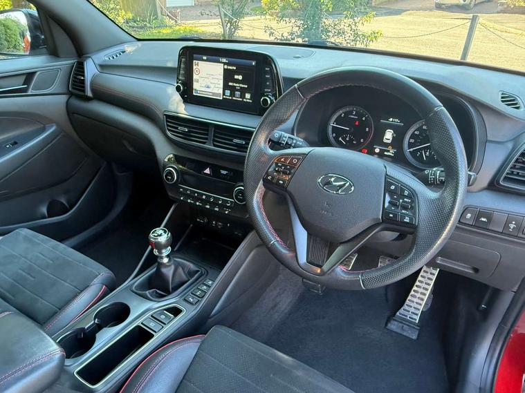 8" touchscreen satellite navigation including traffic messaging channel, map care and live services, Apple car play/Android Auto, Bluetooth system, Cruise control + speed limiter, Digital clock, Driver alert system, Emergency stop signalling system, Flex Steer variable steering settings, Front and rear parking sensors, Lane keep assist, PAS, Rev counter, Reversing camera, Roll over sensor, Speed limit information, Tailgate open warning light, Trip computer, Trip odometer, Water temperature gauge, Windscreen washer fluid sensor and warning indicator, Wireless phone charging pad, 2 front and 2 rear speakers with 2 tweeters, DAB Digital radio, Steering wheel mounted audio/phone controls, USB and aux connection in front, Adjustable intermittent front windscreen wipers with aero wiper blade, Auto dimming rear view mirror with compass, Automatic defog system, Automatic headlights with dusk sensor, Automatic windscreen wipers with rain sensor, Black door mirrors with integrated indicators, Black outside mirror covers, Black roof rails, Body colour bumpers, Body colour exterior door handles, Electric front/rear windows with drivers one touch/anti-trap, Electrically adjustable, heated and power folding door mirrors, Follow me home headlights, Front fog lights, Grey bodyside mouldings, Halogen projector headlights, Integrated front spoiler, Integrated rear spoiler, LED brake lights, LED daytime running lights, LED rear lights, N Line Badging, N Line Exclusive front and rear bumpers, N Line grille, Positioning Lights - LED, Privacy glass - Rear windows and tailgate, Rear skid plate - Grey, Rear wash/wipe with intermittent wipe setting, Static Cornering lights, Tinted glass with windscreen shade band, Trailer stability assist, Twin exhaust pipes, 12V power outlets in front console and luggage compartment, 60/40 split folding rear seat, Adjustable head restraints, Black headliner, Chrome interior door handles, Cupholders in centre and rear console, Door courtesy lights, Driver and passenger front seat pockets, Driver and passenger sunvisors with illuminated LED vanity mirrors, Driver's seat electric lumbar support, Driver's seat height adjustment, Dual zone climate control, Front and rear door pockets, Front armrest with storage box, Front door pocket bottle holders, Heated front seats, Height/reach adjustable steering column, Illuminated/air conditioned glove compartment, ISOFIX child seat anchorage points attached on outer rear seats, Logo on seat backrests, Luggage area underfloor compartment, Luggage compartment lighting, Luggage cover, Luggage hooks, Luggage net, Manual height adjustable front passenger seat, Map and reading lights, N Line branded gear stick, N Line branded leather steering wheel, N Line Leather/suede upholstery, Reclining rear seats, Red stitching on central pad, Red stitching on steering wheel, Retractable load cover, Sunglasses holder, 3x3 point rear seatbelts, Active bonnet, Anti-lock brake system, Autonomous emergency braking, Brake assist function, Childproof rear door locks, Downhill brake control, Driver and passenger airbags, Drivers knee airbag, Electronic parking brake, ESP, Front passenger airbag deactivation switch, Front seatbelt pretensioners, Front side airbags + full size curtain airbags, Height adjustable front seatbelts, Hill start assist control (HAC), Seatbelt warning, Traction control, Tyre pressure monitoring system with individual tyre pressure display - TPMS, Vehicle stability management, Deadlocks, Immobiliser, Locking wheel nuts, Perimeter alarm, Remote control central locking, Smart key with keyless entry and engine start/stop button, Speed sensitive auto door locking, 19" alloy wheels, Tyre repair kit,
