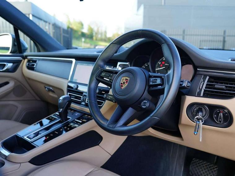 Analogue clock on dashboard, Automatic start/stop system, Automatic tailgate, eCall emergency call system, Instrument cluster with high resolution 4.8-inch TFT display, gear indicator for PDK, service interval display, external temperature indicator, fuel gauge, Off-road button, On board computer, Porsche Communication Management (PCM) including online navigation module, mobile phone preparation, audio interfaces and voice control system, 7-Speed Porsche Doppelkupplung (PDK) with automatic mode and manual controls (gearshift paddles) on steering wheel, Direct fuel injection (DFI), Gasoline particulate filter, VarioCam camshaft control for inlet and exhaust valves, 2 USB sockets in rear centre console, Apple CarPlay with Siri voice recognition, Connect Plus including online navigation, LTE communication module with SIM card reader, wireless internet access, Porsche Car Connect services, DAB Digital radio, Porsche Vehicle Traking System Plus (PVTS Plus), Two USB C charging and connectivity ports in the front centre console storage compartment, Active radiator grille shutters, Automatic headlight activation including welcome home lighting, Bumper system with high strength cross members and two deformation elements + One threaded fixture point for towing eye contained in onboard tool kit, Dynamic cornering lights, speed-sensitive headlight and dynamic range control, adverse weather function, four-point LED daytime running lights, Electric front and rear windows with remote closing function + anti trap + one touch, Electrically folding and heated exterior mirrors, Front light modules with LED position lights and direction indicators, Front windscreen wipers with two speeds, intermittent wipe and rain sensor, Front with integrated cooling air intakes, Fully galvanised body, Heated rear window with automatic switch off, High gloss black side window trims, High level 3rd LED brake light integrated into roof spoiler, Loading edge protection in aluminium, Rear side wing doors, Rear window wiper with intermittent function and washer jet, Roof spoiler in agate grey metallic, Towbar preparation, 3 adjustable rear headrests, 3 rear seats, 40:20:40 split folding rear bench seat, Cloth hook b-pillar, Floor mats with Porsche logo, Fold up centre console armrest with fore/aft adjustment, Front and rear bottle holders in door panels, Front headrests, Front passenger seat, Glove compartment, Isofix fastening system for child seats on outer rear seats, Luggage compartment cover, Particle/pollen filter with active carbon filter, Rear armrest with 2 cupholders, Storage bin in centre console, Storage compartment in side of luggage compartment and storage compartment in spare wheel recess, Storage pocket in front and rear doors, Two integrated cup holders in front with variable diameter, Two socket 12V power outlets in front console and luggage compartment, uncovered storage compartment in centre console, Ambient comfort lighting pack - Macan, Lower exterior trim package in black - Macan, Sport chrono package including mode switch - Macan T, 3-point automatic seatbelts with front and outer rear seats pretensioners and force limiter + manually height adjustable seatbelt + reminder warning, Auto hold function, Black painted brake calipers, Child locks on rear doors, Curtain airbags along entire roof frame and side windows from A pillar to the C pillar, Electronic parking brake, Front passenger airbag deactivation facility for installation of child seats indicator in overhead console, Front side airbags integrated into seat, Full size driver and passenger airbags, Internally vented brake discs with diameter of 350mm at front and 330mm at rear, Multi-Collision braking, Porsche hill control (PHC), PTM(Porsche Traction Management) and All-wheel drive with map-controlled multi-plate clutch, Roll over sensor for curtain airbag and seatbelt pretensioners, Side impact protection in doors, Tyre pressure monitoring system, Vehicle stability system, Porsche stability management (PSM) including ABS, ASR, ABD, MSR and trailer stability management, Vented discs brake with 4 piston aluminium monobloc fixed caliper at front, Vented discs brake with combination floating calipers at rear, Alarm system with ultrasonic interior surveillance, Engine immobiliser with key transponder, Remote control central locking, Accent trims with silver coloured finish,