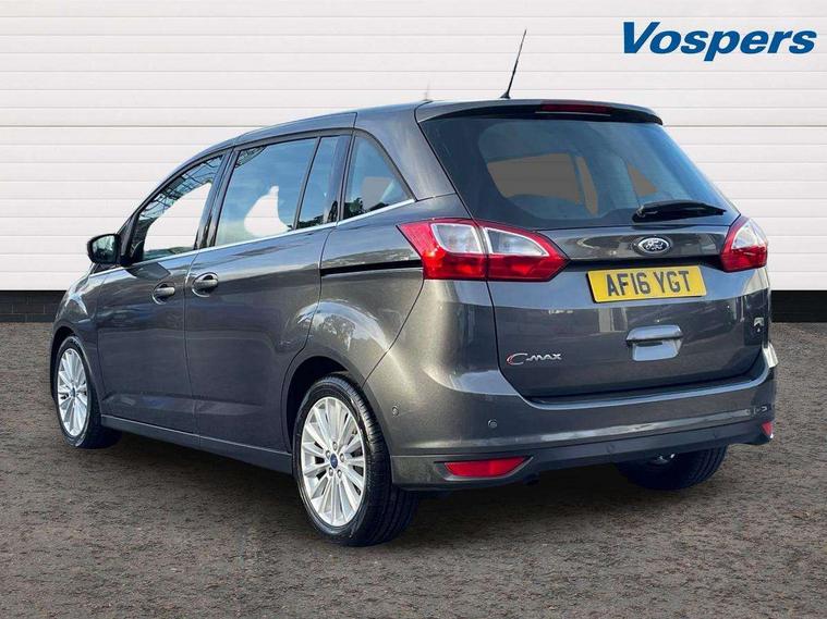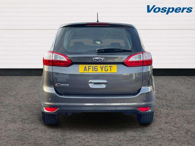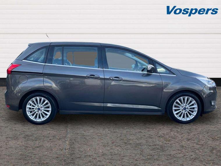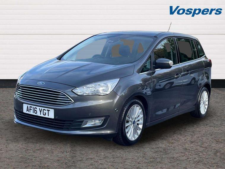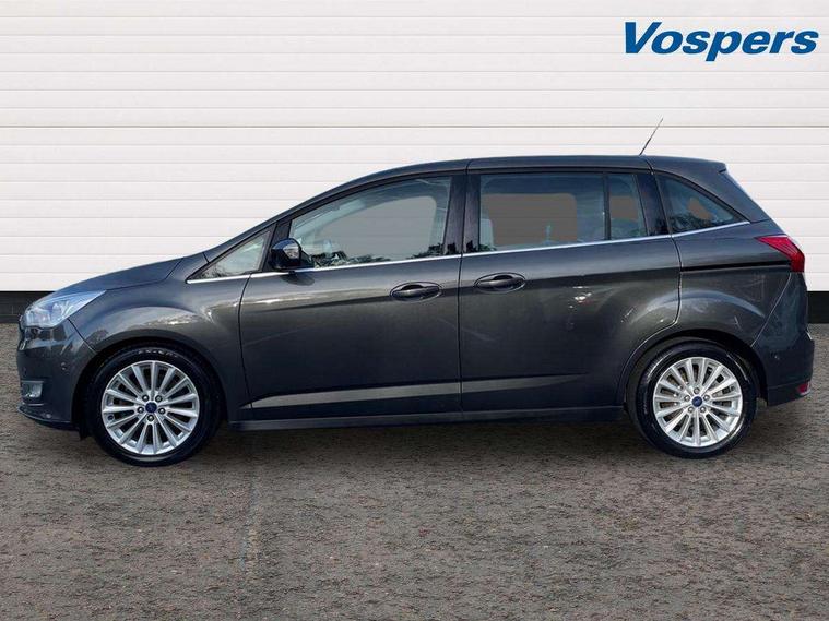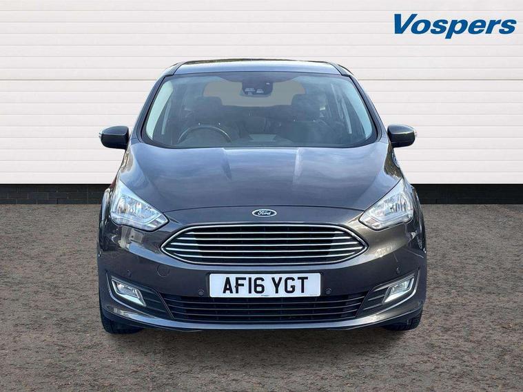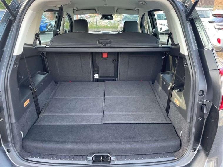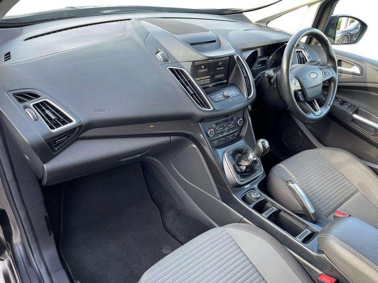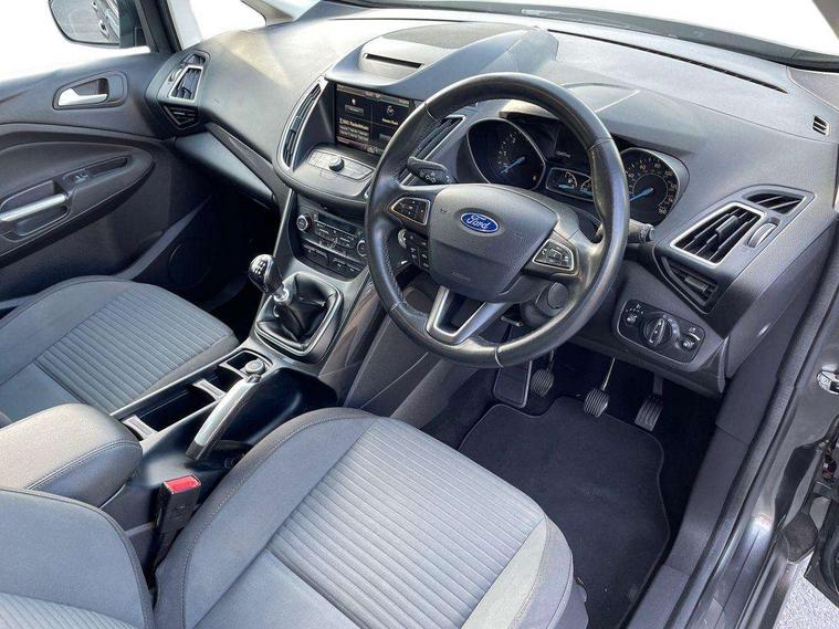 Driver's information system, Easy fuel capless refuelling system, Electric power steering, Engine start button, Multi function display colour screen, Rear parking sensor, Trip computer, Diesel particulate filter, Steering wheel mounted audio controls, SYNC 2 DAB radio/CD, 8" colour touch screen, emergency assistance, Bluetooth connection, advanced voice control, USB connection, 'Global' closing of front/rear windows, Auto dimming rear view mirror, Automatic headlights, Automatic rain sensing wipers, Body colour bumpers with black rubbing strip, Body colour door handles, Body colour door mirrors with integral indicators, Chrome finish on upper door line, Dual sliding side load doors, Electric front windows + drivers one touch, Electric heated door mirrors, Electric rear windows, Front fog lamps, Intermittent rear wash/wipe, LED daytime running lights, Quickclear heated windscreen, 12V accessory sockets - front and rear, 3 spoke steering wheel, Aluminium scuff plates, Ambient interior lighting, Auxiliary power socket, Centre armrest with storage box, Child observation mirror, Cloth upholstery, Courtesy light in luggage compartment, Driver's seat manual height adjust, Driver/passenger lumbar adjustment, Dual zone electronic climate control, Footwell illumination, Front + rear carpet mats, Front/rear courtesy lights, Front/rear reading lights, Fully adjustable front headrests, Isofix child seat attachment, Leather gearknob, Passenger seat height adjuster, Premium centre console, Rake/reach adjustable steering wheel, Satin chrome interior door handles, Sports style front seats, Three height adjustable rear head restraints, Tonneau cover, Versatile split folding rear seat - 40/20/40, 7 three point seatbelts, ABS + traction control, Driver and passenger airbags, Driver and passenger side airbags, Electronic brake force distribution, Emergency brake assist, ESP, Fasten seatbelt reminder, Front and rear curtain airbags, Height adjustable front seatbelts, Hill start assist, Intelligent Protection System (IPS), Power child locks, Tyre pressure monitoring system, Anti-theft immobiliser, Locking wheel nuts, MyKey system, Thatcham 1 volume sensing alarm, Satin black trim, Mini steel spare wheel,