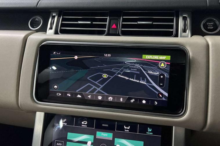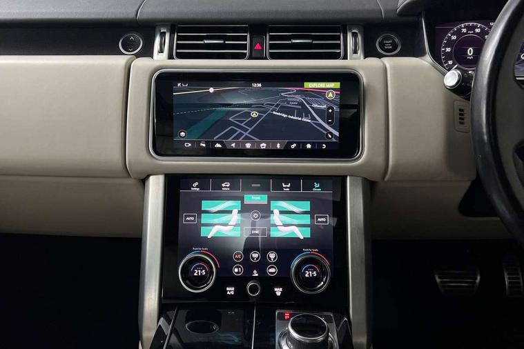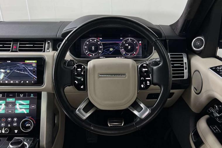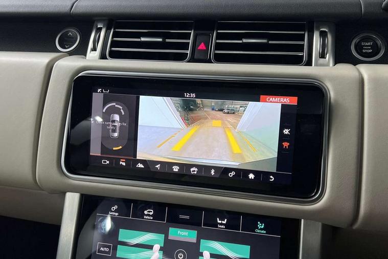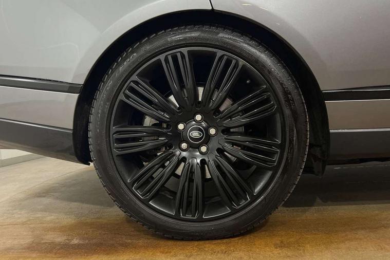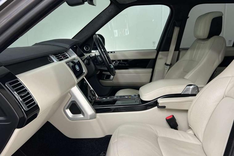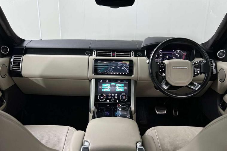 Android Auto, Apple car play, Bluetooth mobile phone connection, Dynamic route guidance, Electric power assisted steering (EPAS), Interactive Driver display instrument cluster, Lane departure warning system, Navigation pro system with 10" touch screen, app interface and media storage, Powered gesture tailgate/boot lid, Push button starter, Rear camera wash, Rotary shifter, Service interval indicator, Touch pro duo system, Trip computer, Voice control system, 8 speed automatic transmission, Adaptive dynamics, All Wheel Drive (AWD), Automatic access height, Diesel particulate filter, Electronic air suspension, Twin speed transfer box, Digital Audio Broadcast radio-DAB, Digital TV, InControl app, USB socket, Acoustic windscreen, Auto dimming interior rear view mirror, Auto self levelling headlights, Automatic headlights, Body coloured bumpers, Centre high mounted stop light, Door/quarter lights in toughened plate glass, Electric windows with one touch open/close and anti trap, Electrical towing preparation, Follow me home headlights, Front and rear recovery eyes, Front fog lights, Headlamp power wash, Heated rear window, Heated windscreen includes heated washer jets, Illuminated metal treadplates with brand name script, Integrated twin tailpipes, LED rear lamps, LED tail lights, No badges, Power fold, auto-dimming, heated door mirrors with memory and approach lights, Power front/rear windows with global close, Privacy glass, Rain sensing windscreen wipers, Rear fog lights, Rear wash/wipe, Side repeater indicators in mirror, Sliding Panoramic roof includes gesture sunblind and auto sunblind, Trailer stability assist, 12V power point in luggage area, 12V power sockets, 3 rear headrests, Black gearshift paddles, Bright metal pedals, Carpet mats, Centre console with storage and armrest, Configurable Ambient interior lighting, Customer configurable single point entry, Driver and passenger front seat armrests, Easy boot loading, Electrically adjustable steering column, Folding rear seats, Front and rear cupholders, Front and rear grab handles, Front headrests, Front seat back map pockets, Heated steering wheel, Loadspace cover, Loadspace light, Lockable glovebox, Luggage compartment lighting, Luggage tie down in loadspace, Perforated Windsor leather upholstery, Rear centre armrest, Rear ISOFIX, Soft close doors, Suede cloth headlining, Through load facility, Twin blade sunvisors with Illuminated vanity mirrors, Black exterior pack - Range Rover, Smartphone pack - Range Rover, 3 rear 3 point seatbelts, Anti-lock braking system (ABS), Auto lock system when vehicle in motion, Cornering brake control (CBC), Curtain airbags, Customer configurable autolock, Driver/front passenger head+thorax airbag, Drivers knee airbag, DSC - Dynamic Stability Control, Electronic brake force distribution, Electronic parking brake, Electronic traction control, Emergency braking, ESP, Front airbags with passenger seat occupant detector, Front seatbelt pretensioners with force limiters, Front side airbags, Grey anodised brake calipers, Height adjustable front seatbelts, Hill descent control, Hill launch assist, Low traction launch, Power operated child locks, Roll stability control, Tyre pressure monitoring system (TPMS), Immobiliser, Intrusion sensor and alarm, Keyless entry, Locking wheel nuts, Remote central locking,