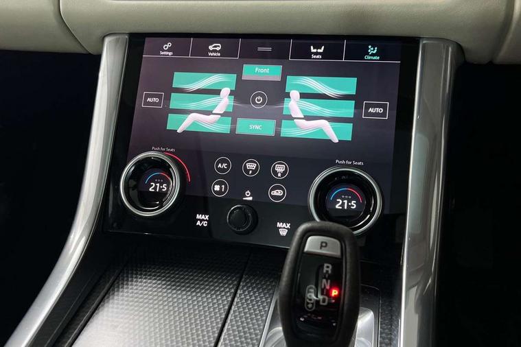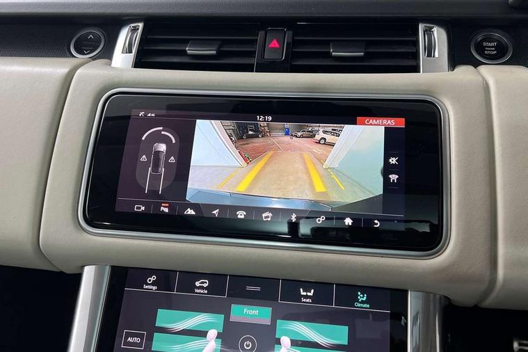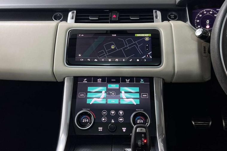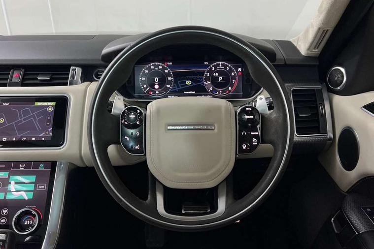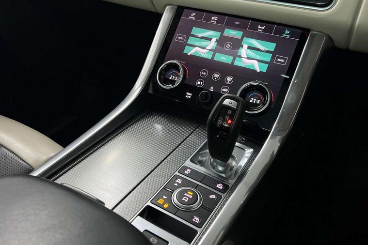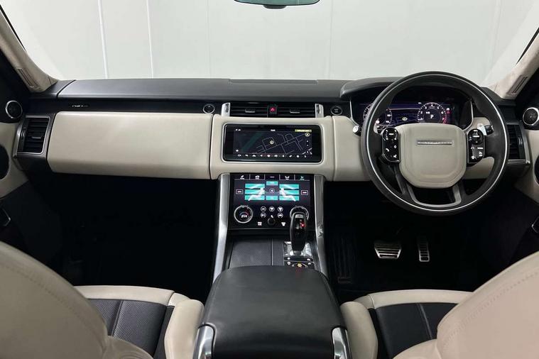 360 Parking aid, All Terrain Info Centre, Android Auto, Apple car play, Bluetooth connectivity, Clear exit monitor, Driver condition monitor, Electric power assisted steering (EPAS), Incontrol apps in vehicle touchscreen, Interactive Driver display instrument cluster, Mist sensor, Navigation pro system with 10" touch screen, app interface and media storage, Pro services and wifi hotspot, Push button start, Rear traffic monitor, Remote premium - Upgraded Incontrol remote app including remote climate control (engine dependent), remote lock + Unlock and remote beep + flash, TFT Virtual Instrument Panel, Touch pro duo system, Traffic sign recognition with adaptive speed limiter, Trip computer, Adaptive dynamics, All terrain progress control, Configurable dynamics, Electronic air suspension, Gradient release control (GRC), Terrain Response 2 with dynamic program, Twin speed transfer box, Bluetooth audio streaming, DAB Radio (Digital Audio Broadcasting), Incontrol protect - SOS emergency call with automatic collision detection, optimised assistance call and Incontrol remote app essential, USB/aux input socket, Acoustic front and toughened rear side glass, Acoustic laminated front windows, Adaptive brake lights, Auto dimming interior rear view mirror, Automatic headlights, Body coloured side sills and bumpers corners, Centre high mounted stop light, Electric windows with one touch open/close and anti trap, Electrical towing preparation, Engine cover, Follow me home lighting, Front and rear recovery eyes, Front fog lights, Headlight power wash, Heated rear window, Heated windscreen includes heated washer jets, HST badge, Illuminated metal treadplates with brand name script, LED rear lamps, Narvik black mirror caps, Power fold, auto-dimming, heated door mirrors with memory and approach lights, Privacy glass (Tinted glass rear of B pillar), Rain sensing windscreen wipers, Rear fog lights, Rear side wing doors, Rear wash/wipe, Remote window closing, Side repeater indicators in mirror, Sport Badge in black, Standard bonnet, Trailer stability assist, Twin bright tailpipes, 2 way active front head restraints, 2 way rear head restraints, 3 seat bench in 2nd row, 60/40 load through rear seats, Aluminium gear shift paddles, Auto air recirculation, Bright metal foot pedals, Centre console with armrest, Climate control memory, Customer configurable single point entry, Driver's footrest, Extended leather upgrade includes door top rolls and leather instrument panel mid section, Front and rear cupholders, Front door storage space, Front map lights, Front seat back map pockets, Front stowage pocket, Front/rear passenger grab handles, Heated steering wheel, Isofix child seat preparation, Loadspace light, Loadspace mounting provisions, Lockable glovebox, Multifunction steering wheel, Pollen filter, Power socket, Reach/rake electric adjustable steering column + entry/exit tilt away, Rear centre armrest, Rear ISOFIX, Roller blind loadspace cover, Single front passenger seat, Sports pedals, Suede cloth headlining, Suede cloth steering wheel, Three 12V accessory power outlets, Carbon fibre exterior pack - Range Rover Sport, Smartphone pack - Range Rover Sport, 3 point seatbelts on all seats, Anti-lock braking system (ABS), Brake pre-fill technology, Cornering brake control (CBC), Curtain airbags, Customer configurable autolock, DSC - Dynamic Stability Control, Dual stage driver/passenger airbags, EBD - Electronic brakeforce distribution, Electric parking brake, Electronic traction control, Emergency braking includes city, urban AEB and pedestrian, Front seatbelt pretensioners, Gradient acceleration control, Height adjustable front seatbelts, Hill descent control, Hill launch assist, Low traction launch, Passenger seat occupant detector with front airbags, Power operated child locks, Roll stability control, Seatbelt warning, TPMS (Tyre pressure monitoring system), Immobiliser, Intrusion sensor, Keyless entry, Locking wheel nuts, Perimetric and volumetric anti theft alarm, Remote locking,