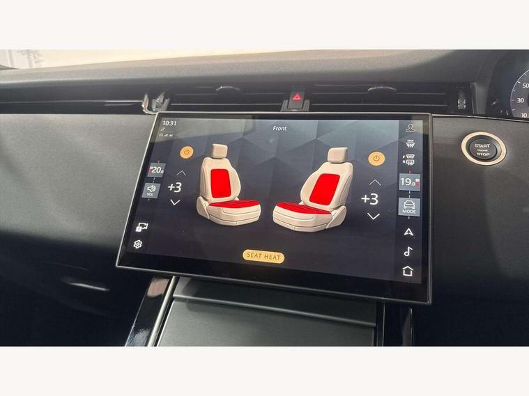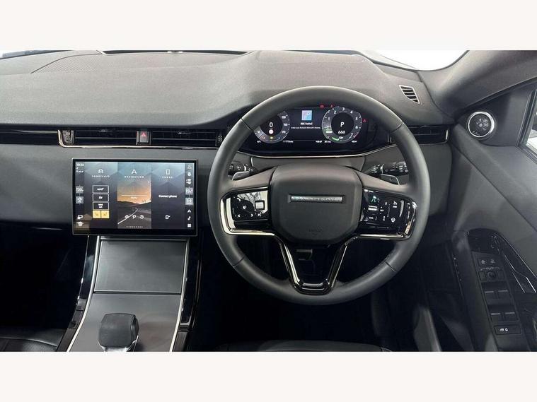 11.4" touch screen, 3D 360 degree surround camera with wade sensing, Adaptive cruise control, Android Auto, Apple car play, Blind spot assist, Bluetooth connectivity, Brake pad wear indicator warning light, Driver condition monitor, eCall emergency system, Eco mode, Electronic power assisted steering (EPAS), Front and rear parking aid, InControl remote, Interactive driver display, Land Rover InControl apps, Lane keep assist, Pivi pro connected includes diamond pivi variant, smart settings, connected navigation pro, nuance speech licence, Powered tailgate/boot lid, Rear collision monitor, Rear traffic monitor, Tailgate, Traffic sign recognition with adaptive speed limiter, Voice control system, Wireless device charging, All terrain progress control, Electric rear axle drive, Home charging cable, Large fuel tank, Passive suspension, Public charging cable, Terrain Response 2, Digital Audio Broadcast radio-DAB, Steering wheel mounted controls, Acoustic laminated windscreen, Auto headlights, Auto high beam assist, Automatic headlight levelling, Electric windows with one touch open/close and anti trap, Flush deployable exterior door handles, Front and rear recovery eyes, Heated rear window with timer, Heated washer jets, Heated windscreen, LED headlights with signature DRL and LED tail Lights, Power fold, auto-dimming, heated door mirrors with approach lights and auto dimming driver side, Rain sensing windscreen wipers, Rear animated directional indicators, Rear fog lights, Rear side wing doors, Rear wiper, Tailgate spoiler, Third brake light, Winter wiper park position, 12 way driver memory and 10 way passenger electric front seats with 2 way manual headrest + 4 way lumbar support, 40:20:40 split folding rear seats with centre headrest and armrest, Bright metal pedals, Carpet mats, Chrome tread plates with range rover branding Includes stainless steel loadspace scuff plate with etched graphic, Customer configurable single point entry, Front and rear cupholders, Heated front seats, Heated steering wheel, Isofix system on outer rear seats, Manually adjustable steering column, Overhead lighting console, Overhead stowage for sunglasses, Passive front head restraints, Rear air vents, Rear head restraints, Satin chrome gearshift paddles, SE Grained leather upholstery, Single passenger seat, Standard steering wheel with Moonlight Bezel, Sunvisors with illuminated vanity mirrors, Twin sliding front centre armrest, Power socket pack 2 - Evoque, 3 rear 3 point seatbelts, Anti-lock braking system (ABS), Brake hold function, Customer configurable autolock, DSC - Dynamic Stability Control, Electronic brake force distribution, Electronic parking brake, Electronic traction control, Emergency braking, Front and rear seatbelt reminder, Hill descent control, Hill launch assist, Low traction launch, Occupant protection assist, Passenger seat occupant detector, Power operated child locks, Roll stability control, Six airbags - Driver and passenger airbags/driver knee airbag/front side airbag and curtain airbags, Torque vectoring brake, Tyre pressure monitoring system, Alarm, Immobiliser, Intrusion sensor, Keyless entry, Locking wheel nuts, All season tyres,