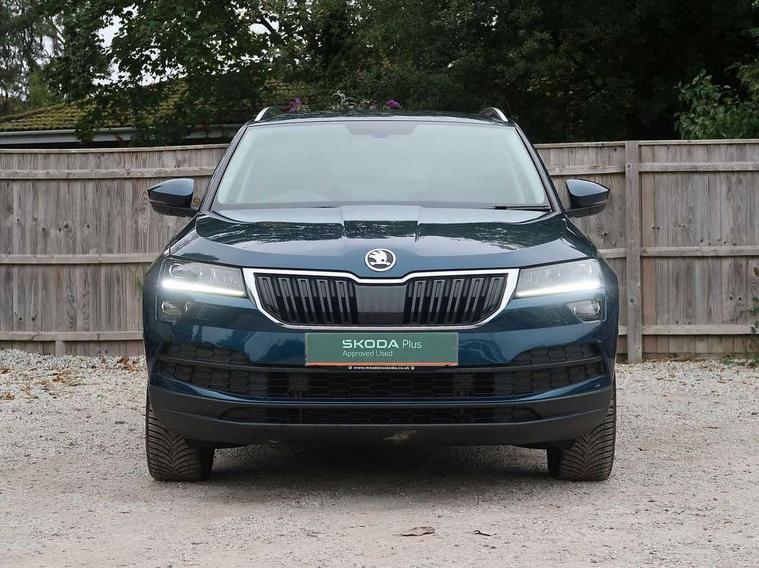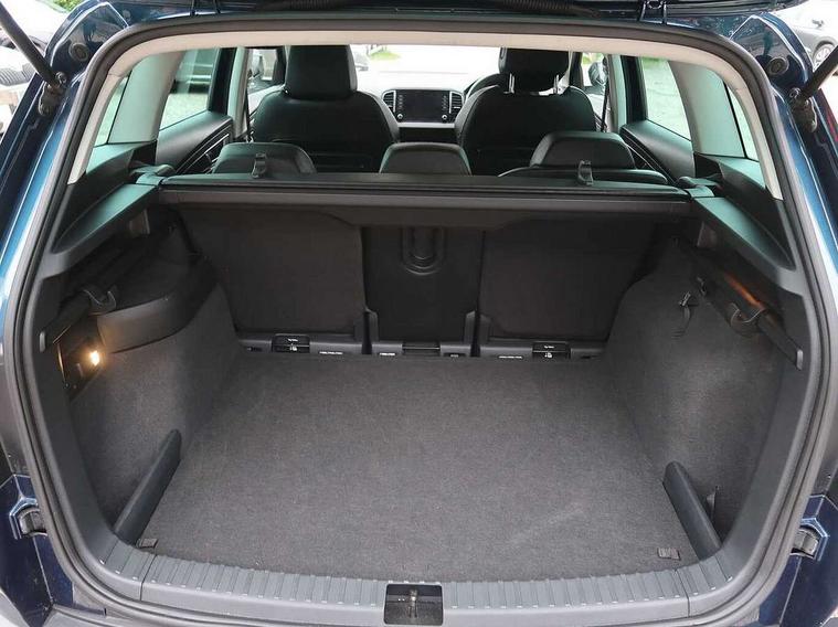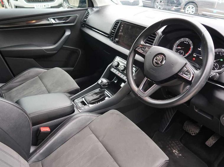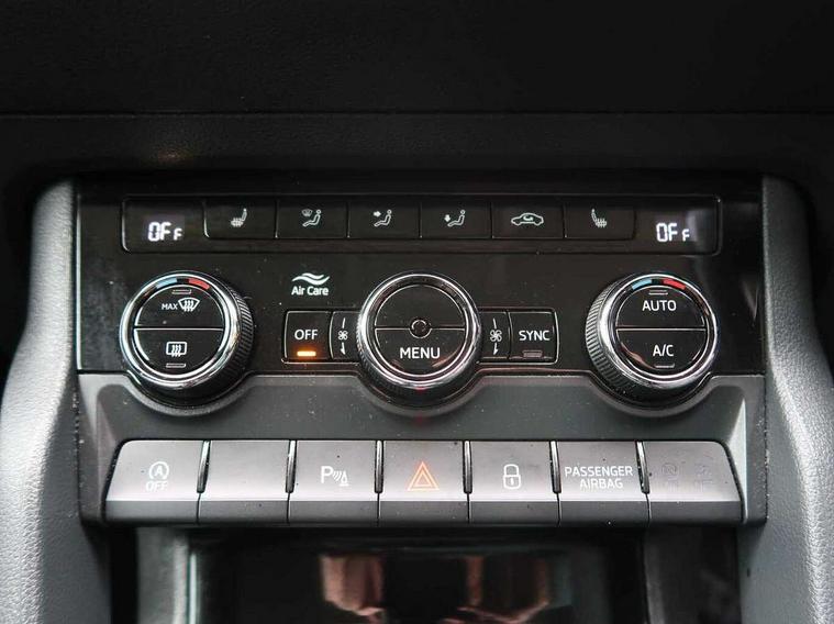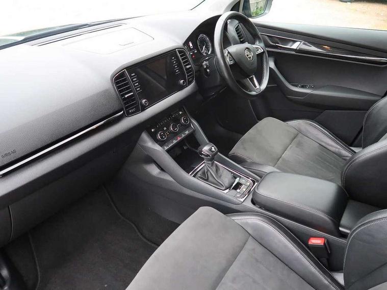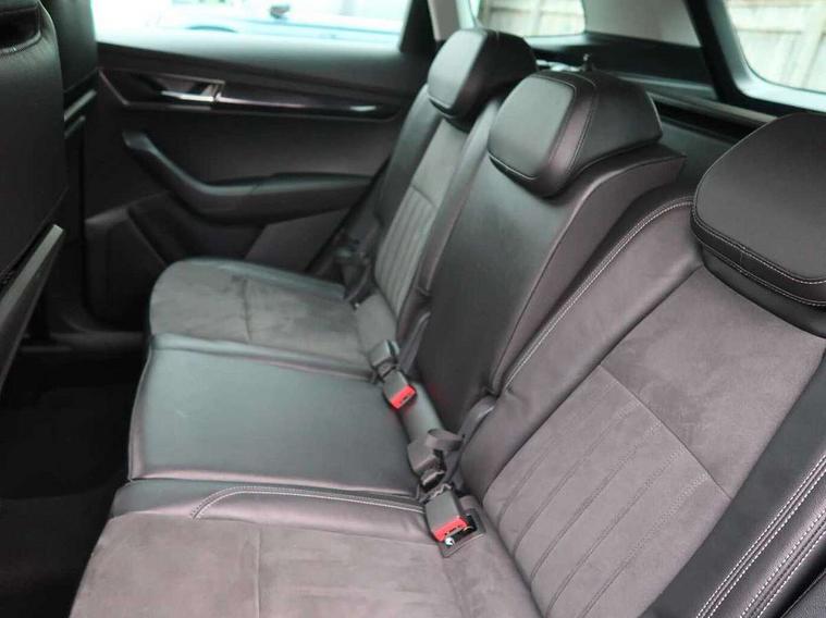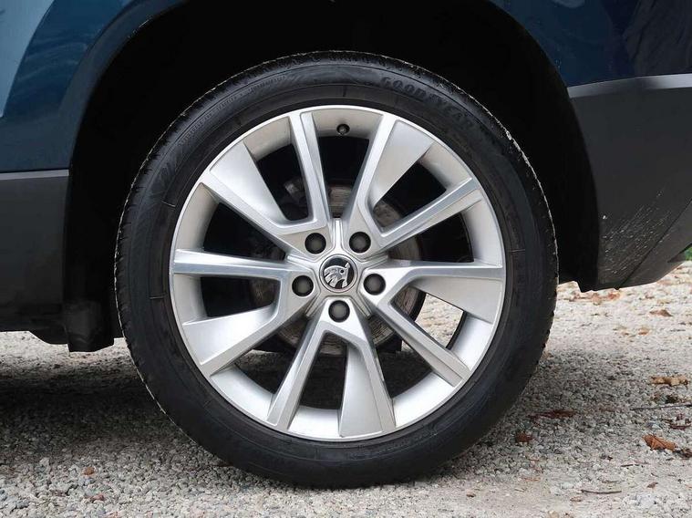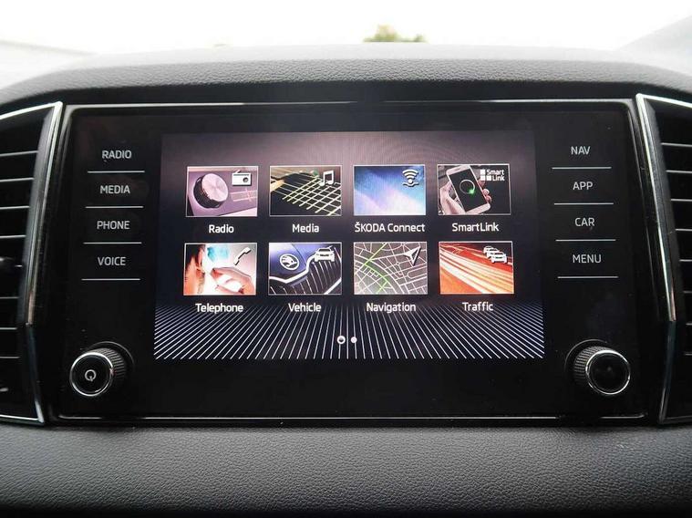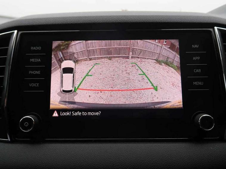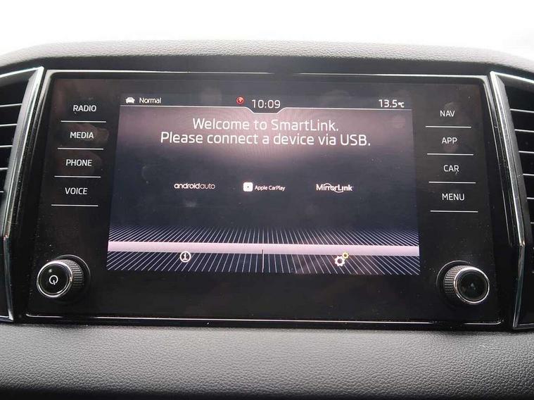 Drive mode selector, Driver alert system, Driver fatigue sensor, Driver profile selection, Multifunction colour trip computer, Outside temperature gauge, Rear view camera, Service interval indicator, Start/stop system with regenerative braking, DAB radio with Bluetooth, SD card slot, USB connection, Acoustic glass, Aero front windscreen wipers with intermittent function, Automatic headlight control system, Black electric window control buttons, Body colour door mirrors and handles, Body coloured bumpers, Electric front and rear windows with child proof lock, Full LED headlights + adaptive front light system + LED daytime running lights and front cornering fog lights, Headlight washers, Heated rear windscreen, LED rear lights with high functionality, Light assistant (coming/leaving home/tunnel light), Privacy glass, Safety reflectors on front doors, Third brake light, 1.5 litre bottle holders in driver and front passenger door panels, 12V socket in boot, 12v socket in front centre armrest with storage compartment and rear air vents, 2 Folding hooks and nets in boot, 2 Front readings lights for driver and passenger, 3 rear height adjustable headrests, 4 foldable roof handles with rear coat hooks, 4 lashing points on luggage floor, Backrest release, Cargo elements in boot, Chrome inner door handles, Dual zone climate control, Folding tables on the front seat backrests, Front head restraints, Front seat and rear pockets, Height adjustable front three point seats belts with tensioners, Height adjustable passenger seat, Height/reach adjust steering wheel, Ice scraper, Illuminated and cooled glovebox, Illuminated luggage compartment, Isofix child seat preparation outer rear, Net programme in boot, Pen holder, Pollen filter, Rear boot cover, Rear reading lights, Rear seats fixed folding and divided 60:40, Removable LED torch in the boot, Retractable parcel shelf attachable to tailgate, Safety vest holder, Storage box in upper central dashboard closed, Storage compartment below the passenger seat, Sunvisors with illuminated vanity mirrors, Textile floor mats, Umbrella under passenger seat, VarioFlex seats with retractable parcel shelf, Chrome roof rails + chrome pack - Kodiaq, Airbags - Front side, head, knee and curtain, Automatic door unlocking in case of crash, Automatic fuel cut off in case of crash, Driver airbag, Electronic parking brake with auto hold function, Emergency rear braking signal, ESC including ABS, MSR, ASR, EDS, HBA, DSR, RBS, MKB and traction control, Front assist radar scanning of the space in front of the car with automatic braking, Hill hold control, Passenger airbag with switch-off function, Pedestrian monitor, Seatbelt reminder signalisation and pretensioner for all seats, Three point seatbelts rear, Two tone horn, Tyre pressure display, Tyre pressure monitor, Alarm with interior monitoring, back up horn and tilt sensor with safe function, Electronic engine immobiliser, Keyless entry and keyless start with safe system, Remote central locking with 2 remote folding keys, Chrome framed air vents, Storage on wheel cover,